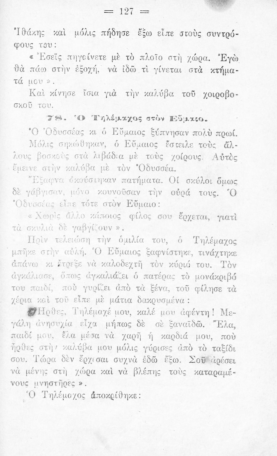Σχολικό εγχειρίδιο Γλώσσας για τη Γ' Δημοτικού. Προοριζόταν για αναγνωστικό των μαθητών της Γ' Δημοτικού. Στο τέλος του βιβλίου υπάρχουν ποιήματα και δημοτικά τραγούδια σχετικά με τη θεματολογία του έπους.