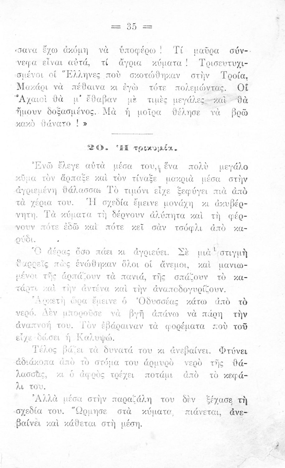 Αναγνωστικό Γ΄ Δημοτικού που εξιστορεί τις περιπέτειες του Οδυσσέα από τον Τρωικό Πόλεμο ως την επιστροφή του στην Ιθάκη.