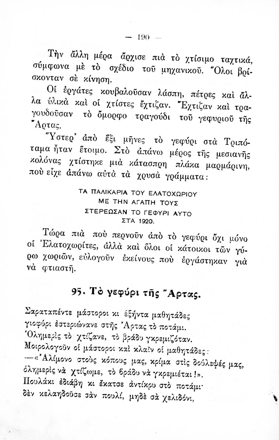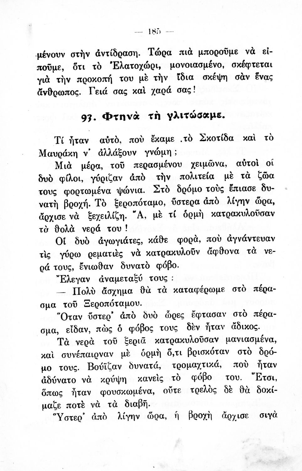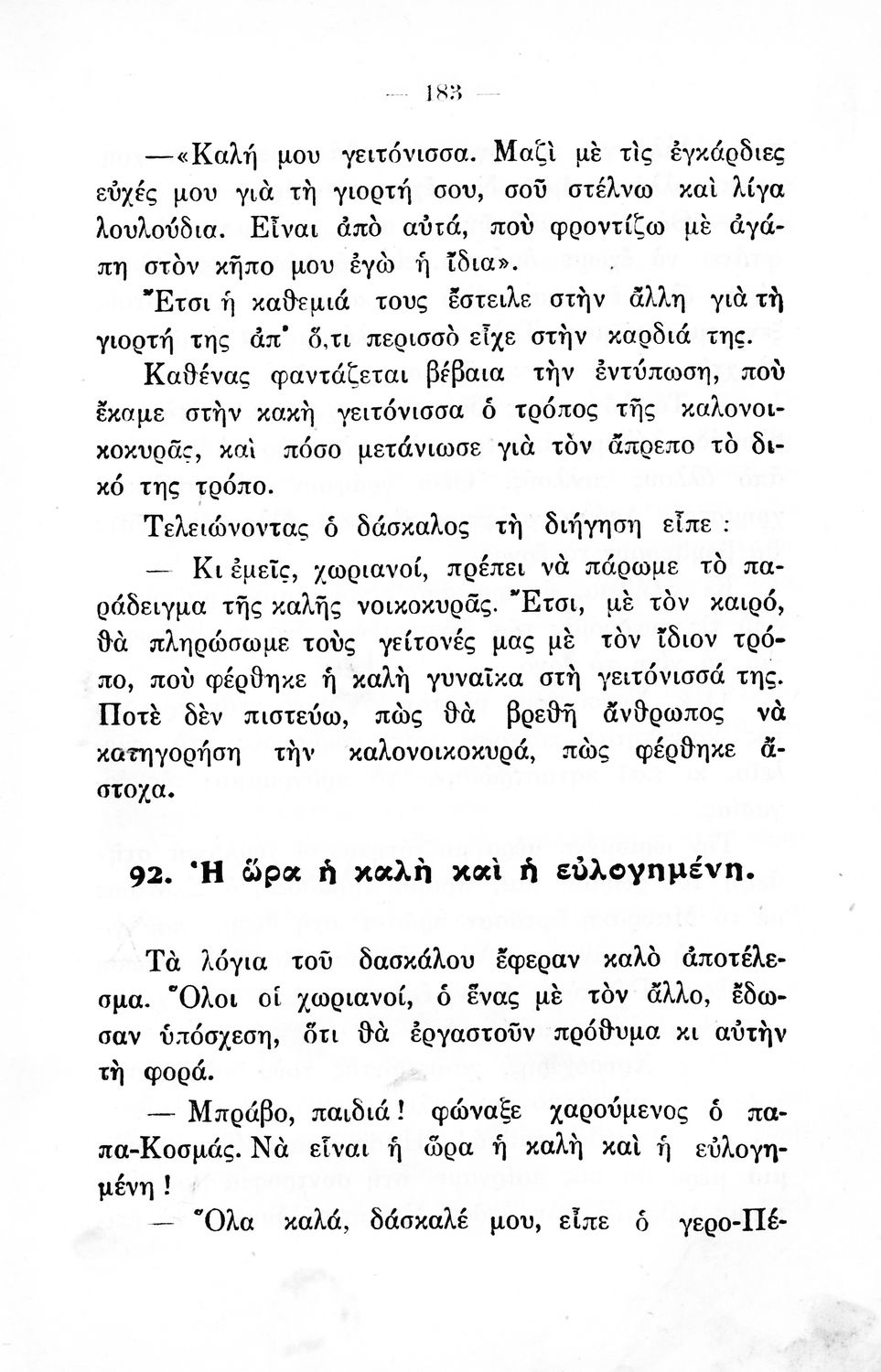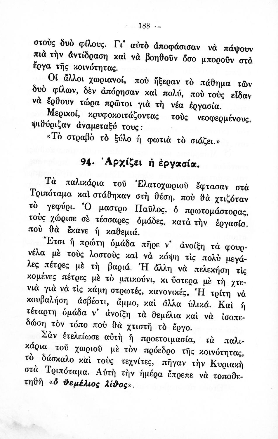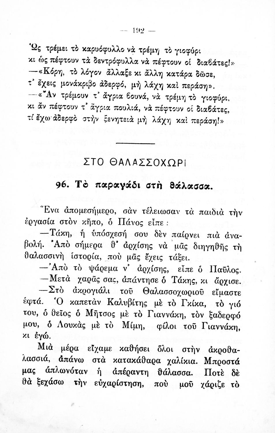 Αναγνωστικό Δ΄ Δημοτικού που περιέχει πεζά και ποιήματα με περιεχόμενο διδακτικό και ηθικοπλαστικό εμπνευσμένα από την ελληνική ιστορία και μυθολογία, και την αγροτική και κοινωνική ζωή.