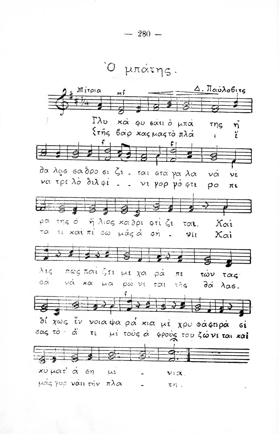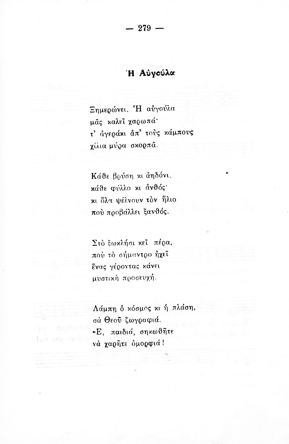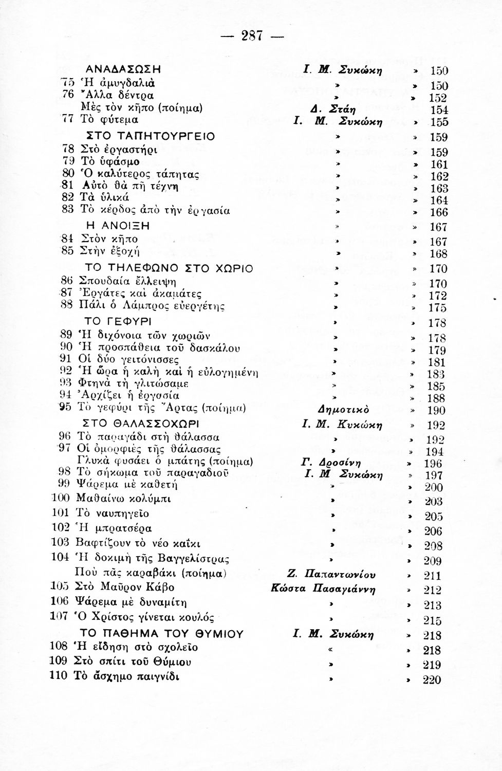 Αναγνωστικό για την Δ΄ τάξη του Δημοτικού. Περιλαμβάνει ένα κείμενο στο οποίο παρεμβάλλονται ποιήματα δημοτικά και Ελλήνων ποιητών.