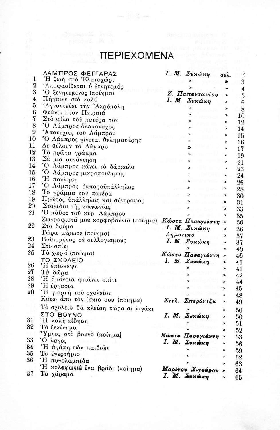 Αναγνωστικό Δ΄ Δημοτικού που περιέχει πεζά και ποιήματα με περιεχόμενο διδακτικό και ηθικοπλαστικό εμπνευσμένα από την ελληνική ιστορία και μυθολογία, και την αγροτική και κοινωνική ζωή.