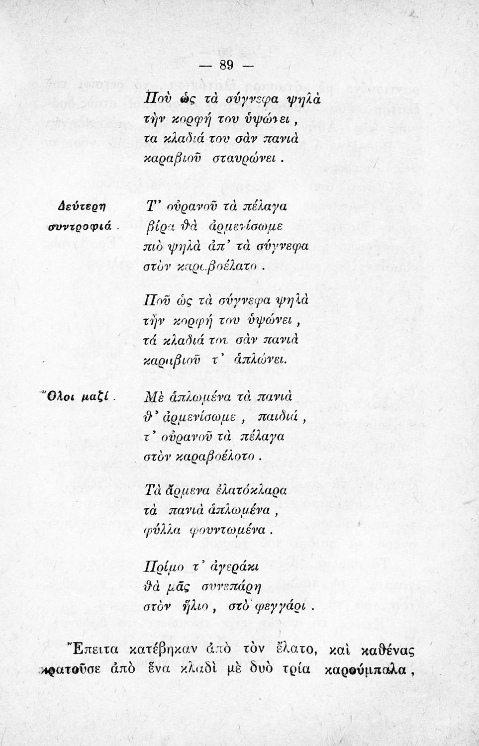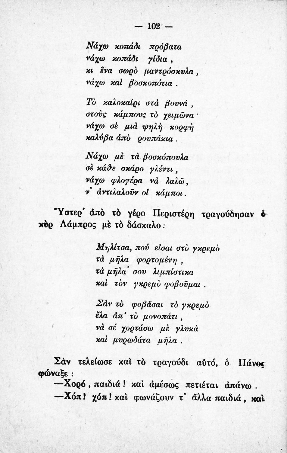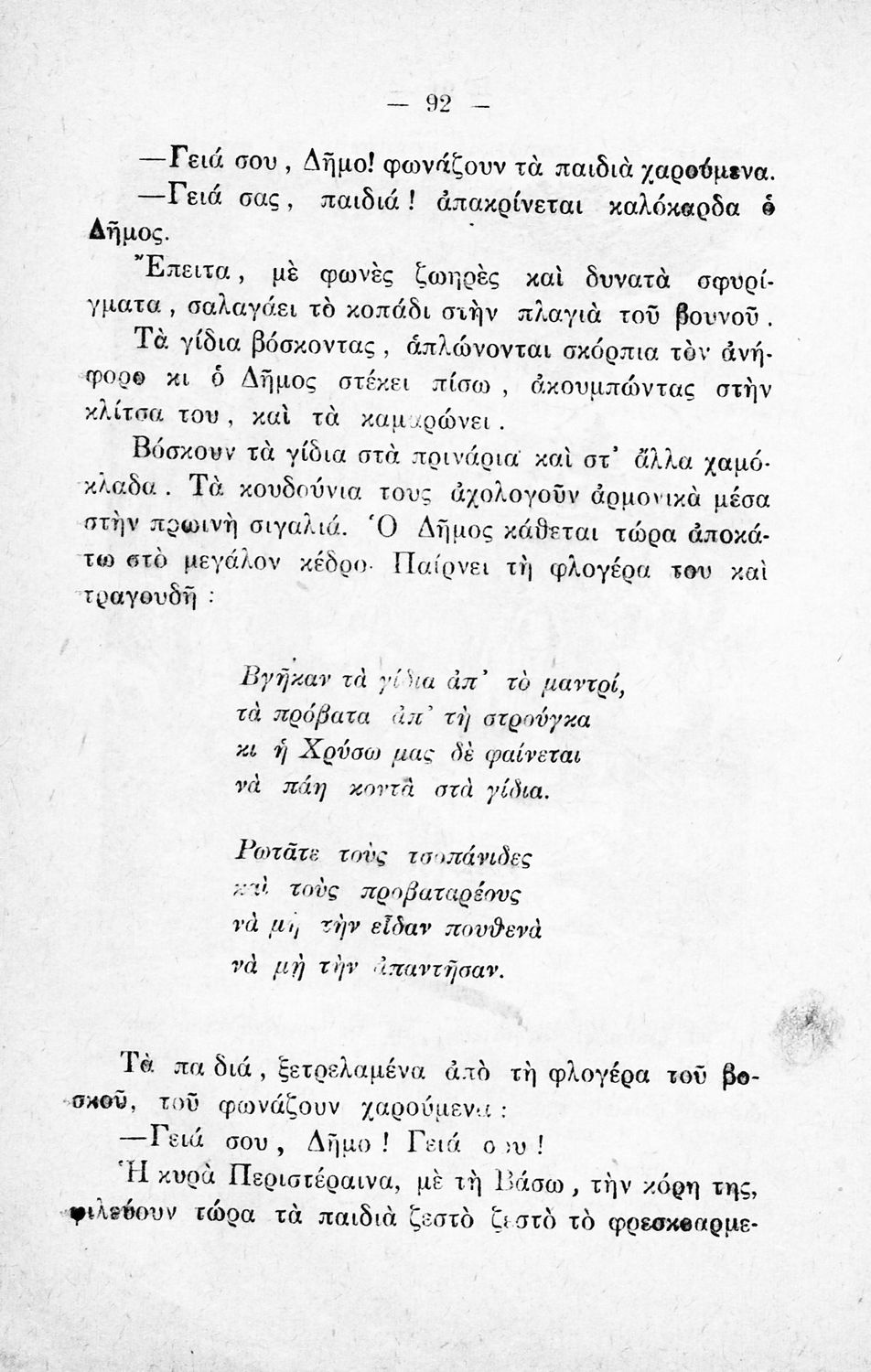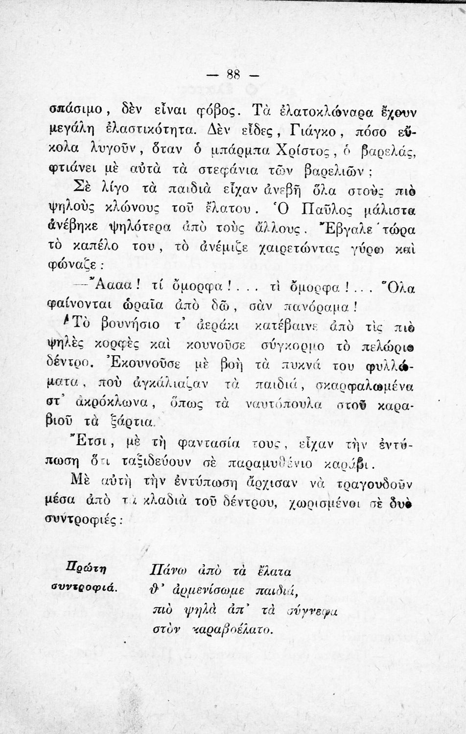 Αναγνωστικό για την Δ΄ τάξη του Δημοτικού. Περιλαμβάνει ένα κείμενο στο οποίο παρεμβάλλονται ποιήματα δημοτικά και Ελλήνων ποιητών.