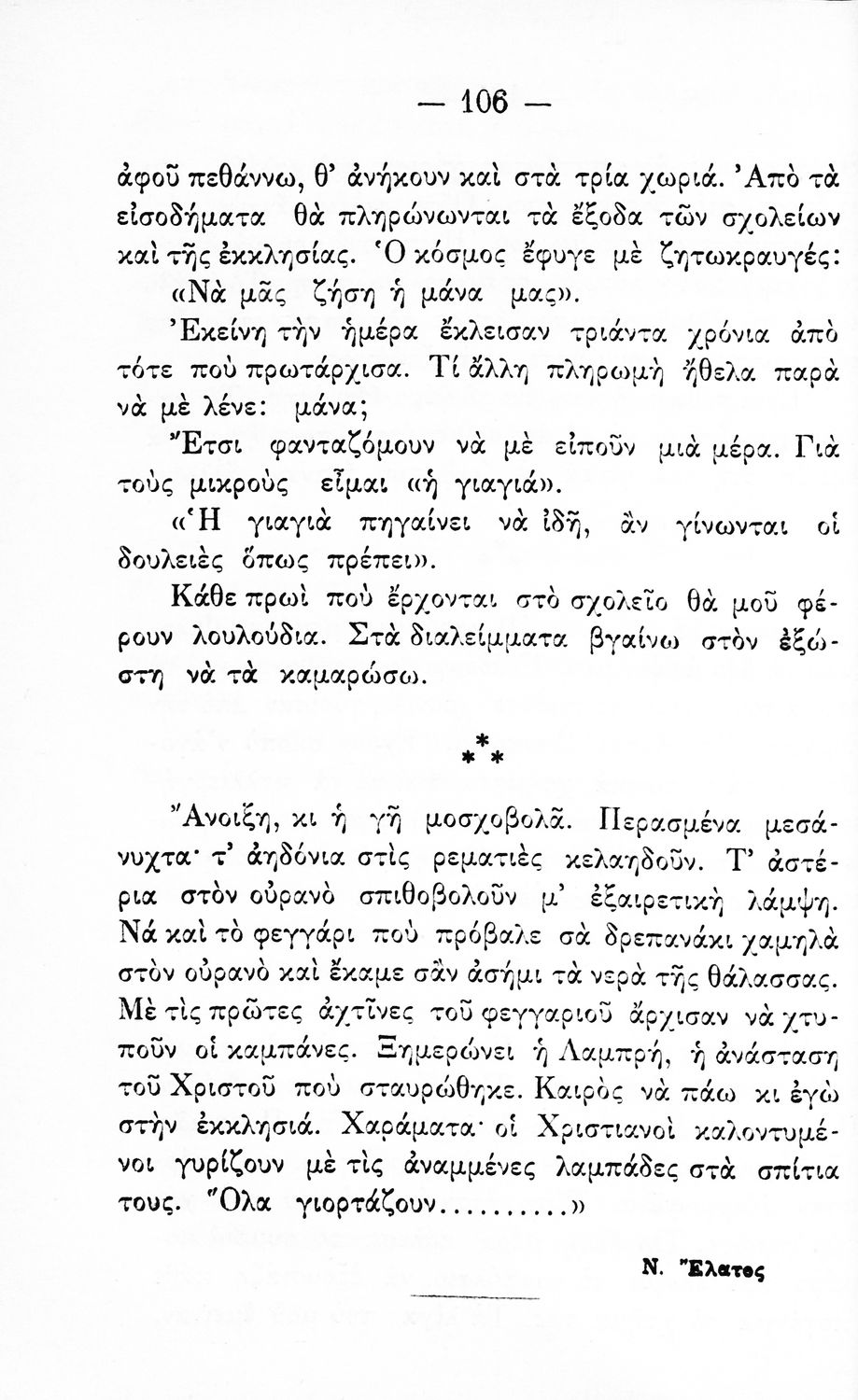 Αναγνωστικό ΣΤ΄ Δημοτικού που αντλεί τα θέματά του από τη θρησκευτική, εθνική, οικογενειακή, κοινωνική και επαγγελματική ζωή και την σύγχρονη ελληνική ιστορία.
