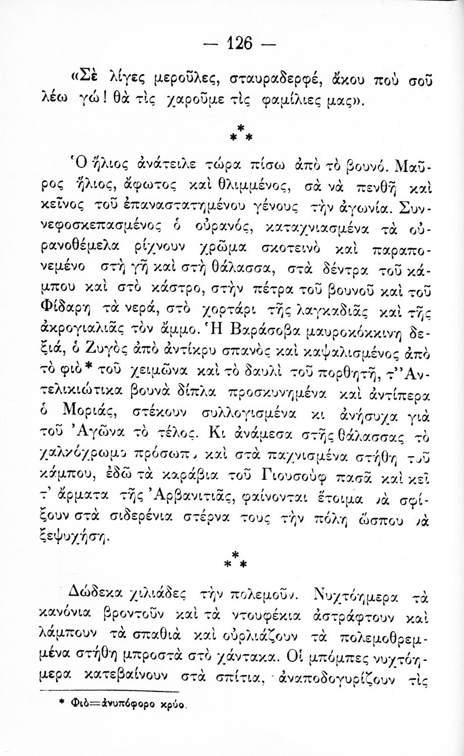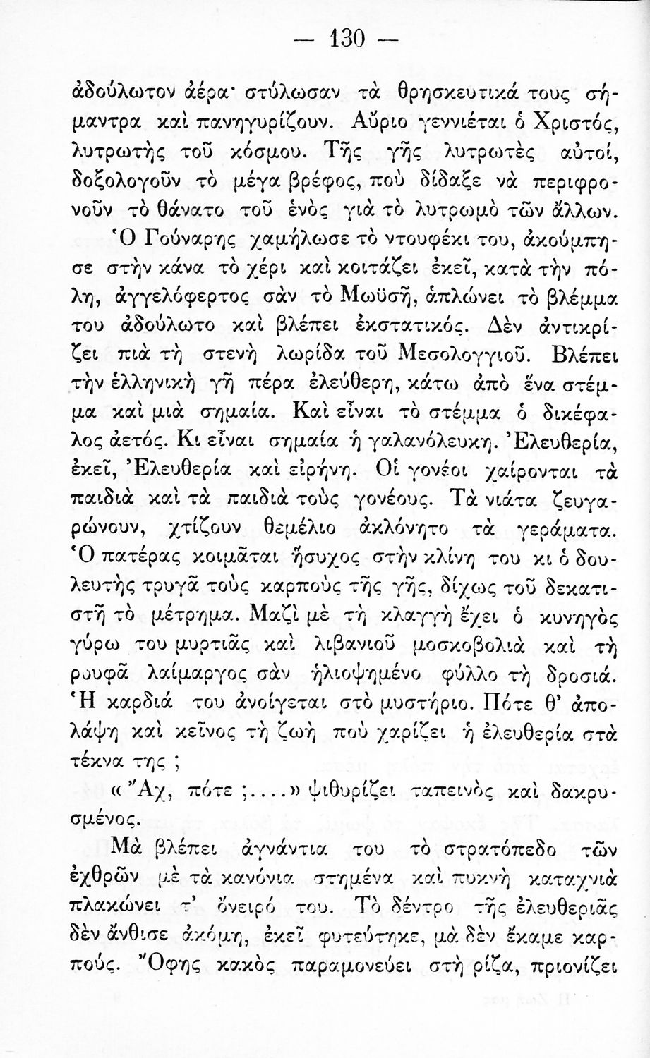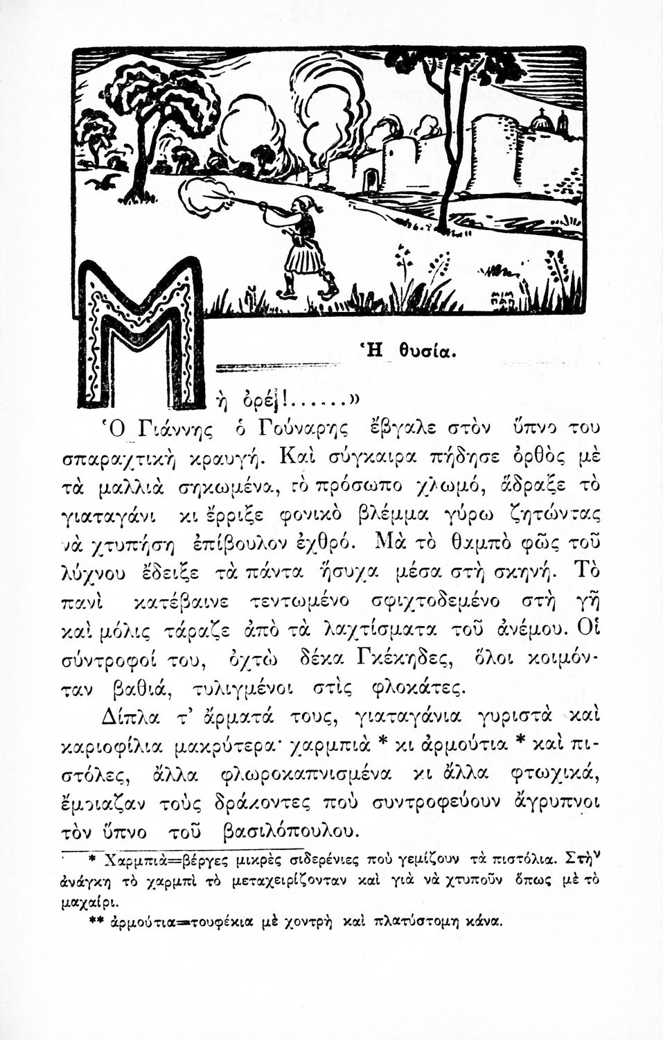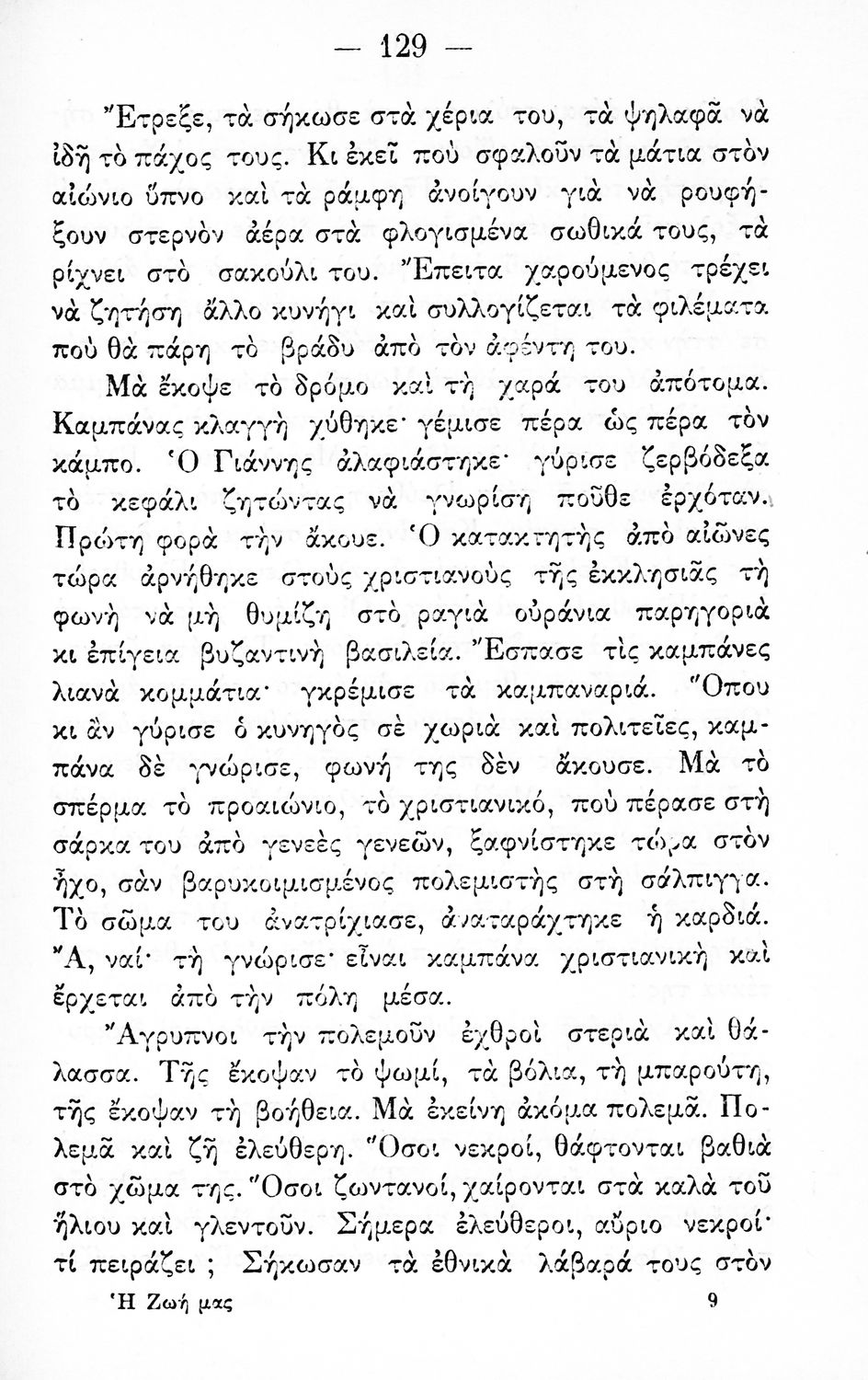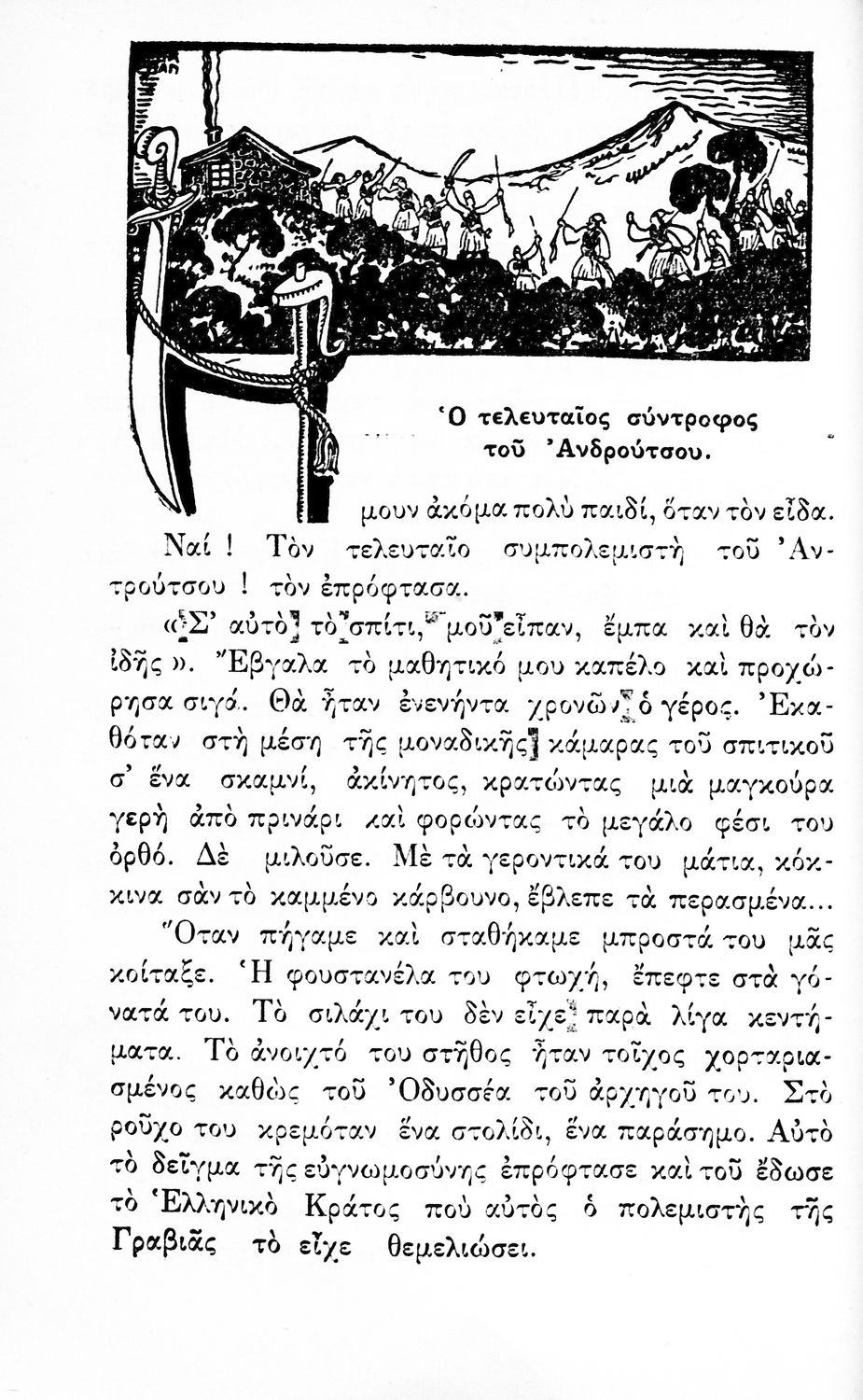 Αναγνωστικό ΣΤ΄ Δημοτικού που περιλαμβάνει πεζά και ποιήματα πατριωτικού περιεχομένου εμπνευσμένα, κατά βάση, από την σύγχρονη ελληνική ιστορία και δη την Ελληνική Επανάσταση.
