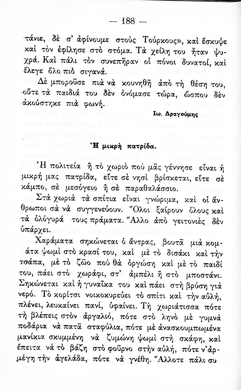 Αναγνωστικό ΣΤ΄ Δημοτικού που περιλαμβάνει πεζά και ποιήματα πατριωτικού περιεχομένου εμπνευσμένα, κατά βάση, από την σύγχρονη ελληνική ιστορία και δη την Ελληνική Επανάσταση.