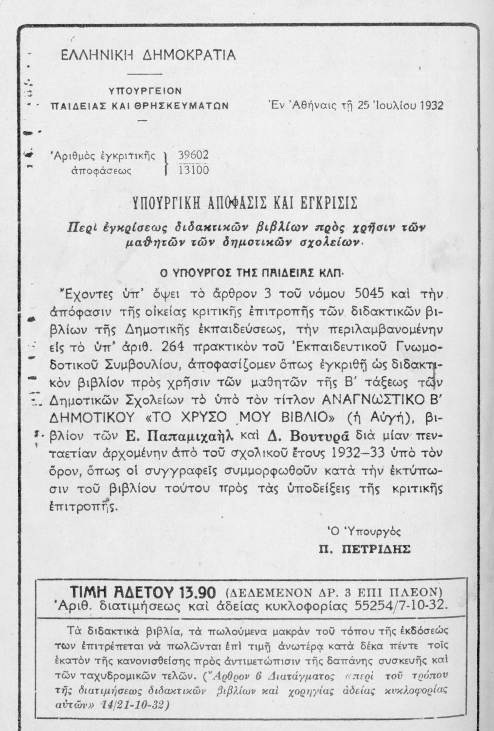 Υπουργική απόφαση / Σύμβαση: 39602/25-7-1932
