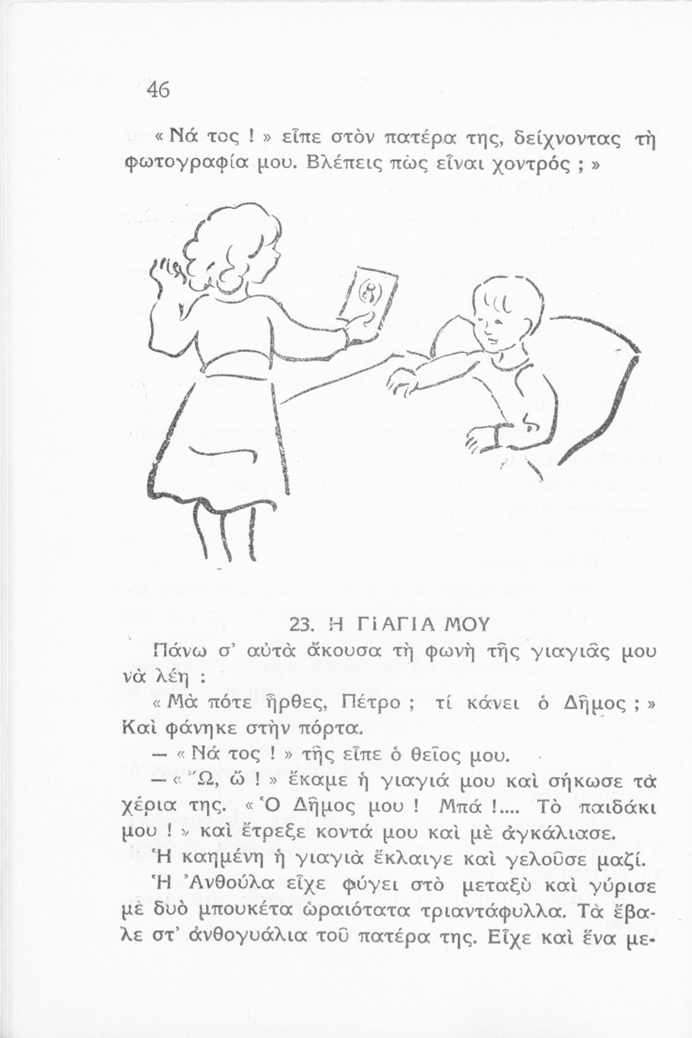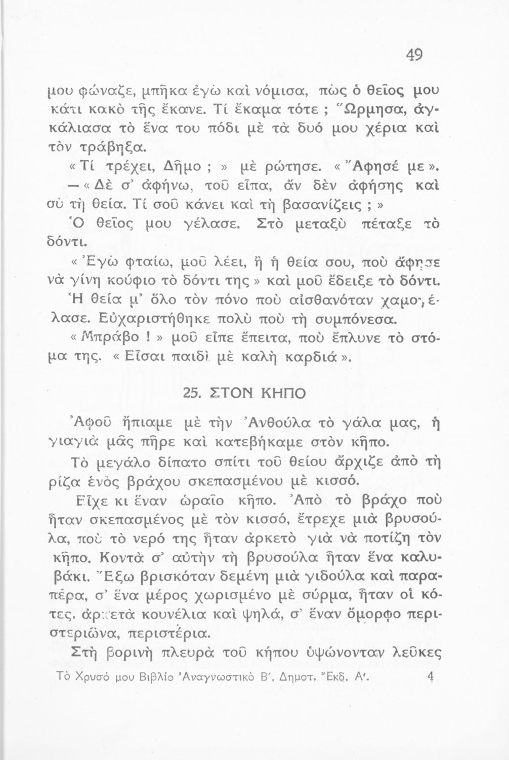 Αναγνωστικό για τη Β΄ Δημοτικού που περιέχει ποιήματα και πεζά που αντλούν τα θέματά τους από τη φύση και την παράδοση της Ελλάδας και την κοινωνική και επαγγελματική ζωή των κατοίκων της.