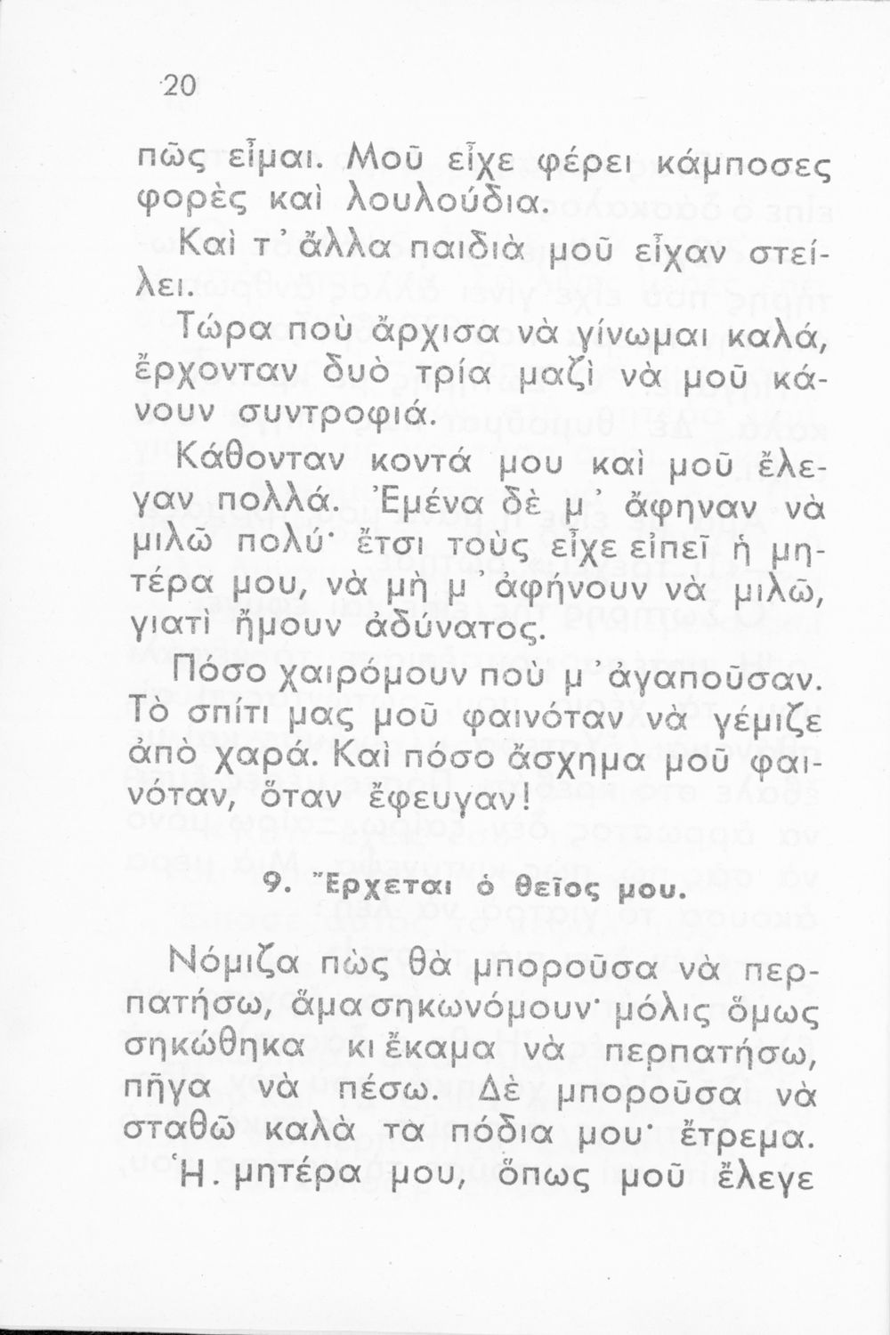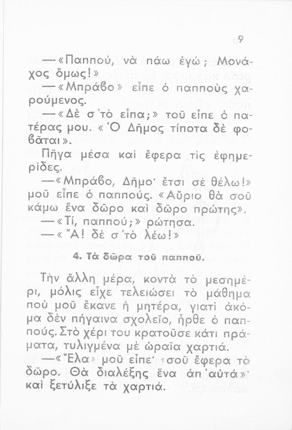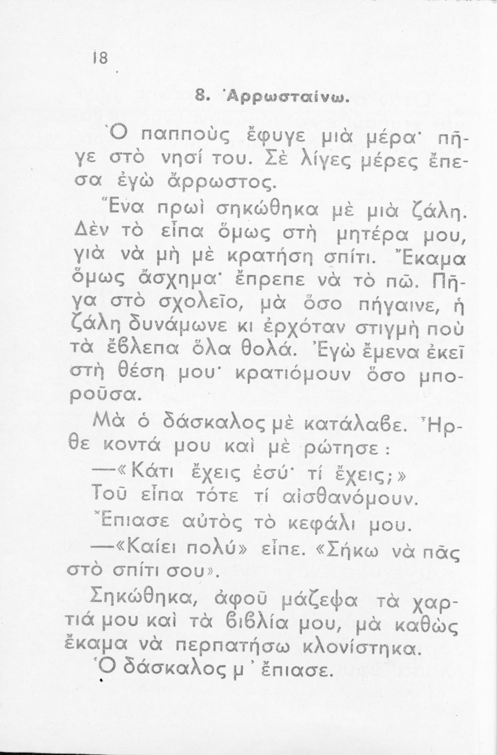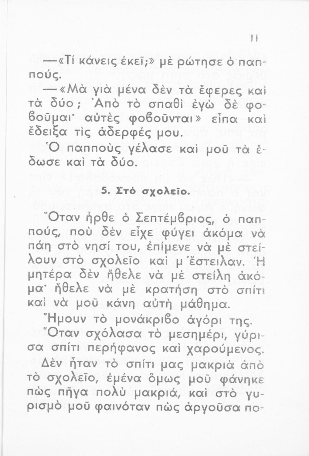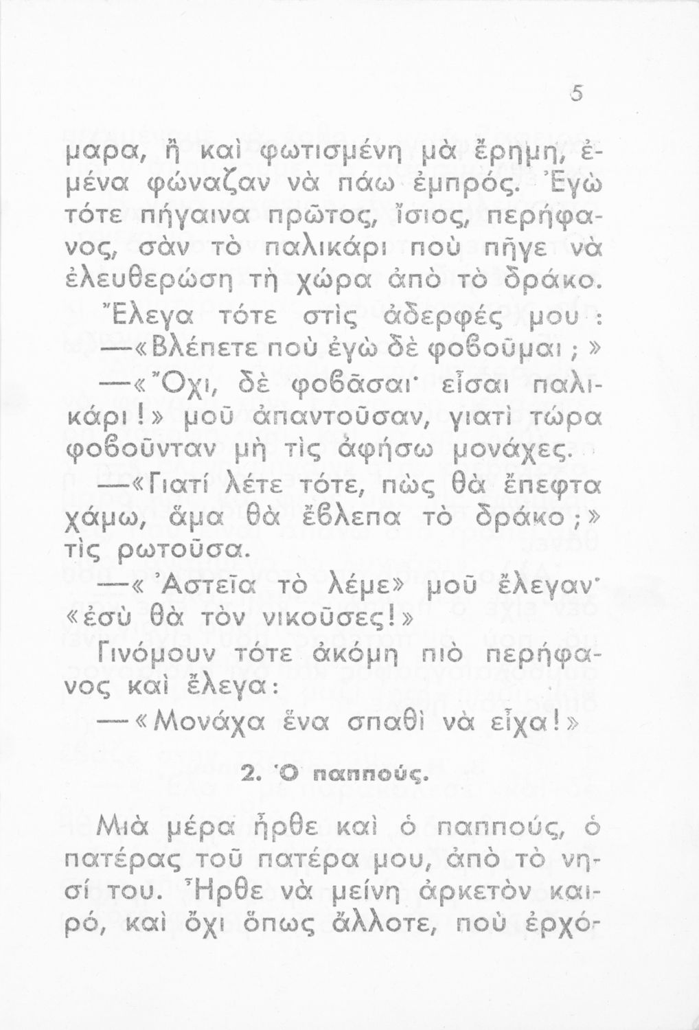 Αναγνωστικό για τη Β΄ Δημοτικού που περιέχει ποιήματα και πεζά που αντλούν τα θέματά τους από τη φύση και την παράδοση της Ελλάδας και την κοινωνική και επαγγελματική ζωή των κατοίκων της.