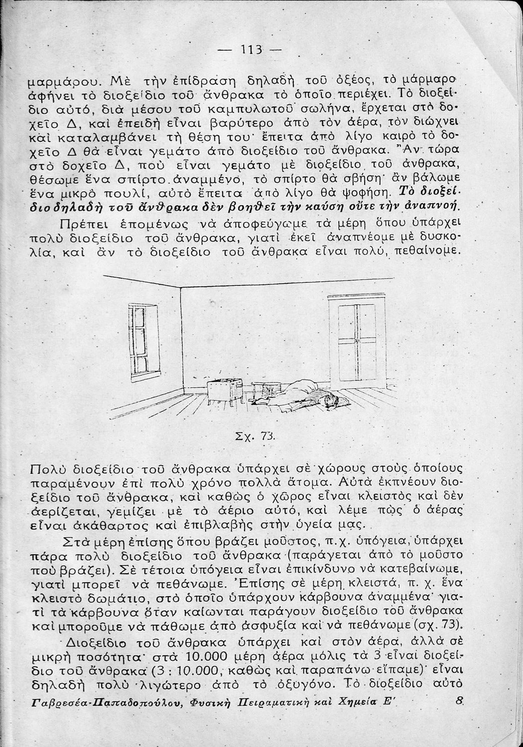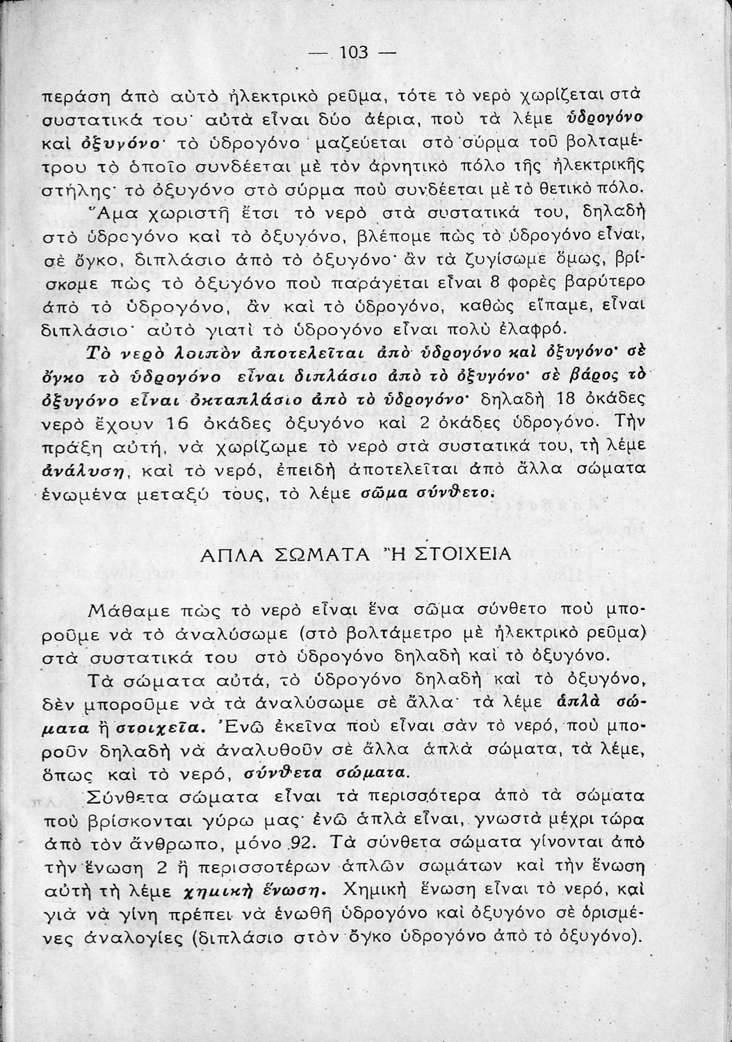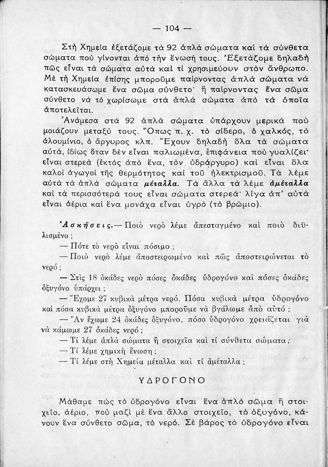 Σχολικό εγχειρίδιο της Ε' Δημοτικού για το μάθημα της Φυσικής . Παρέχει βασικές γνώσεις της φυσικής επιστήμης και της χημείας. Αναλύει τις ιδιότητες των σωμάτων, καθώς και της θερμότητας, του ηλεκτρισμού και του μαγνητισμού, την υδροστατική, την βαρύτητα και την αεροστατική. Από τη χημεία αναφέρει τις ιδιότητες των στοιχείων, των μετάλλων, τις βάσεις, τα οξέα και τα άλατα. Περιέχει εικόνες και σχεδιαγράμματα τα οποία βοηθούν τη διδασκαλία.