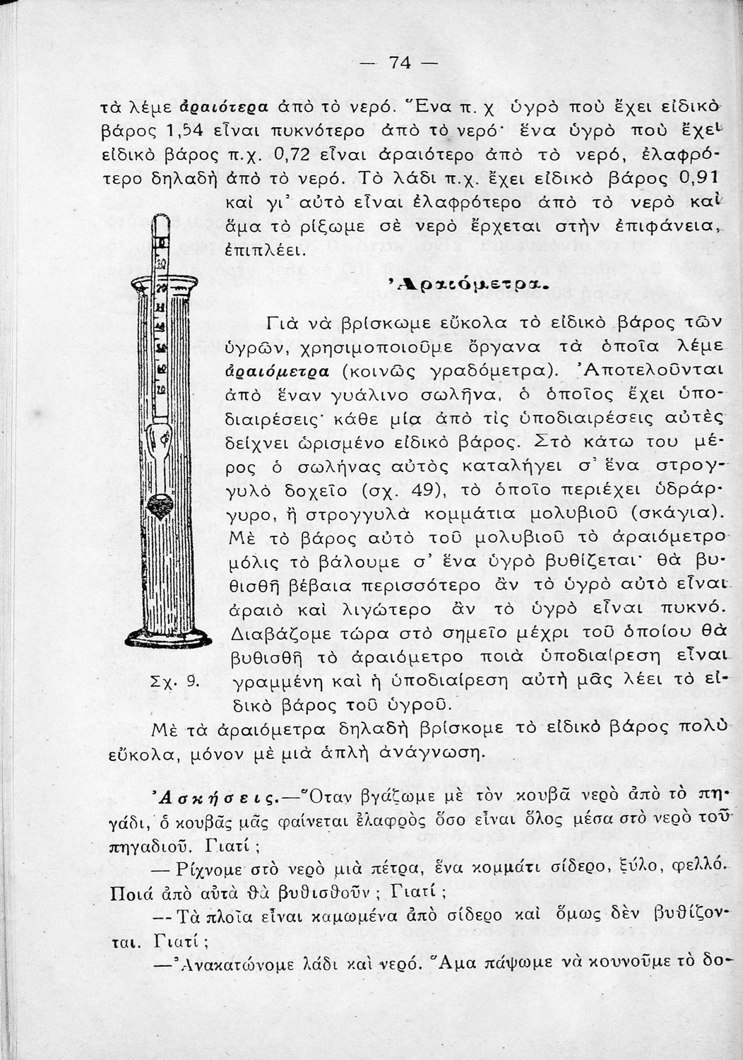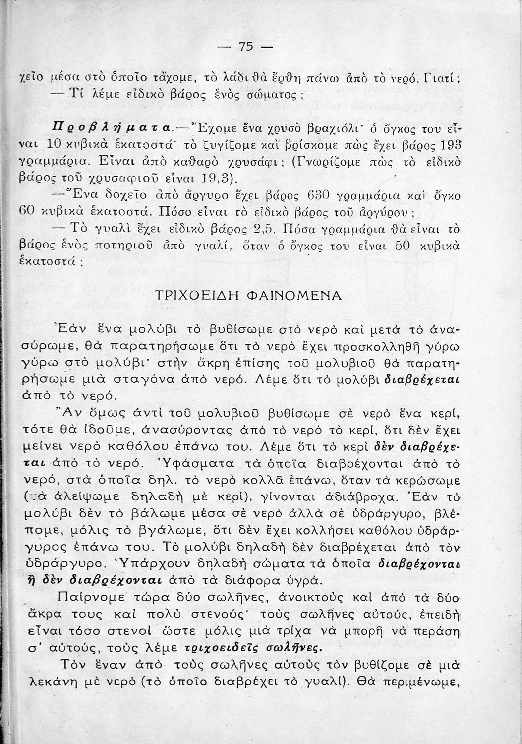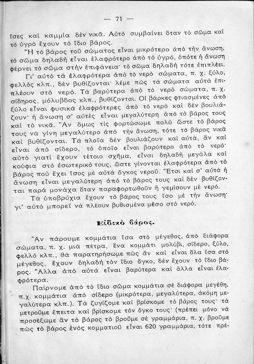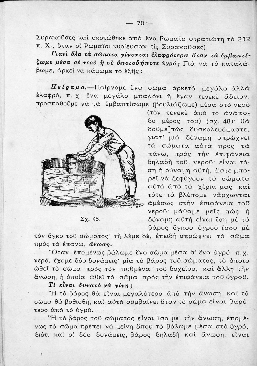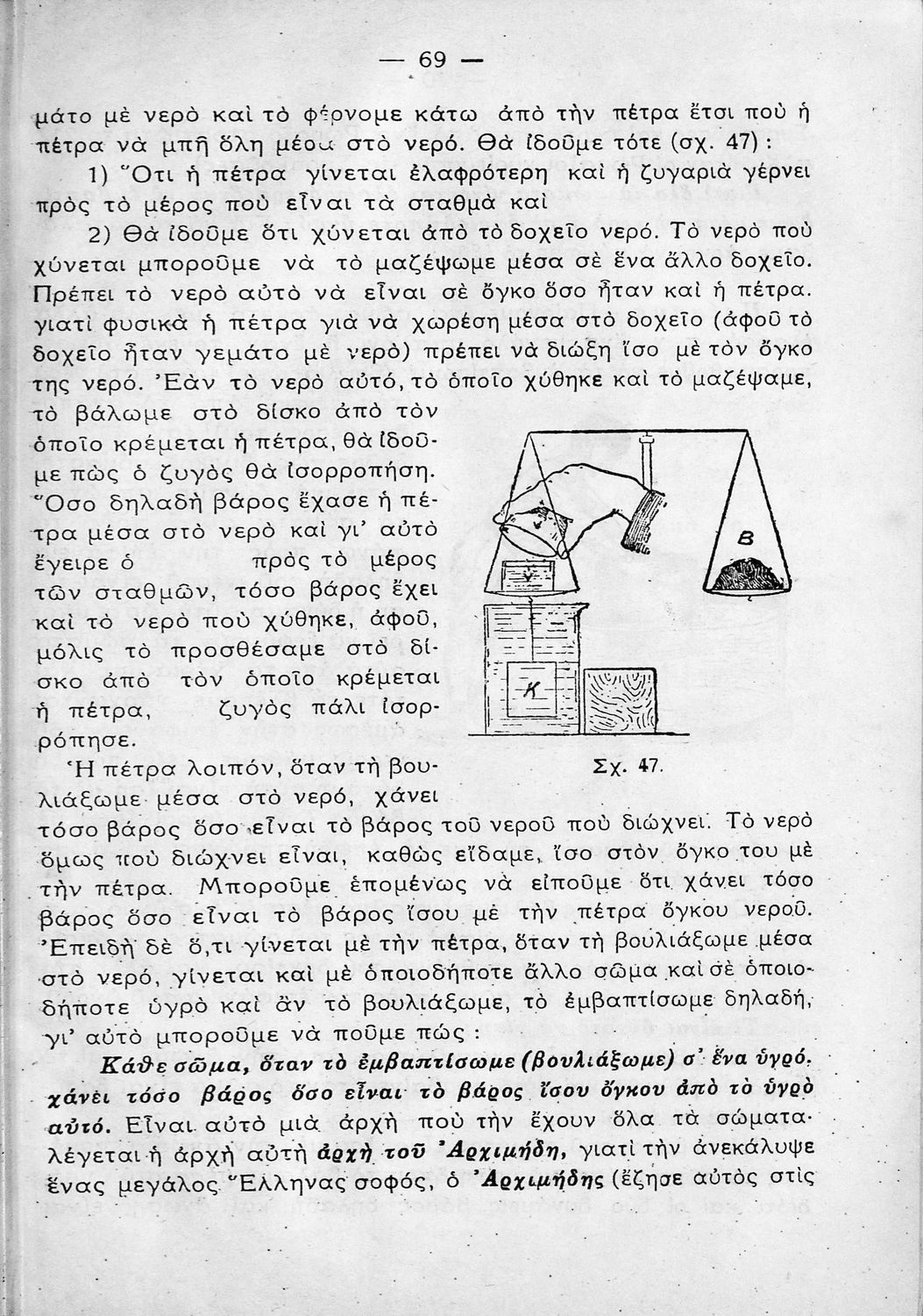 Σχολικό εγχειρίδιο της Ε' Δημοτικού για το μάθημα της Φυσικής . Παρέχει βασικές γνώσεις της φυσικής επιστήμης και της χημείας. Αναλύει τις ιδιότητες των σωμάτων, καθώς και της θερμότητας, του ηλεκτρισμού και του μαγνητισμού, την υδροστατική, την βαρύτητα και την αεροστατική. Από τη χημεία αναφέρει τις ιδιότητες των στοιχείων, των μετάλλων, τις βάσεις, τα οξέα και τα άλατα. Περιέχει εικόνες και σχεδιαγράμματα τα οποία βοηθούν τη διδασκαλία.