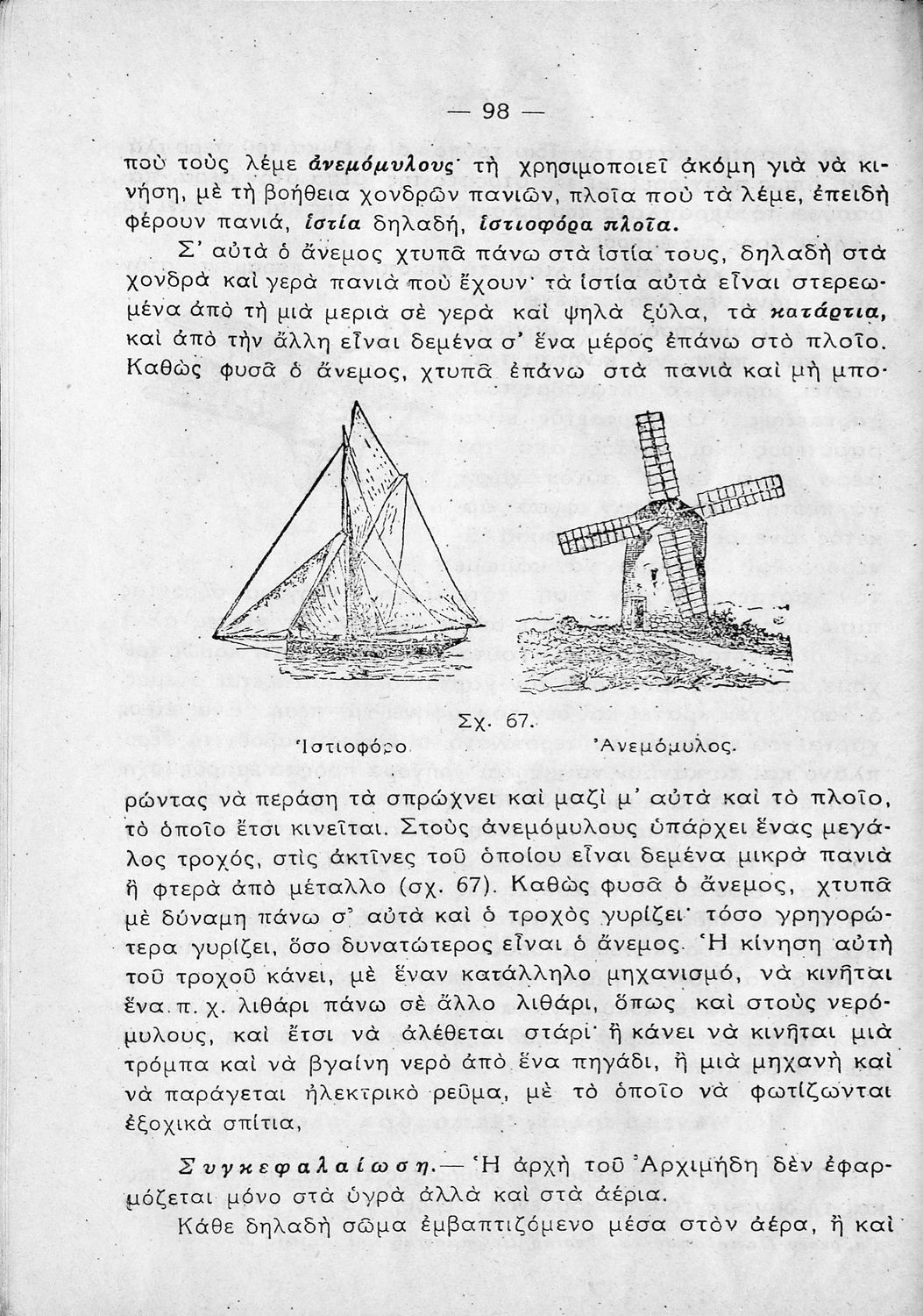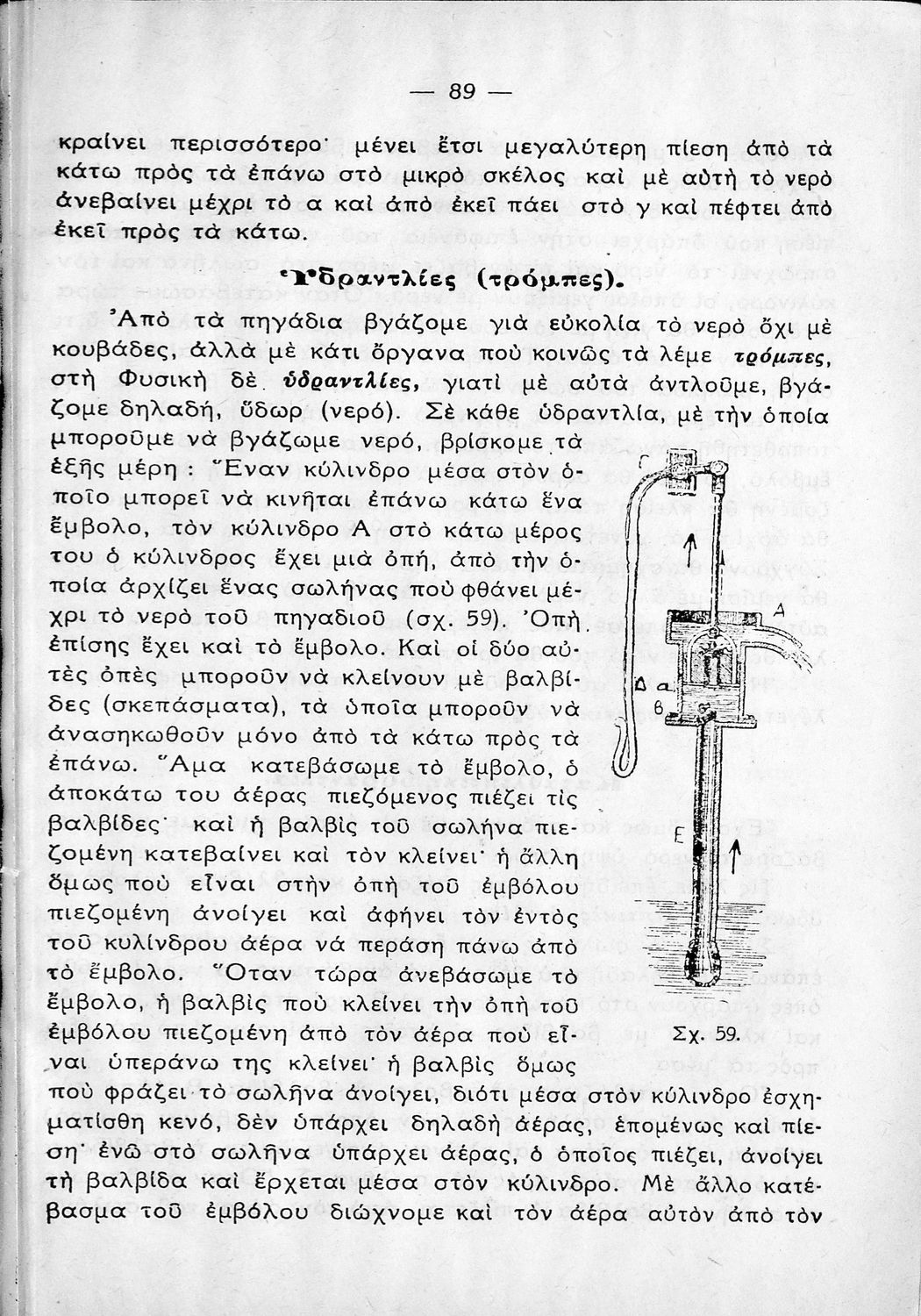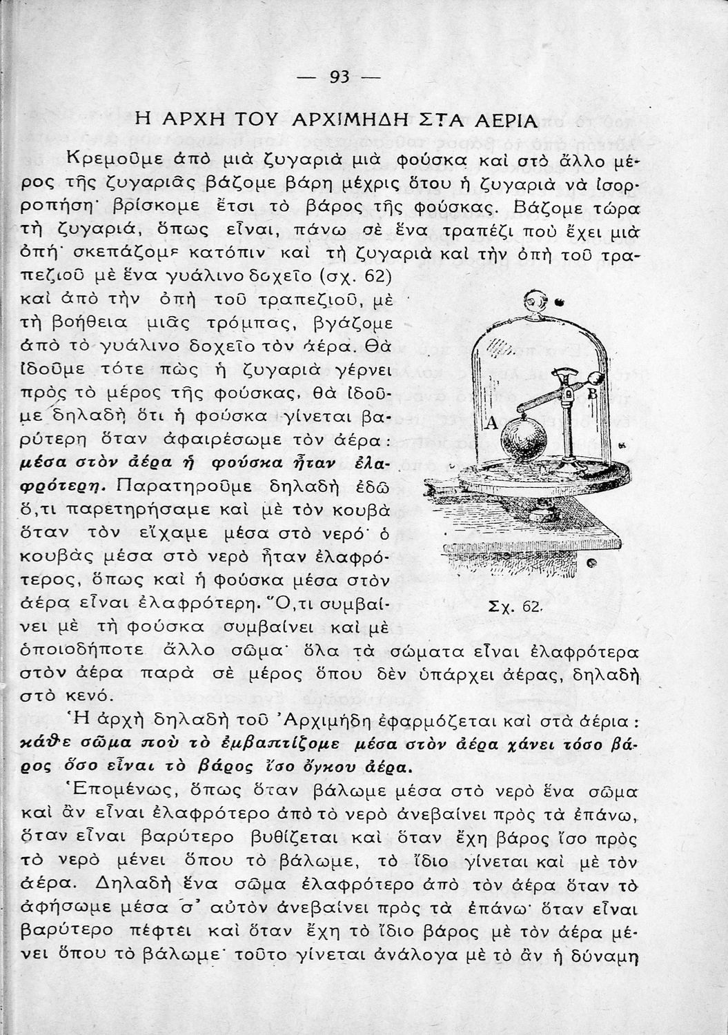 Σχολικό εγχειρίδιο της Ε' Δημοτικού για το μάθημα της Φυσικής . Παρέχει βασικές γνώσεις της φυσικής επιστήμης και της χημείας. Αναλύει τις ιδιότητες των σωμάτων, καθώς και της θερμότητας, του ηλεκτρισμού και του μαγνητισμού, την υδροστατική, την βαρύτητα και την αεροστατική. Από τη χημεία αναφέρει τις ιδιότητες των στοιχείων, των μετάλλων, τις βάσεις, τα οξέα και τα άλατα. Περιέχει εικόνες και σχεδιαγράμματα τα οποία βοηθούν τη διδασκαλία.
