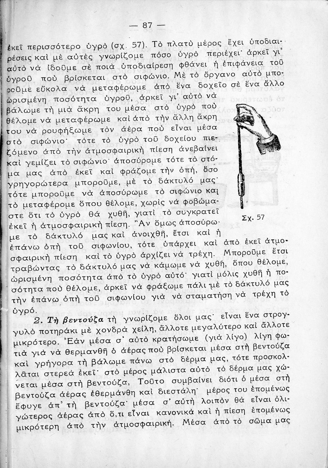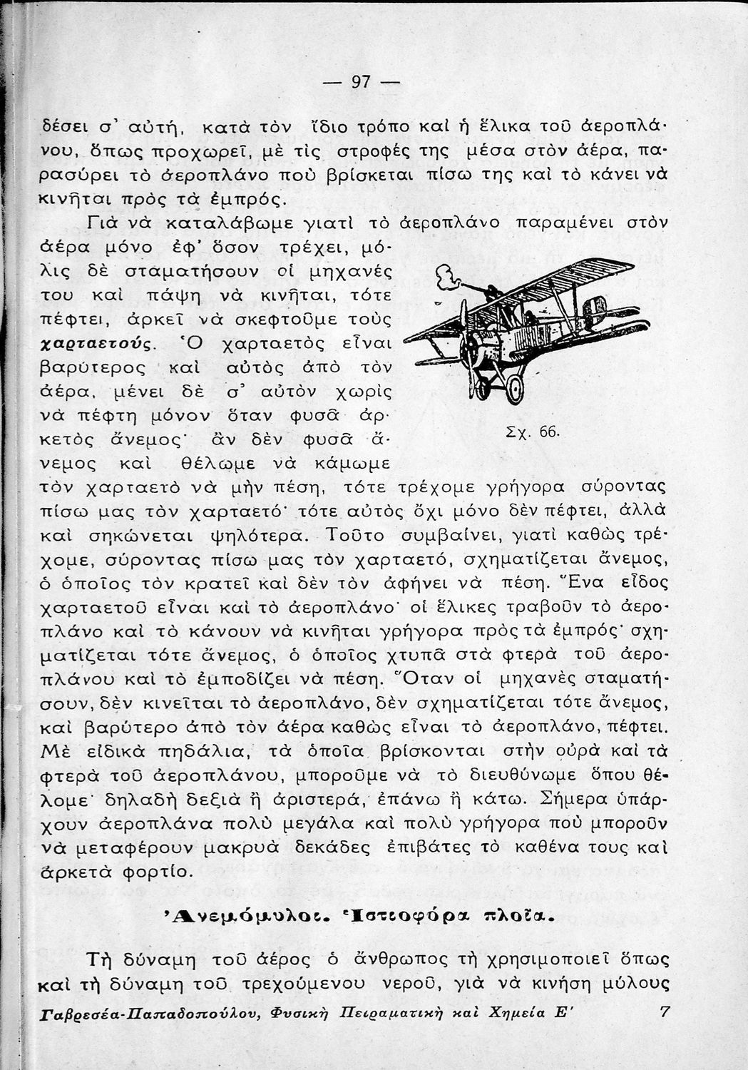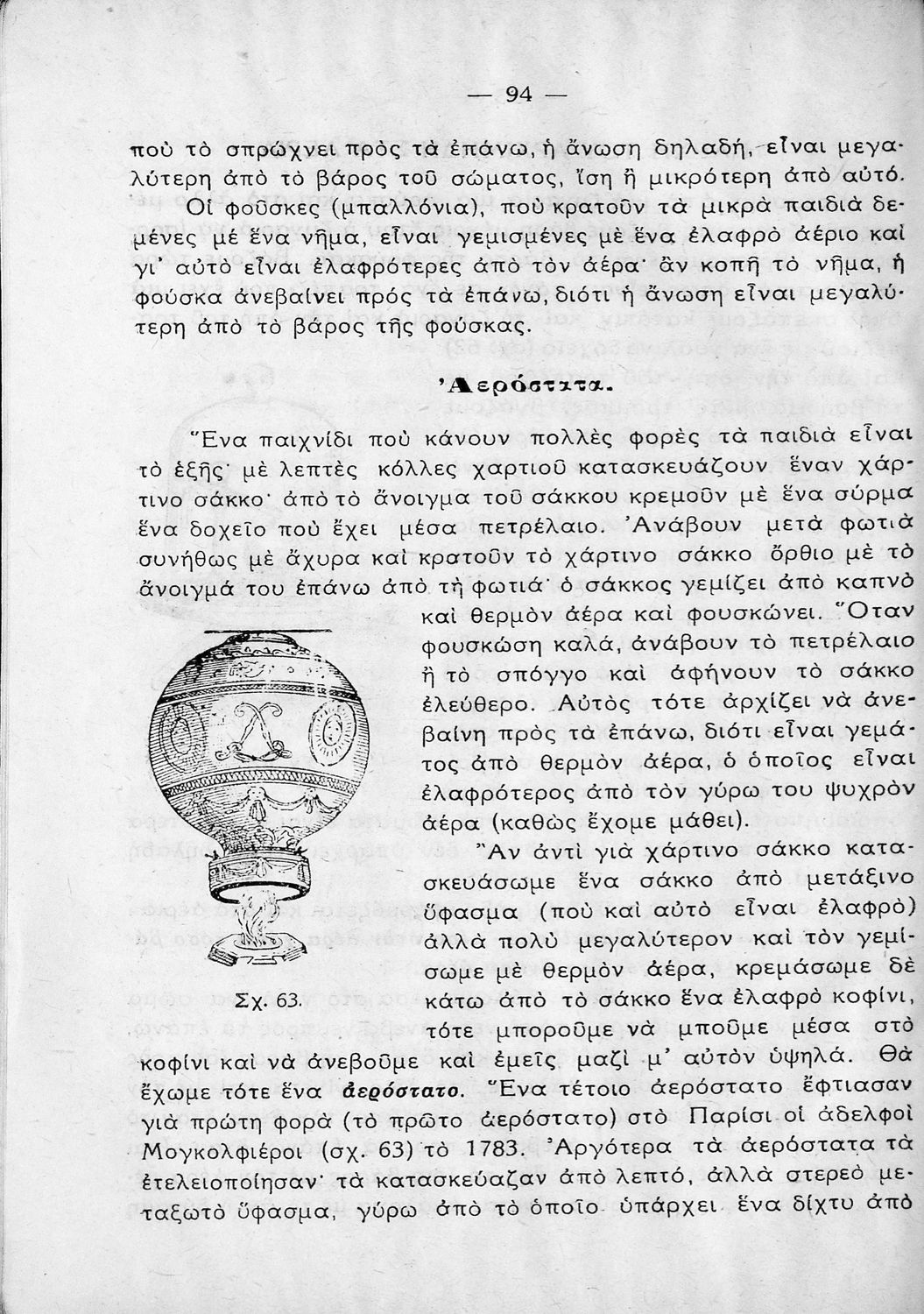 Σχολικό εγχειρίδιο της Ε' Δημοτικού για το μάθημα της Φυσικής . Παρέχει βασικές γνώσεις της φυσικής επιστήμης και της χημείας. Αναλύει τις ιδιότητες των σωμάτων, καθώς και της θερμότητας, του ηλεκτρισμού και του μαγνητισμού, την υδροστατική, την βαρύτητα και την αεροστατική. Από τη χημεία αναφέρει τις ιδιότητες των στοιχείων, των μετάλλων, τις βάσεις, τα οξέα και τα άλατα. Περιέχει εικόνες και σχεδιαγράμματα τα οποία βοηθούν τη διδασκαλία.