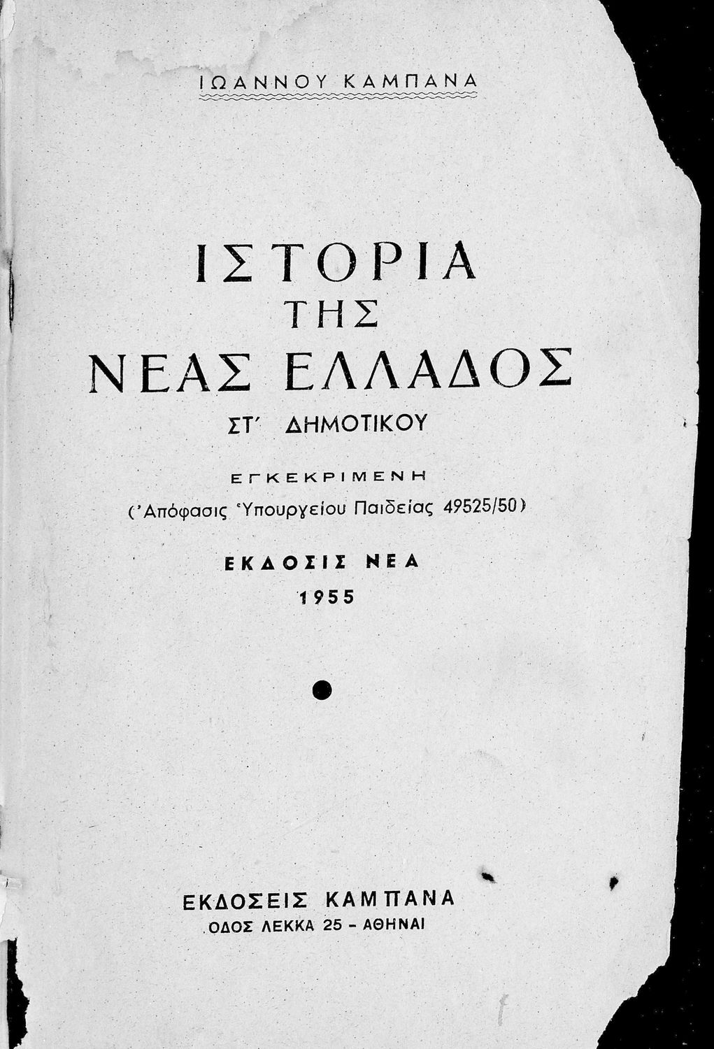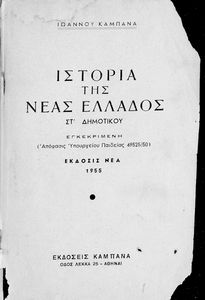 Εκδότης: Καμπάνας Έτος έκδοσης: 1955 Τόπος έκδοσης: Αθήνα Υπουργική απόφαση / Σύμβαση: 49525/1950 Έτος έγκρισης: 1950 |
