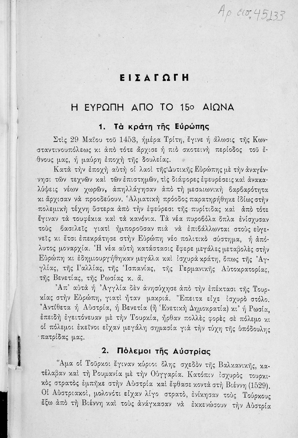 LDR 01186 2200205 4500 035 ## _a01-45133 040 ## _aΙνστιτούτο Εκπαιδευτικής Πολιτικής 041 ## _ael 100 ## _aΙωάννης Καμπανάς 110 ## _a45133 245 0# _aΙστορία της Νέας Ελλάδος ΣΤ΄ Δημοτικού 260 ## _aΑθήνα _bΚαμπάνας _c1955 300 ## _a150 _bΣκίτσα, εικόνες (ασπρόμαυρα) 520 ## _aΜαθητικό βοήθημα Ιστορίας ΣΤ΄ Δημοτικού που περιλαμβάνει την ιστορία της νεώτερης Ελλάδας από την περίοδο των Φαναριωτών μέχρι και την λήξη των Βαλκανικών Πολέμων. 521 ## _aΣΤ' Δημοτικού 522 ## _aΕλλάδα 546 ## _aΔημοτική 563 ## _aΜαλακό Εξώφυλλο 583 ## _a49525/1950 _c1950 650 #4 _aΑλή Πασάς _aΒαλκανικοί Πόλεμοι _aΕλληνική Επανάσταση _aΚαποδίστριας _aΚοραής _aΛάμπρος Κατσώνης _aΌθωνας _aΦαναριώτες _aΦιλική Εταιρεία