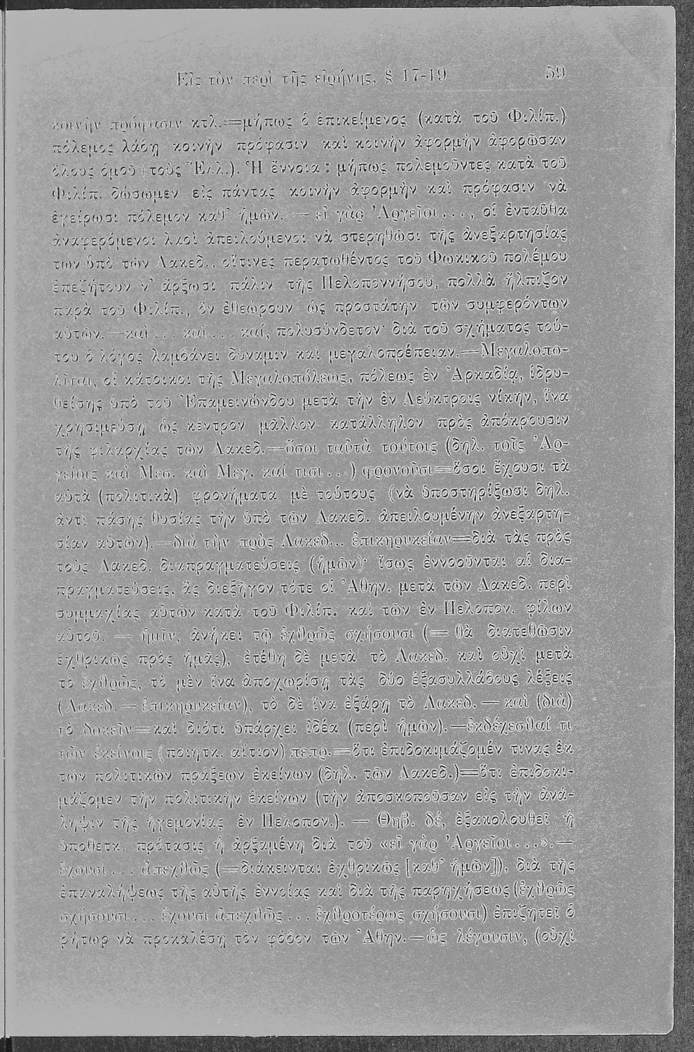 Σχολικό εγχειρίδιο Αρχαίων Ελληνικών Γ΄ Γυμνασίου που περιλαμβάνει τον Λόγο του Δημοσθένη Α΄ κατά Φιλίππου, εισαγωγικά σχόλια στο έργο και τη ζωή του, ερμηνευτικά και γραμματικά σχόλια και παρατηρήσεις.