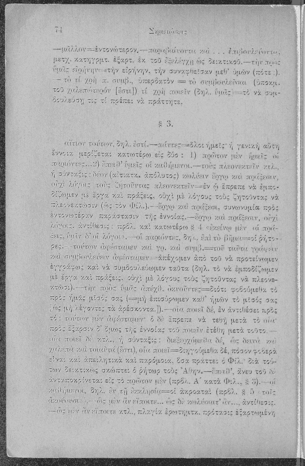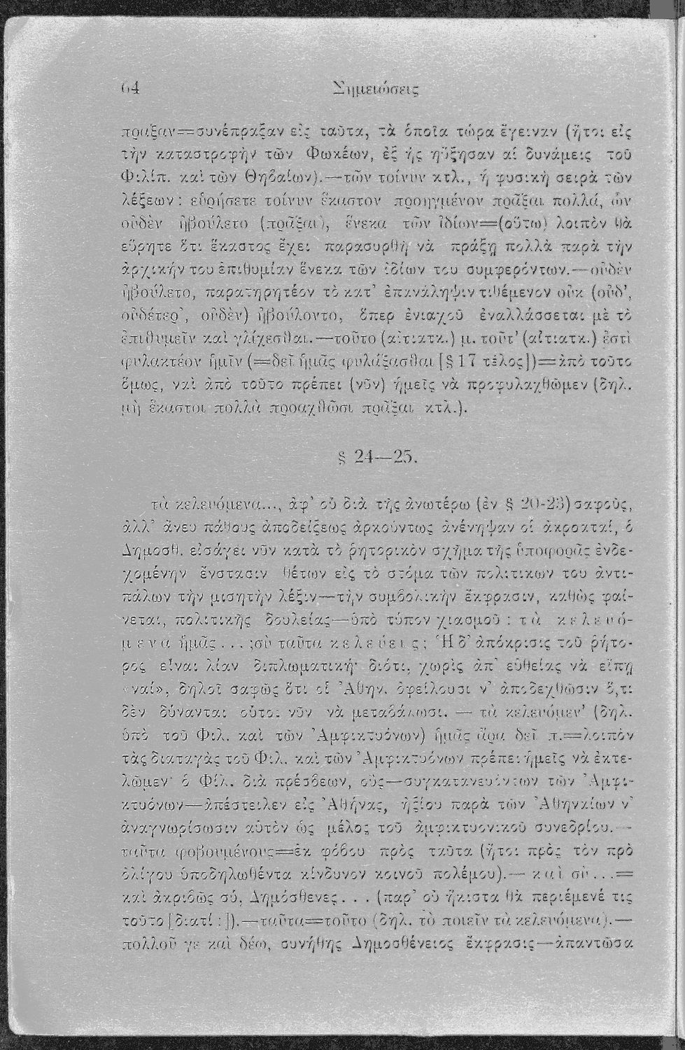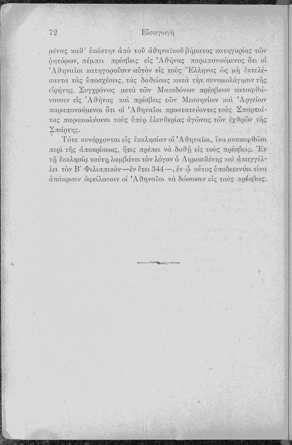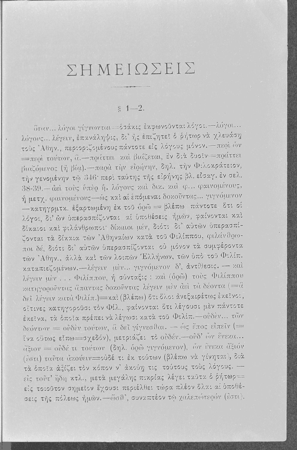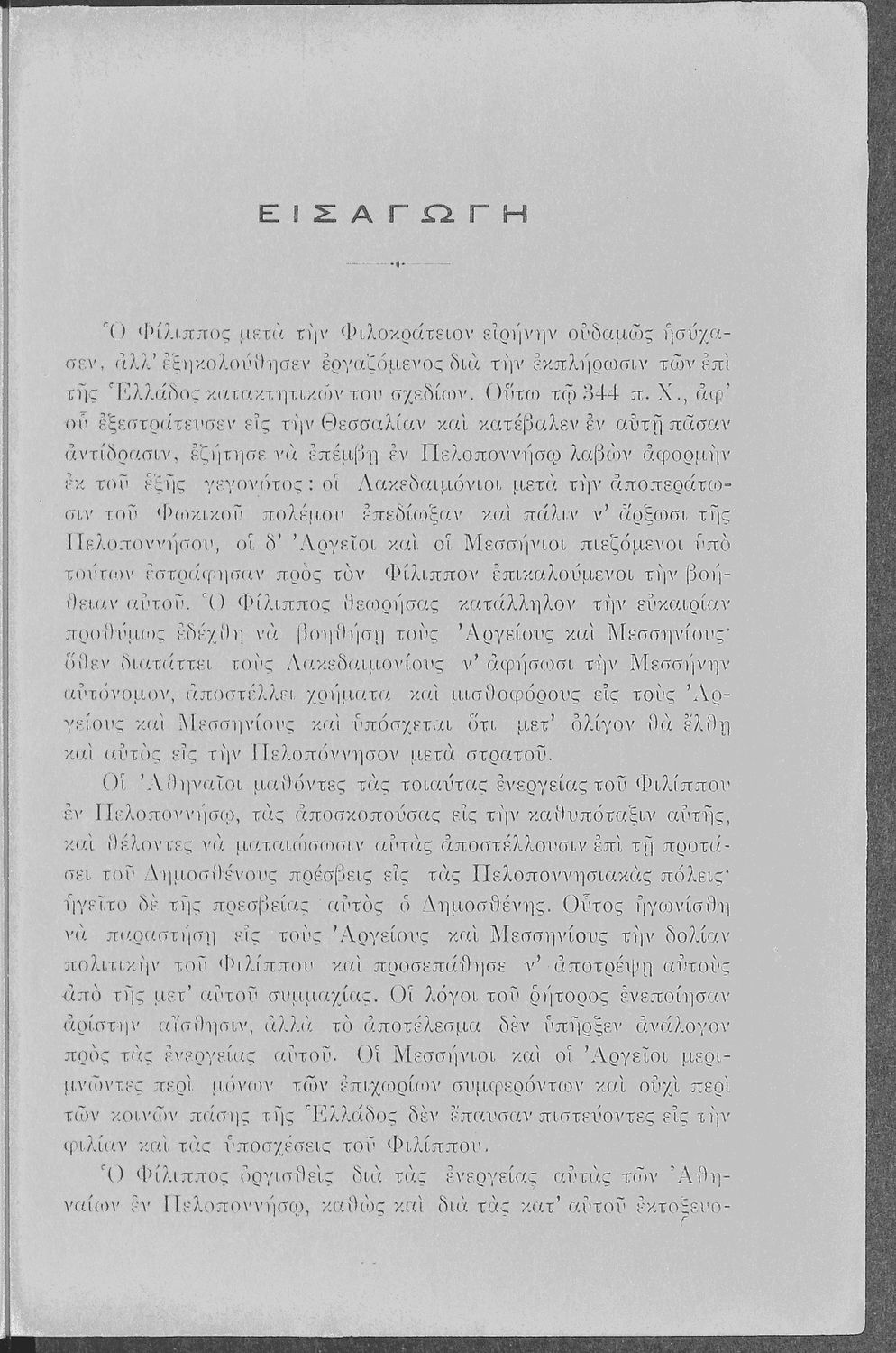 Σχολικό εγχειρίδιο Αρχαίων Ελληνικών Γ΄ Γυμνασίου που περιλαμβάνει τον Λόγο του Δημοσθένη Α΄ κατά Φιλίππου, εισαγωγικά σχόλια στο έργο και τη ζωή του, ερμηνευτικά και γραμματικά σχόλια και παρατηρήσεις.
