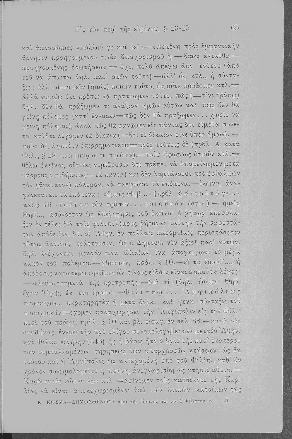 Δημοσθένης, Κυριάκος Κοσμάς (σχόλια)