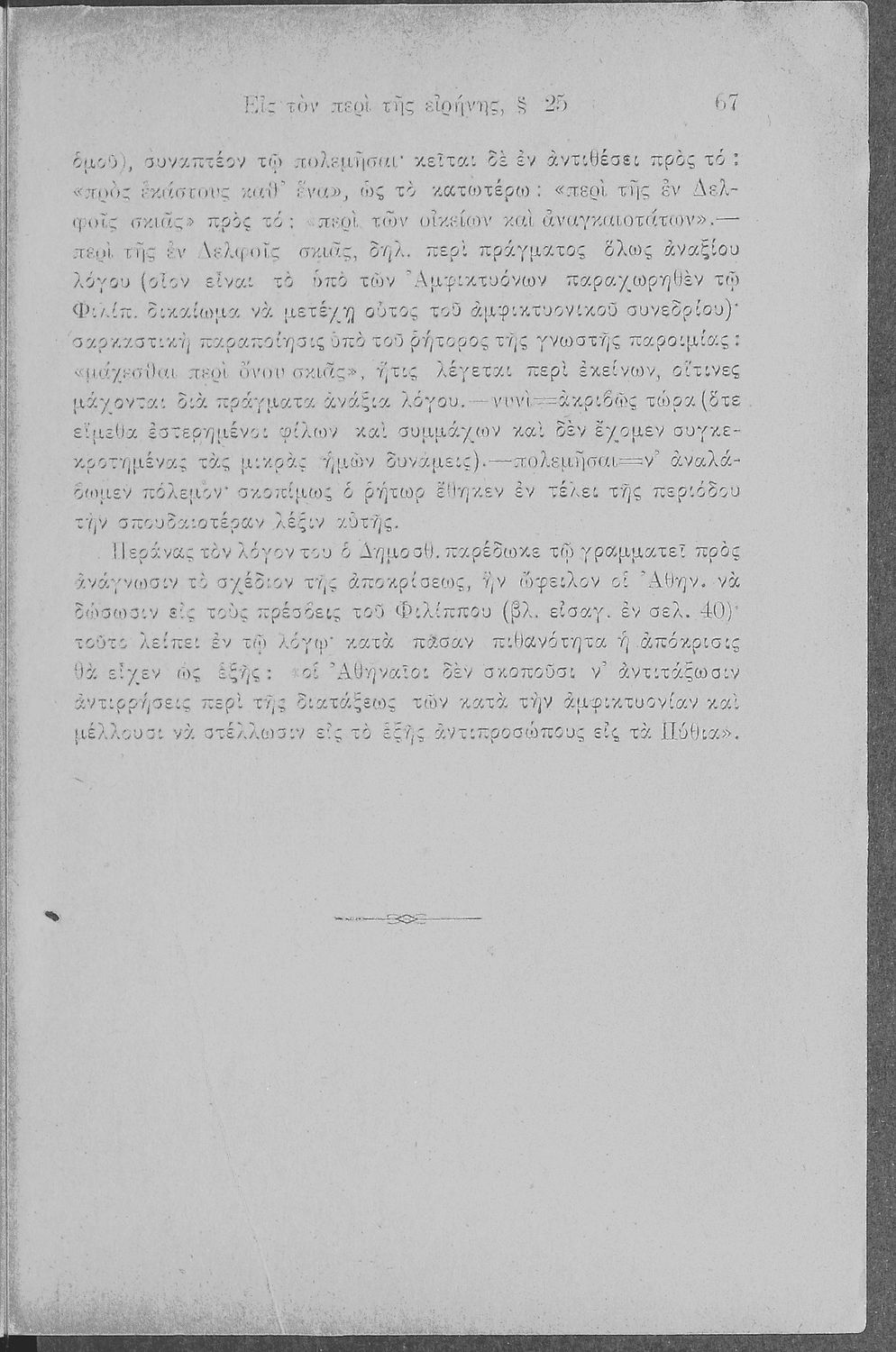 Σχολικό εγχειρίδιο Αρχαίων Ελληνικών Γ΄ Γυμνασίου που περιλαμβάνει τους Λόγους του Δημοσθένη Περί της ειρήνης και Β΄ κατά Φιλίππου, εισαγωγή στη ζωή και το έργο του και ερμηνευτικά και γραμματικά σχόλια.