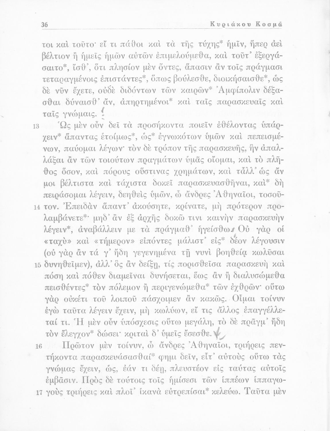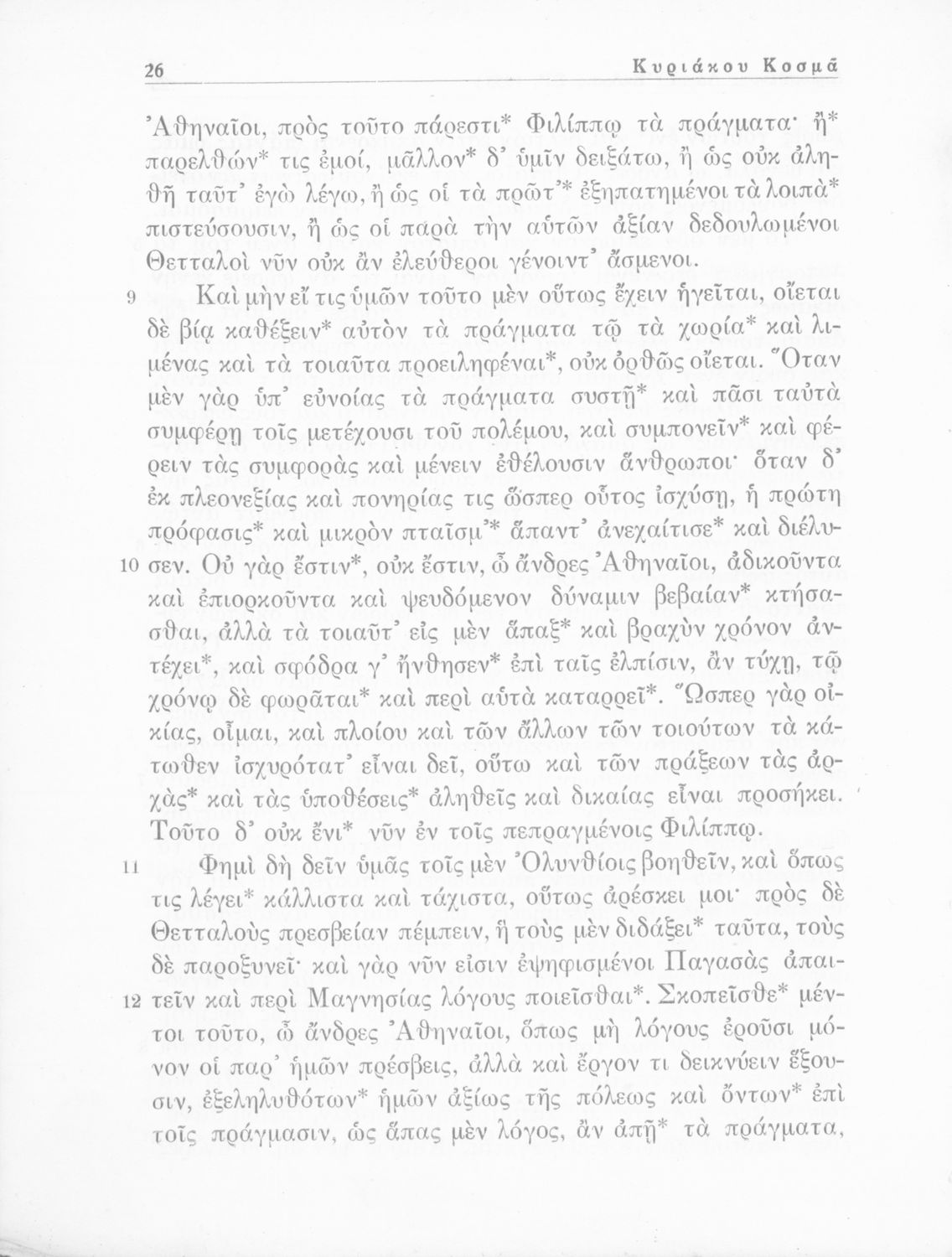 Δημοσθένης, Κυριάκος Κοσμάς (σχόλια)