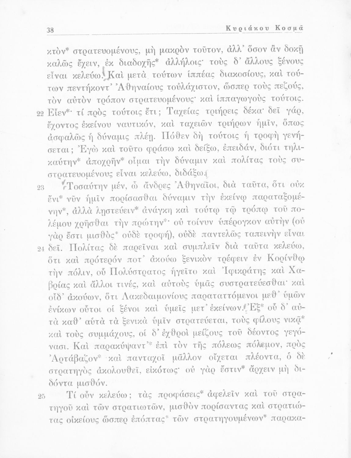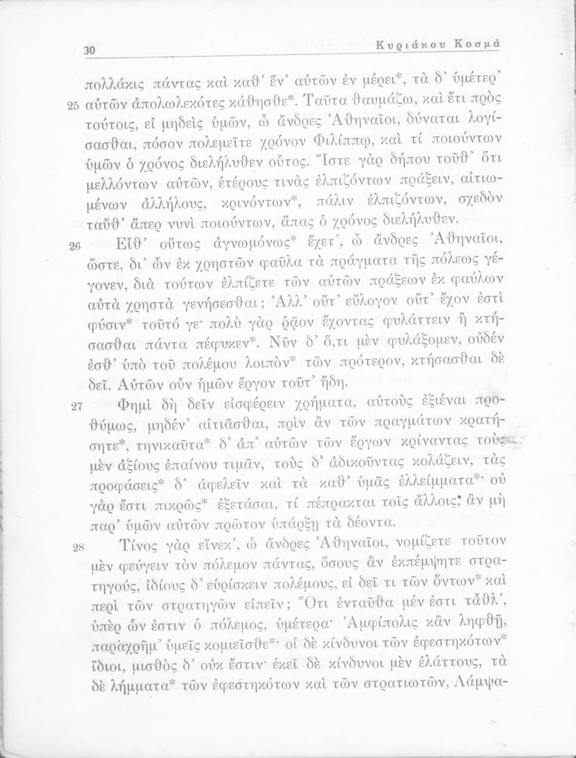 Δημοσθένης, Λυκούργος, Ισοκράτης, Κυριάκος Κοσμάς (σχόλια)