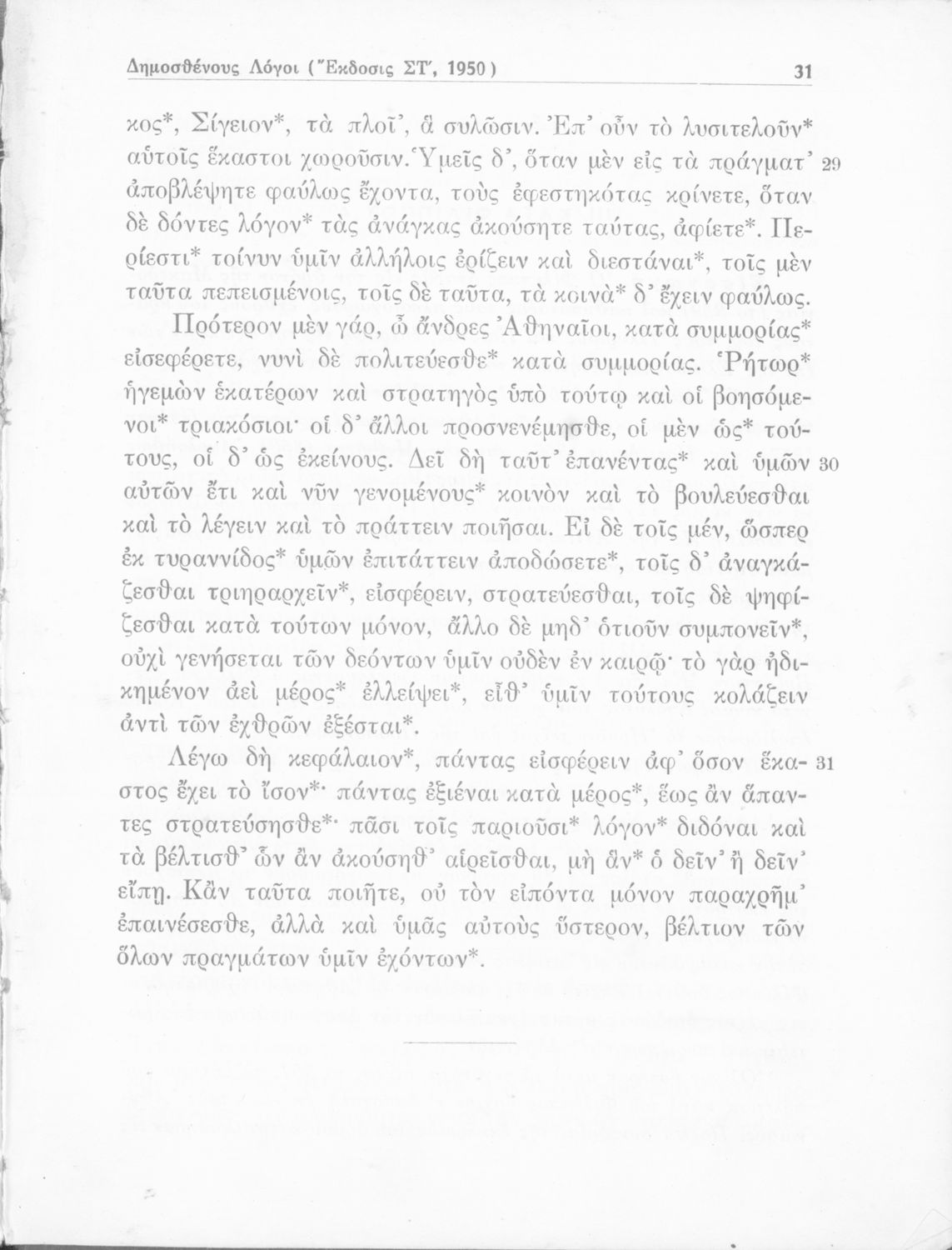 Δημοσθένης, Νικόλαος Ζαφειρίου (σχόλια)