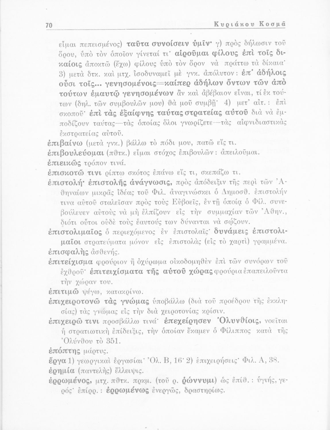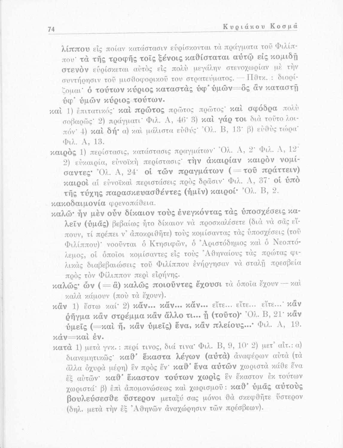 Δημοσθένης, Κυριάκος Κοσμάς (σχόλια)