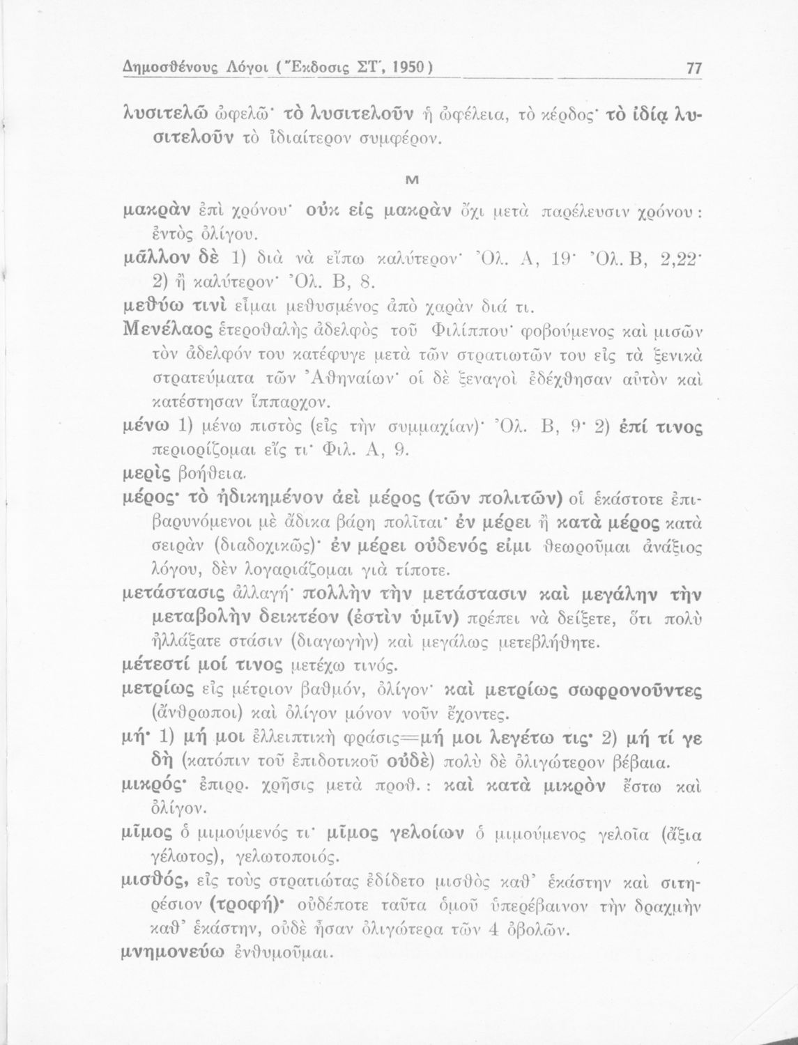 Σχολικό εγχειρίδιο Αρχαίων Ελληνικών Δ΄ Γυμνασίου που περιλαμβάνει εισαγωγή στη ζωή και στο έργο του Δημοσθένη, τον Α΄ κατά Φιλίππου, και τους Α΄ και Β΄ Ολυνθιακούς και ερμηνευτικά και ετυμολογικά σχόλια.