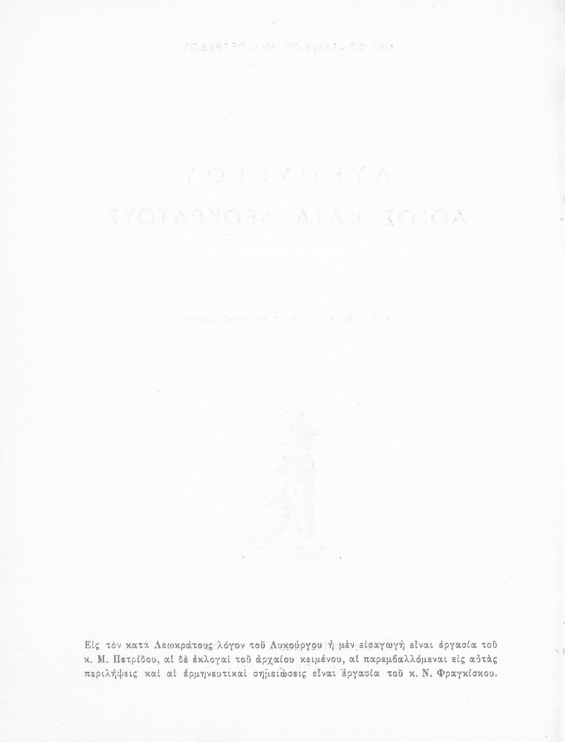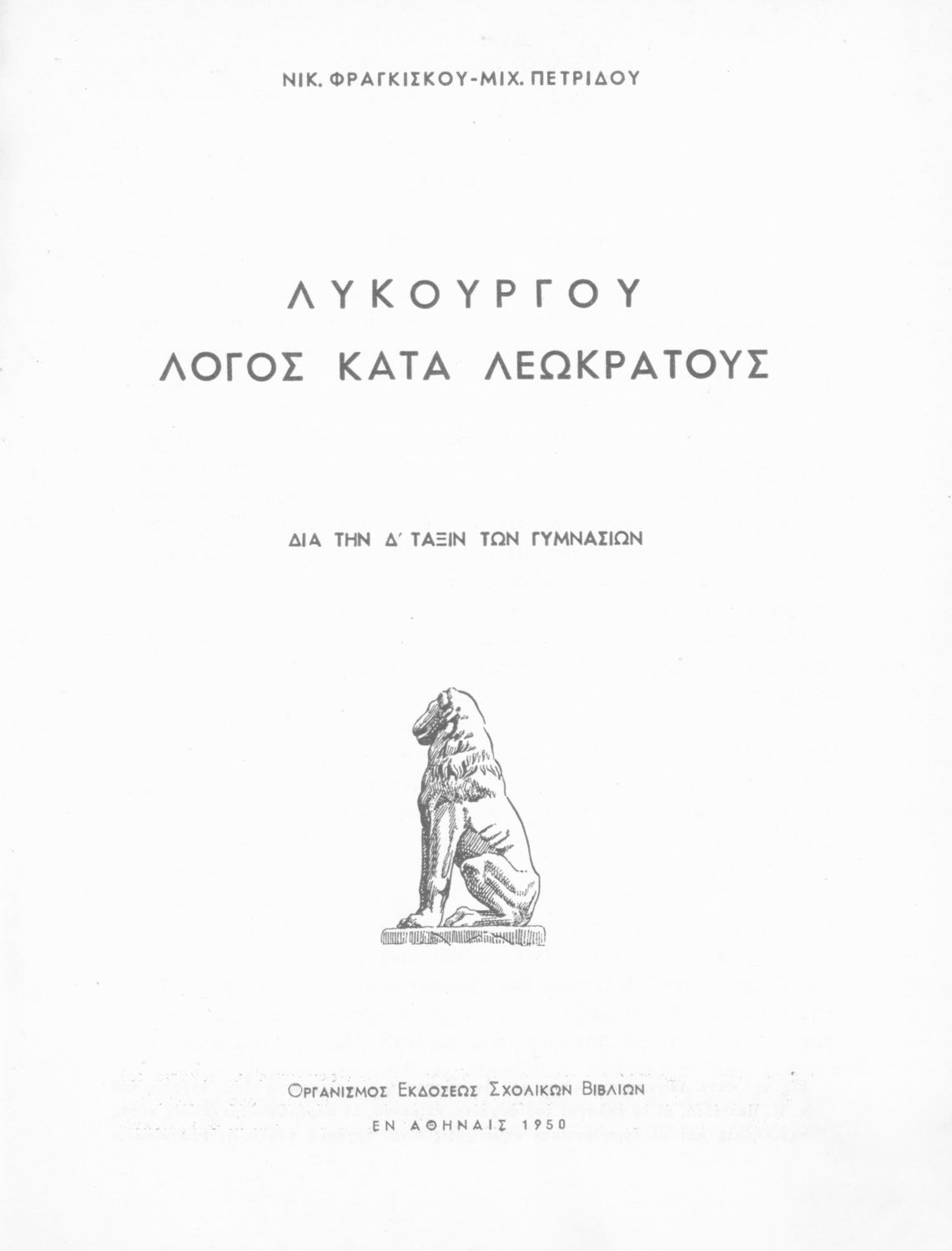 Δημοσθένης, Λυκούργος, Ισοκράτης, Κυριάκος Κοσμάς, Ν. Φραγκίσκος, Μ. Πετρίδης, Γ. Παπαοικονόμου (εισαγωγή, σχόλια)