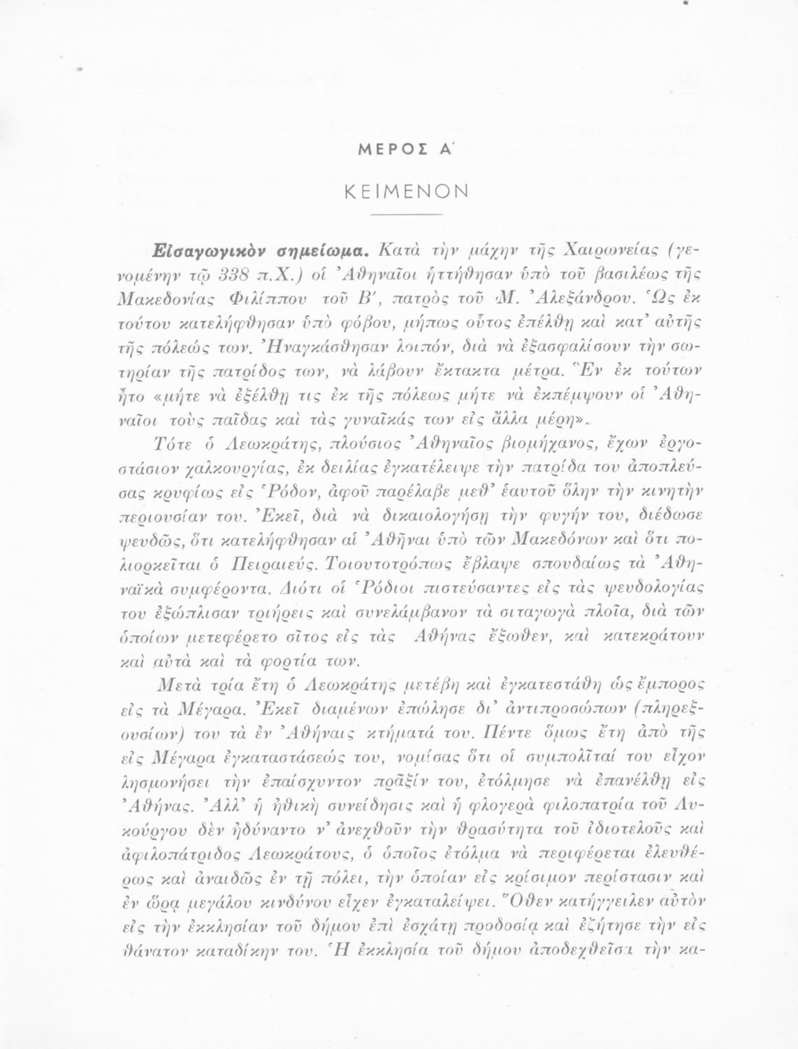 Σχολικό εγχειρίδιο Αρχαίων Ελληνικών Δ΄ Γυμνασίου που περιλαμβάνει τους Ολυνθιακούς Α΄ και Β΄ και τους Φιλιππικούς Α΄ και Β' του Δημοσθένη, τον Λόγο κατά Λεωκράτους του Λυκούργου και Επιστολές του Ισοκράτη, ...