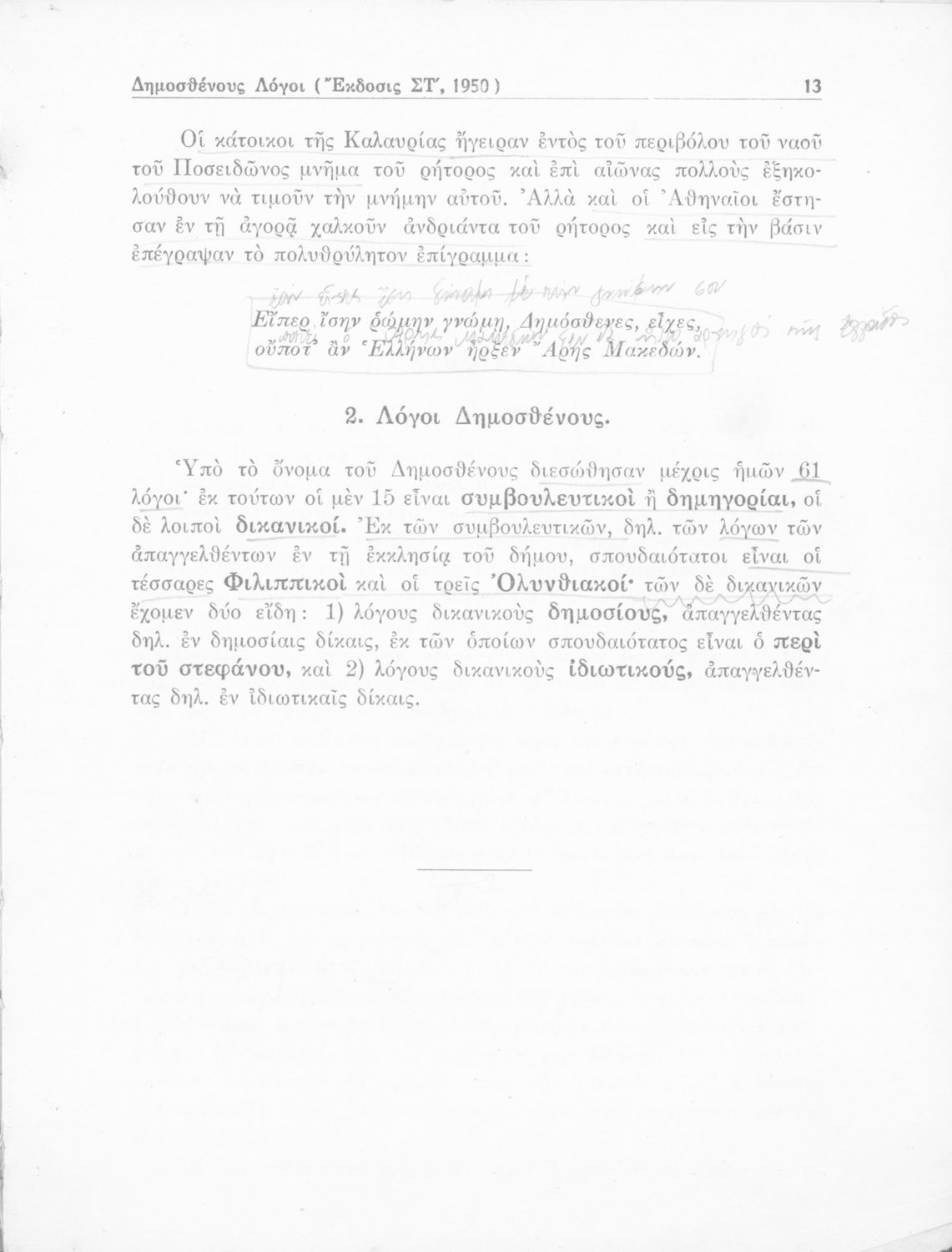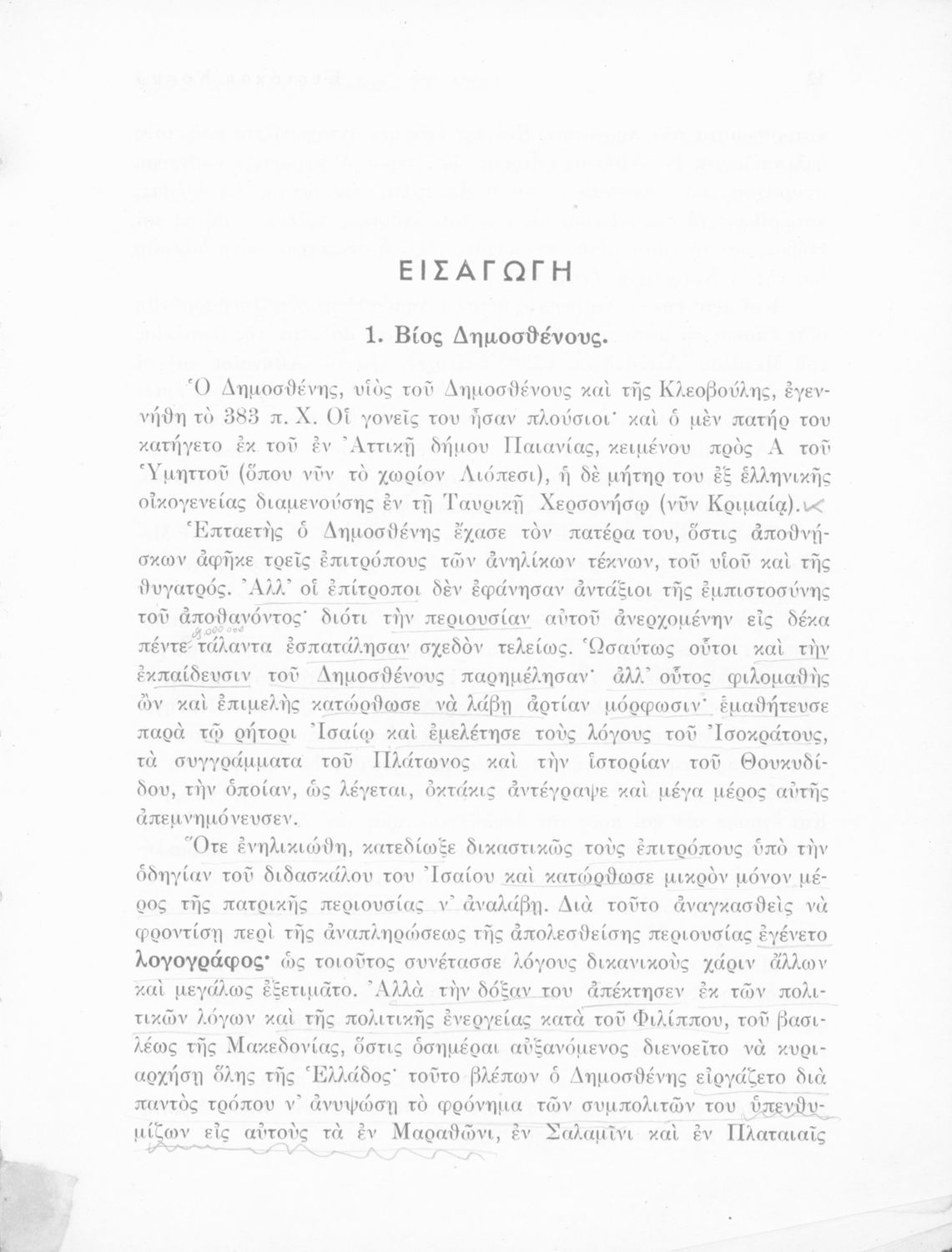 Δημοσθένης, Νικόλαος Ζαφειρίου (σχόλια)