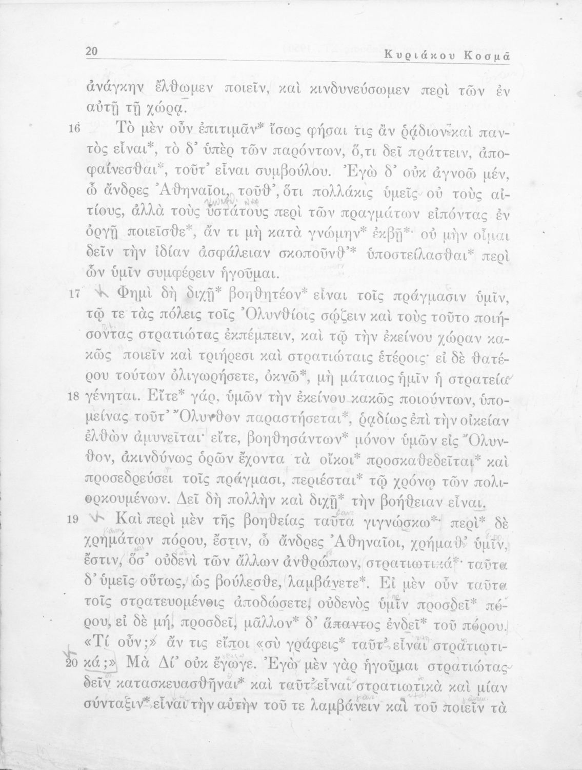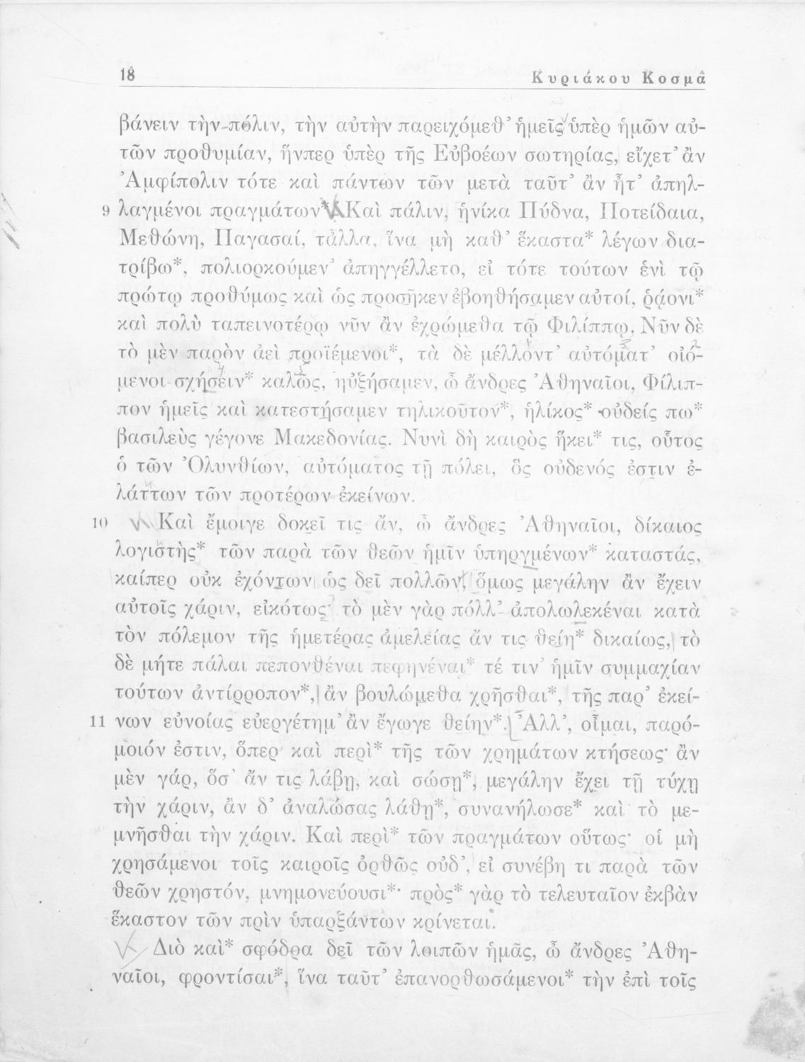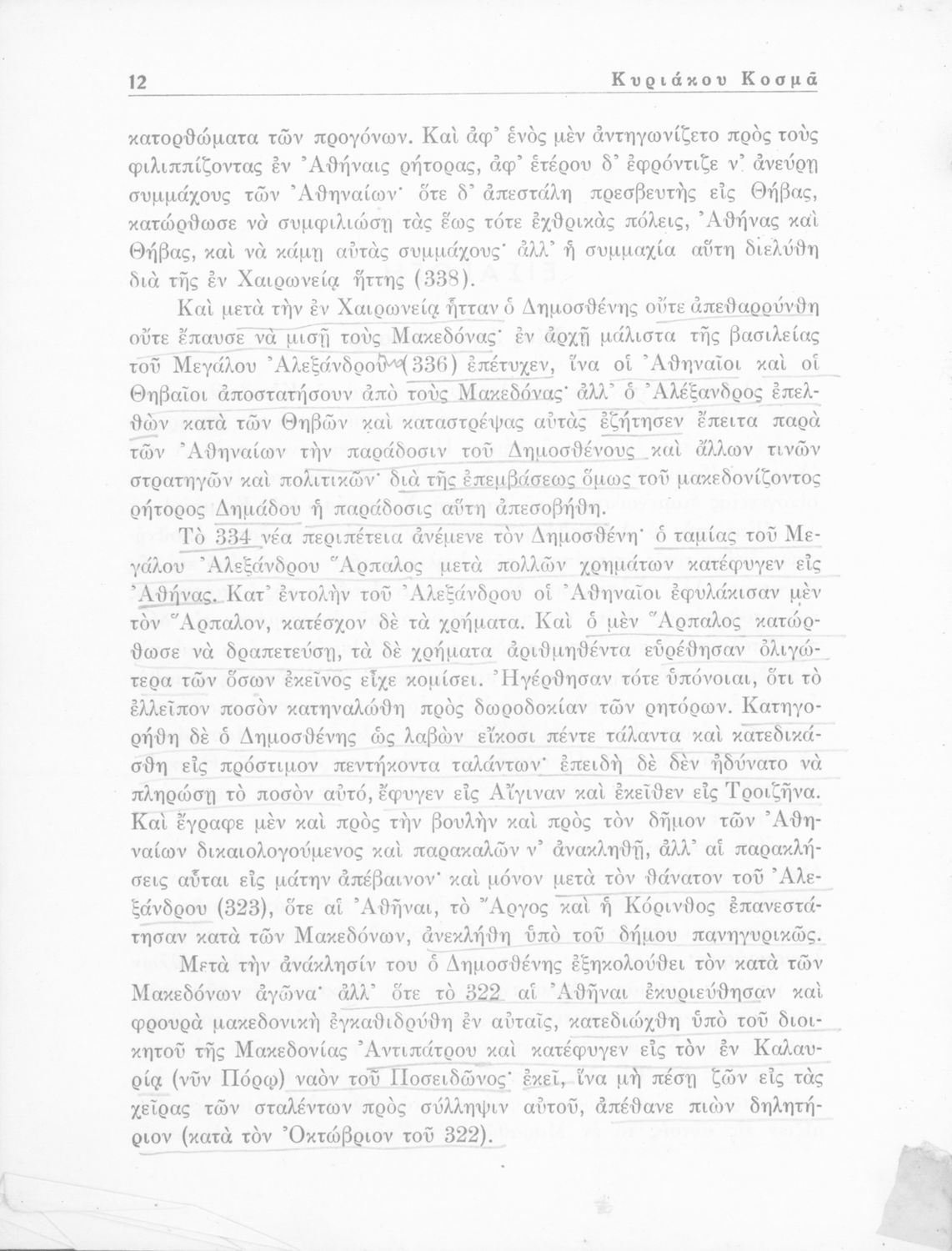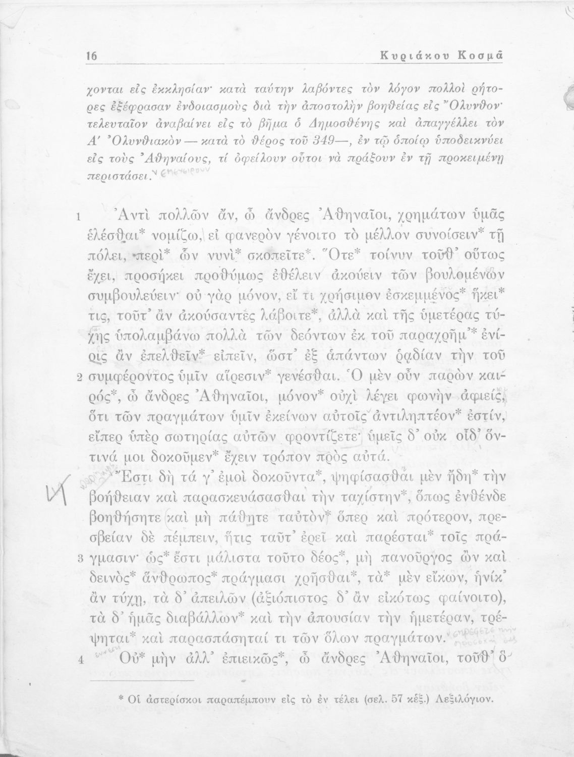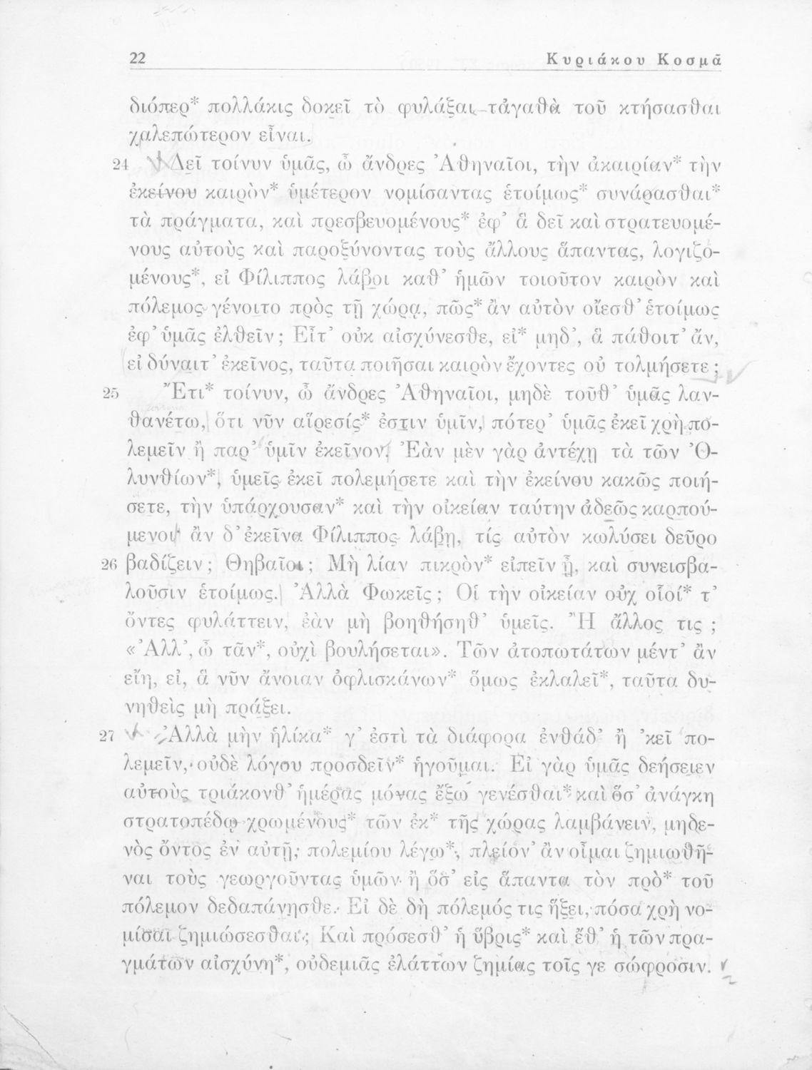 Δημοσθένης, Κυριάκος Κοσμάς (σχόλια)
