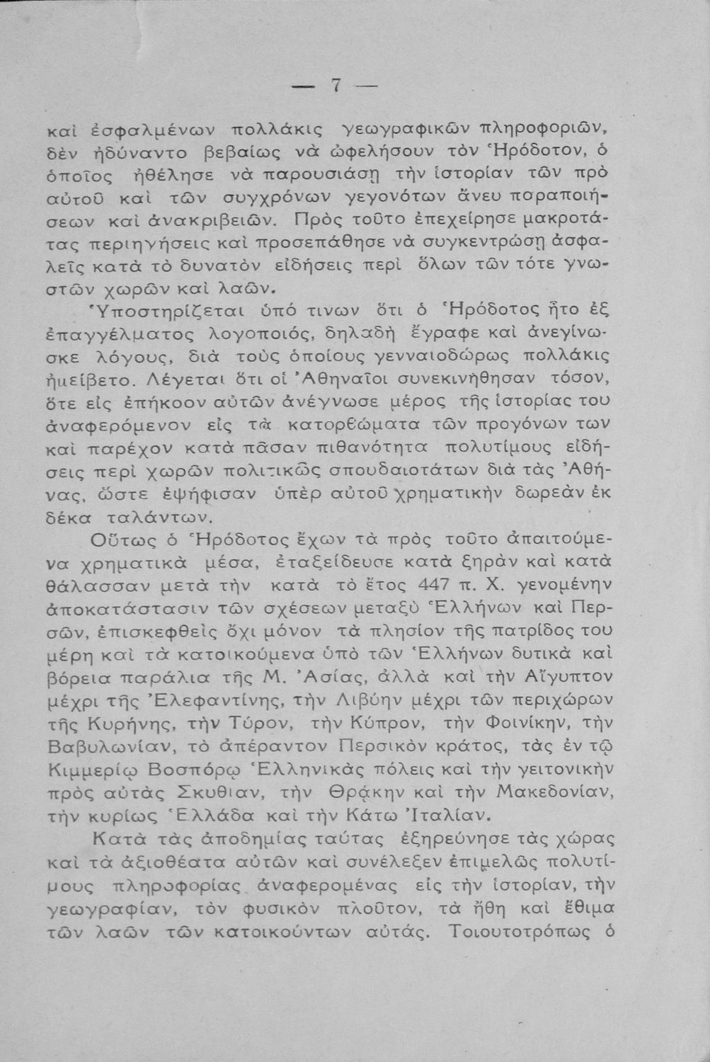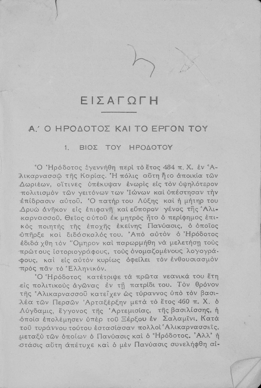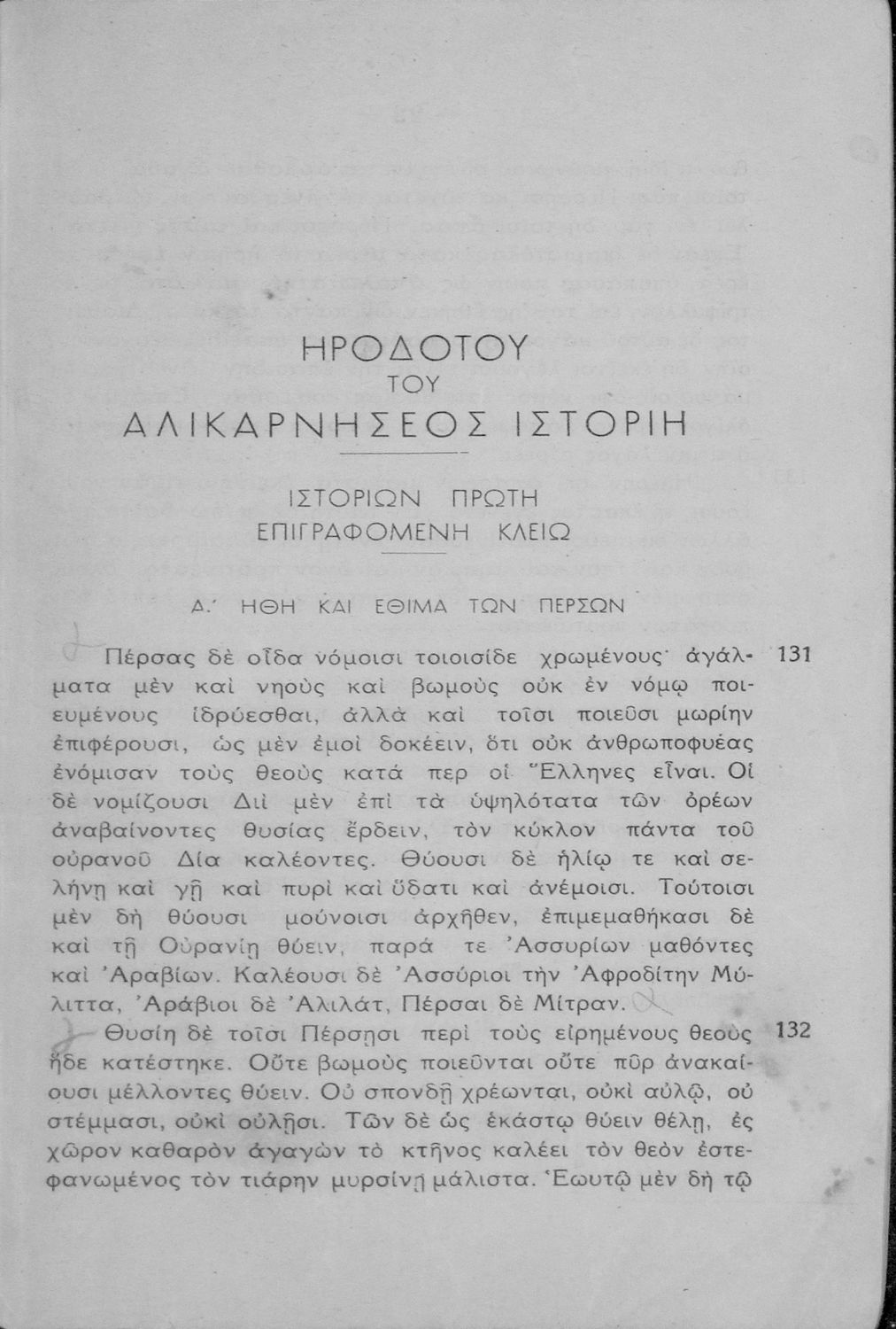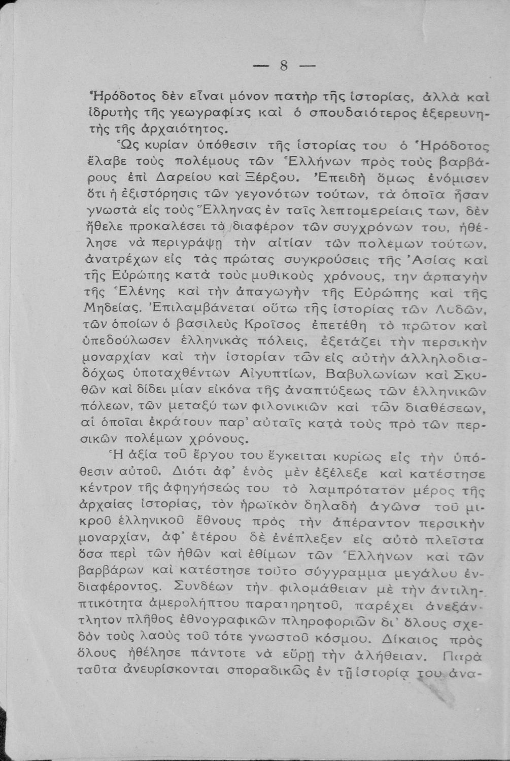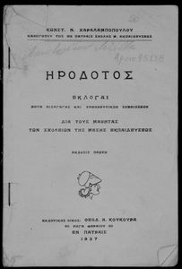 Μαθητικό βοήθημα Αρχαίων Ελληνικών Γυμνασίου που περιλαμβάνει αποσπάσματα από έργο του Ηροδότου, εισαγωγή στη ζωή και το έργο του και, ερμηνευτικές και πραγματολογικές σημειώσεις. Ο συγγραφέας ήταν Καθηγητής στη Σχολή Μ. Εκπαίδευσης στην Πάτρα.