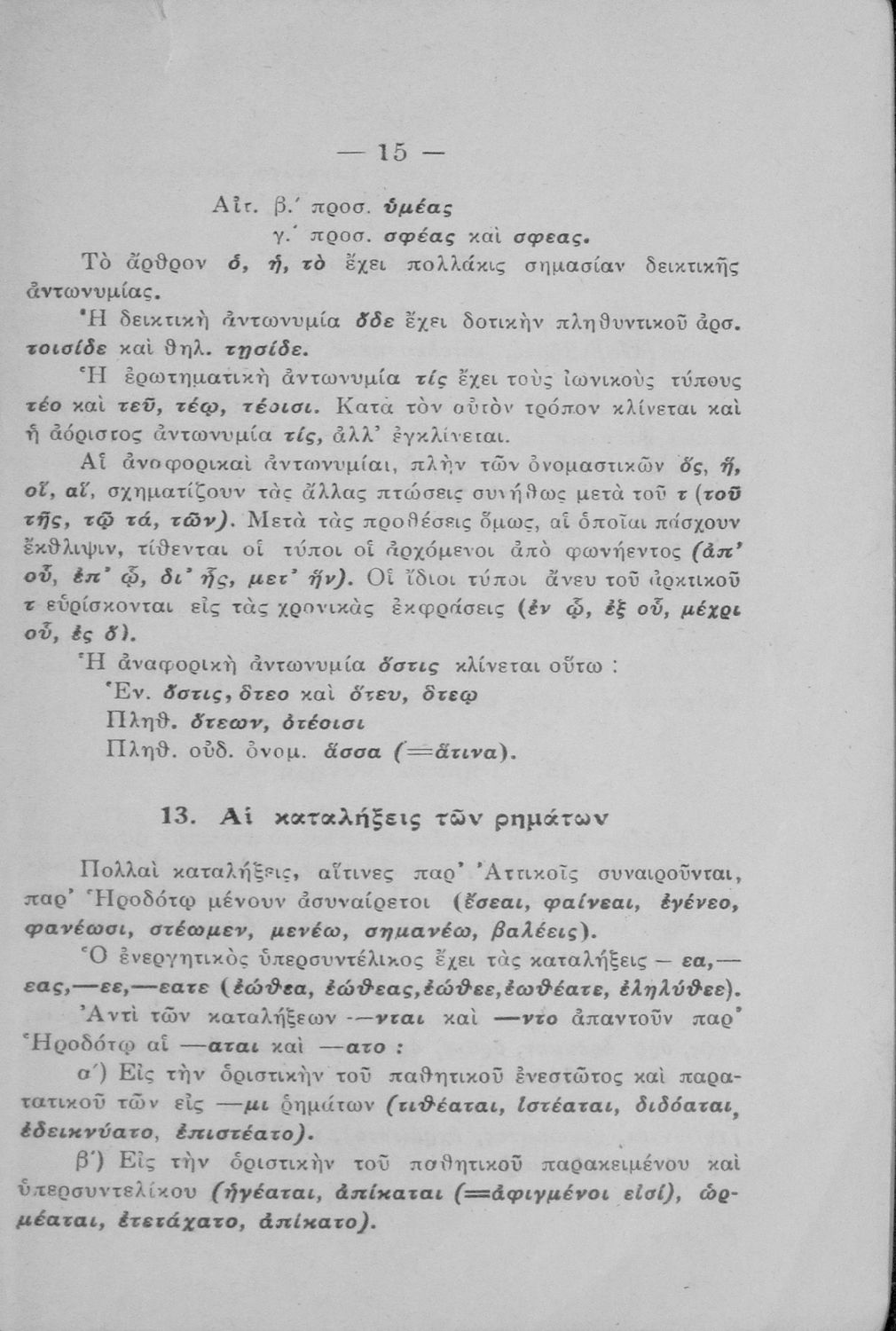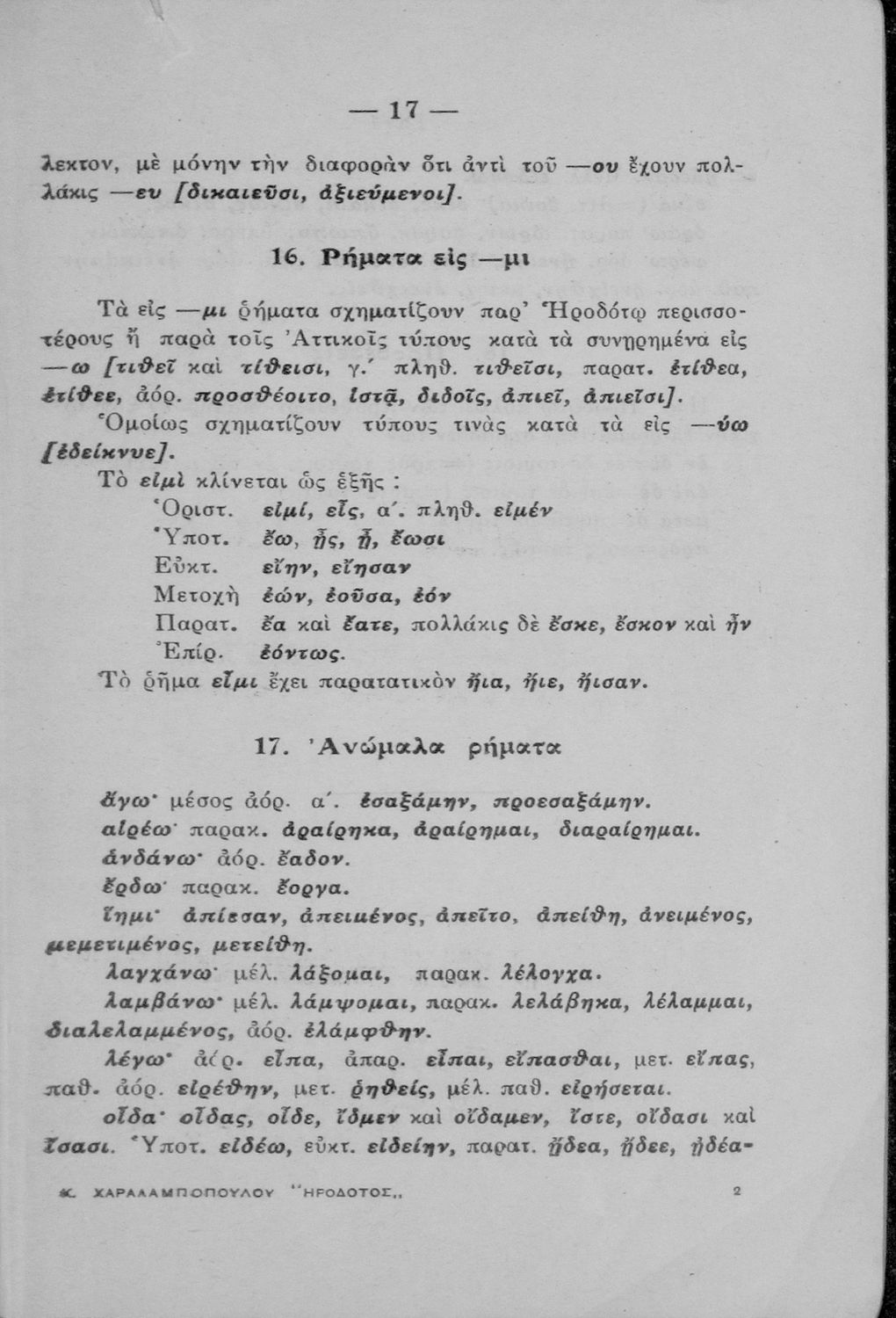 Βαθμίδα εκπαίδευσης: Δευτεροβάθμια Μάθημα: Αρχαία Ελληνικά Γλώσσα: Καθαρεύουσα Παρουσίαση περιεχομένου: Μαθητικό βοήθημα Αρχαίων Ελληνικών Γυμνασίου που περιλαμβάνει αποσπάσματα από έργο του Ηροδότου, εισαγωγή στη ζωή και το έργο του και, ερμηνευτικές και πραγματολογικές σημειώσεις. Ο συγγραφέας ήταν Καθηγητής στη Σχολή Μ. Εκπαίδευσης στην Πάτρα. |