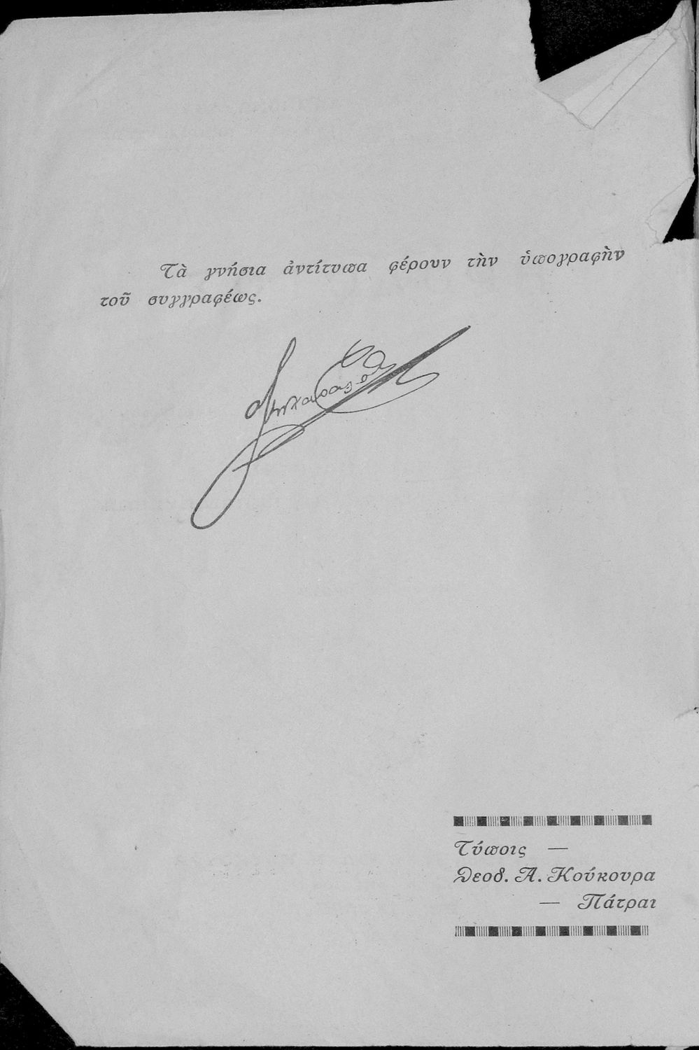 Εκδότης: Θεοδ. Α. Κούκουρας Έτος έκδοσης: 1937 Τόπος έκδοσης: Πάτρα Έκδοση: 1η |