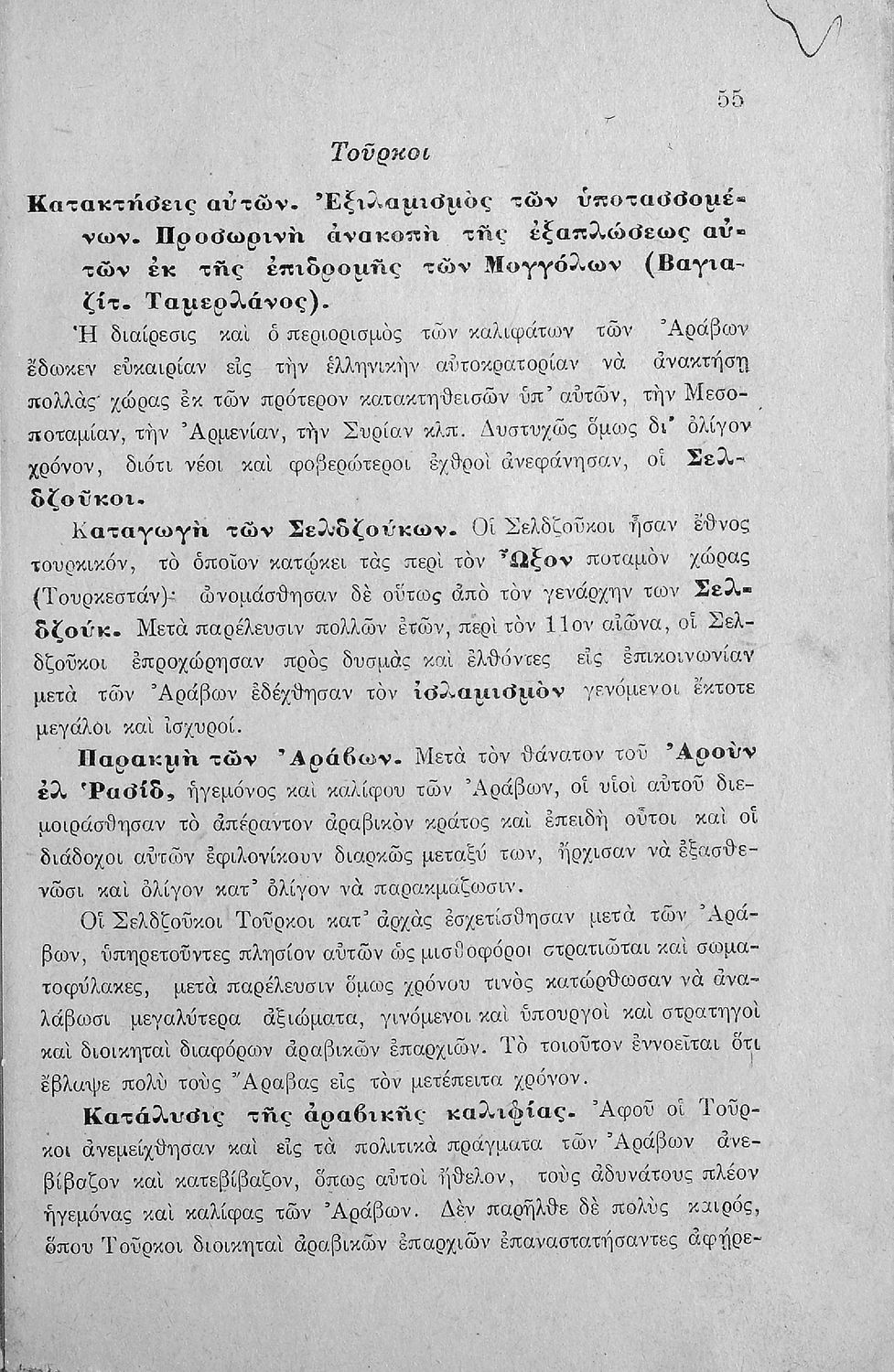 Σχολικό εγχειρίδιο Ιστορίας Δημοτικού που περιλαμβάνει βιογραφίες των Σουλτάνων της Οθωμανικής αυτοκρατορίας από την περίοδο του Οσμάν του νικητή (1299 μ. Χ.) μέχρι τα χρόνια του Σουλεϊμάν Α΄ (1520 μ. Χ.)