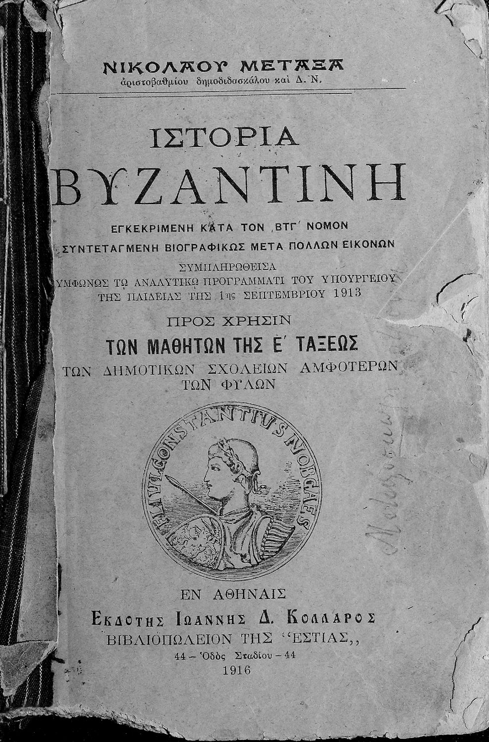 Ιστορία Βυζαντινή. Από του 395 μ. Χ. μέχρι της αλώσεως υπό των Τούρκων, προς χρήσιν των μαθητών της Ε΄ τάξεως των Δημοτικών σχολείων αμφότερων των φύλων