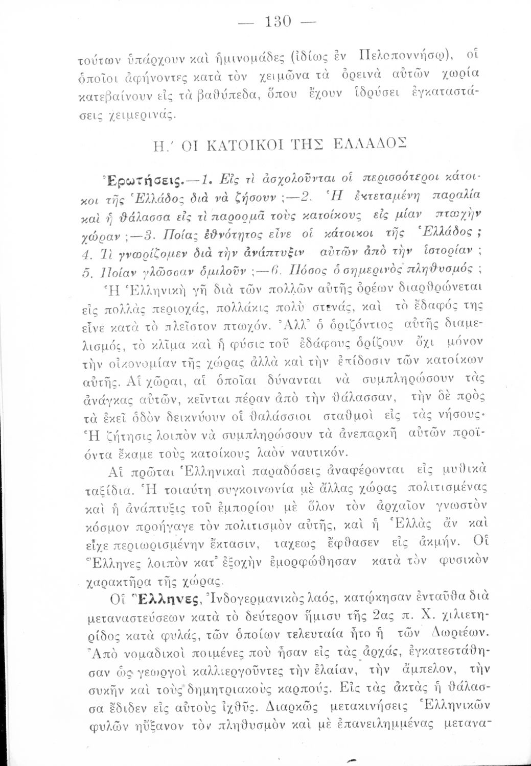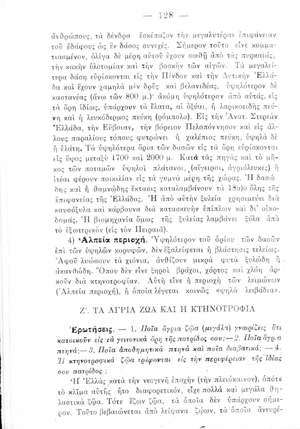 Σχολικό εγχειρίδιο Γεωγραφίας Α΄ Γυμνασίου που εξετάζει την Ελλάδα από γεωφυσική, πολιτική, οικονομική και πολιτισμική άποψη. Περιέχει και ειδική αναφορά στις "ελληνικές νήσους υπό ξένη κατοχή" στις οποίες περιλαμβάνονται τα Δωδεκάνησα και η Κύπρος.