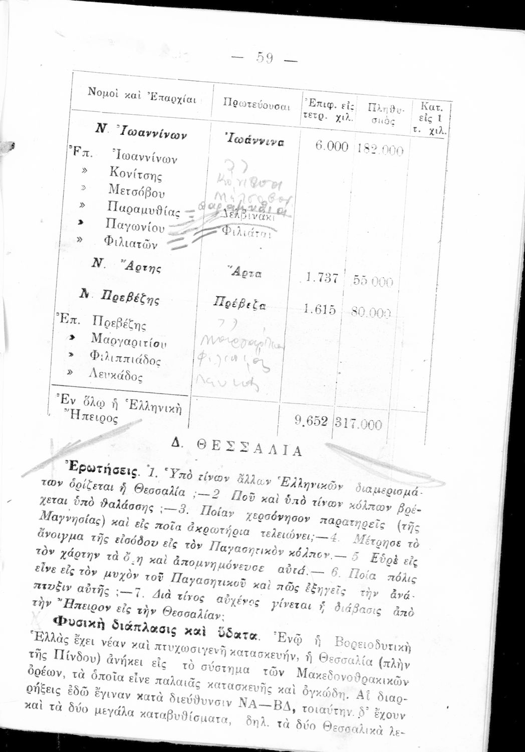 Σχολικό εγχειρίδιο Γεωγραφίας Α' Γυμνασίου που εξετάζει την Ελλάδα ανά διαμέρισμα και νομό από γεωφυσική, οικονομική και πολιτική άποψη.