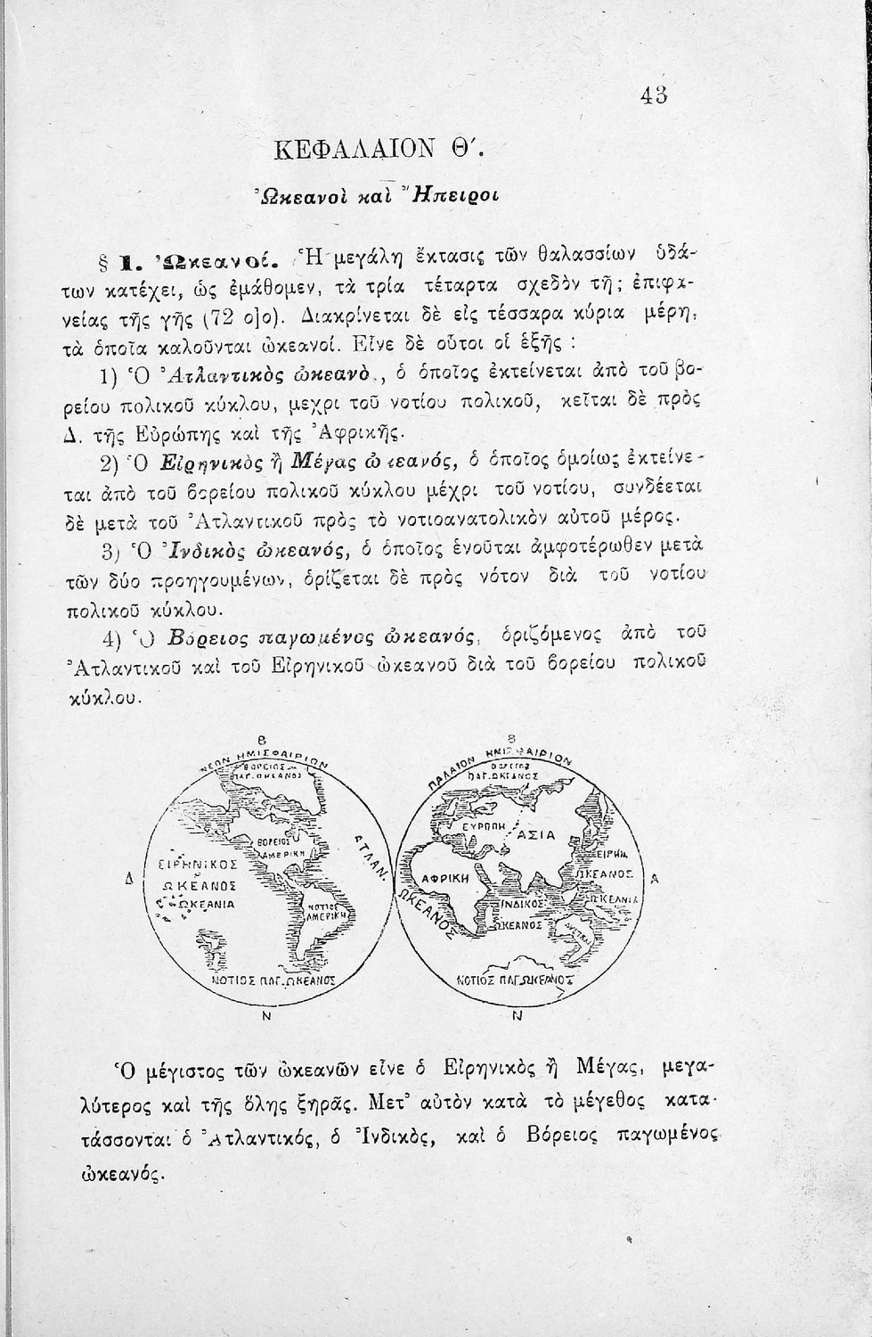 Σχολικό εγχειρίδιο Γεωγραφίας Α' Ελληνικού Σχολείου που περιλαμβάνει στοιχεία ανθρωπογεωγραφίας, μαθηματικής, και φυσικής γεωγραφίας και εξετάζει ενδεικτικά κράτη από τις πέντε ηπείρους από πολιτική, γεωφυσική και οικονομική άποψη.