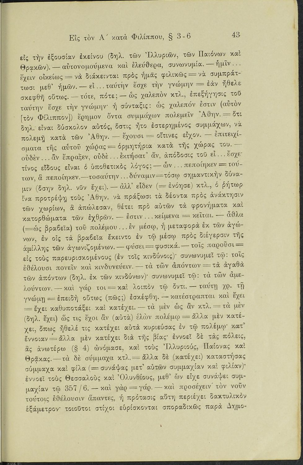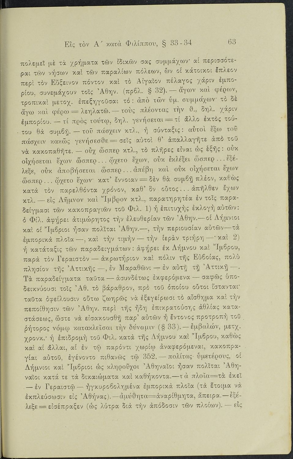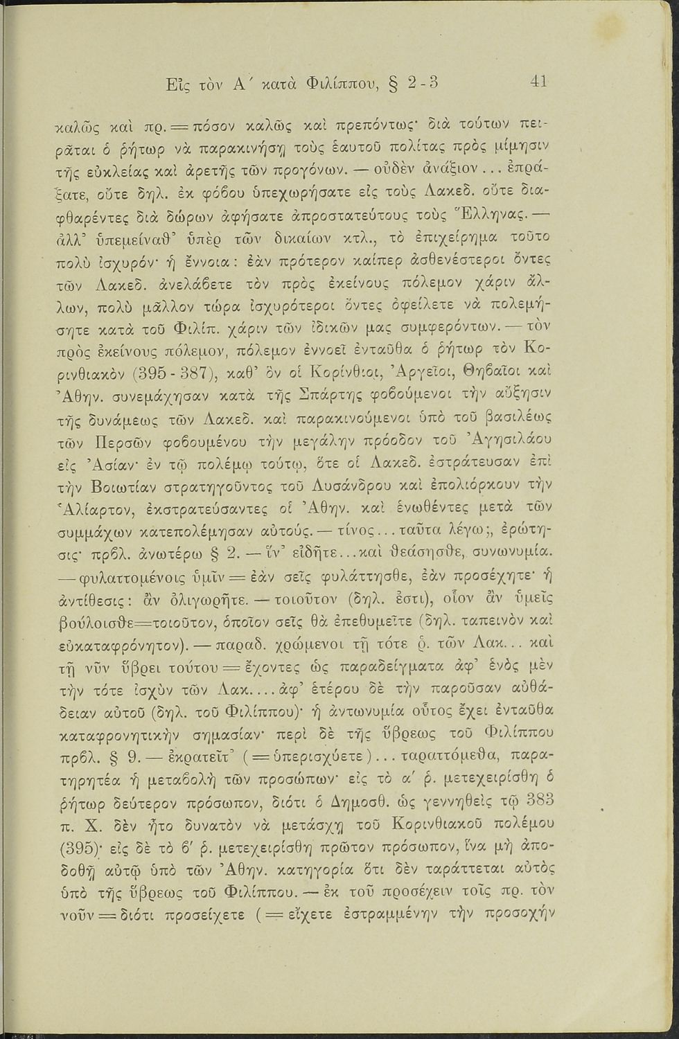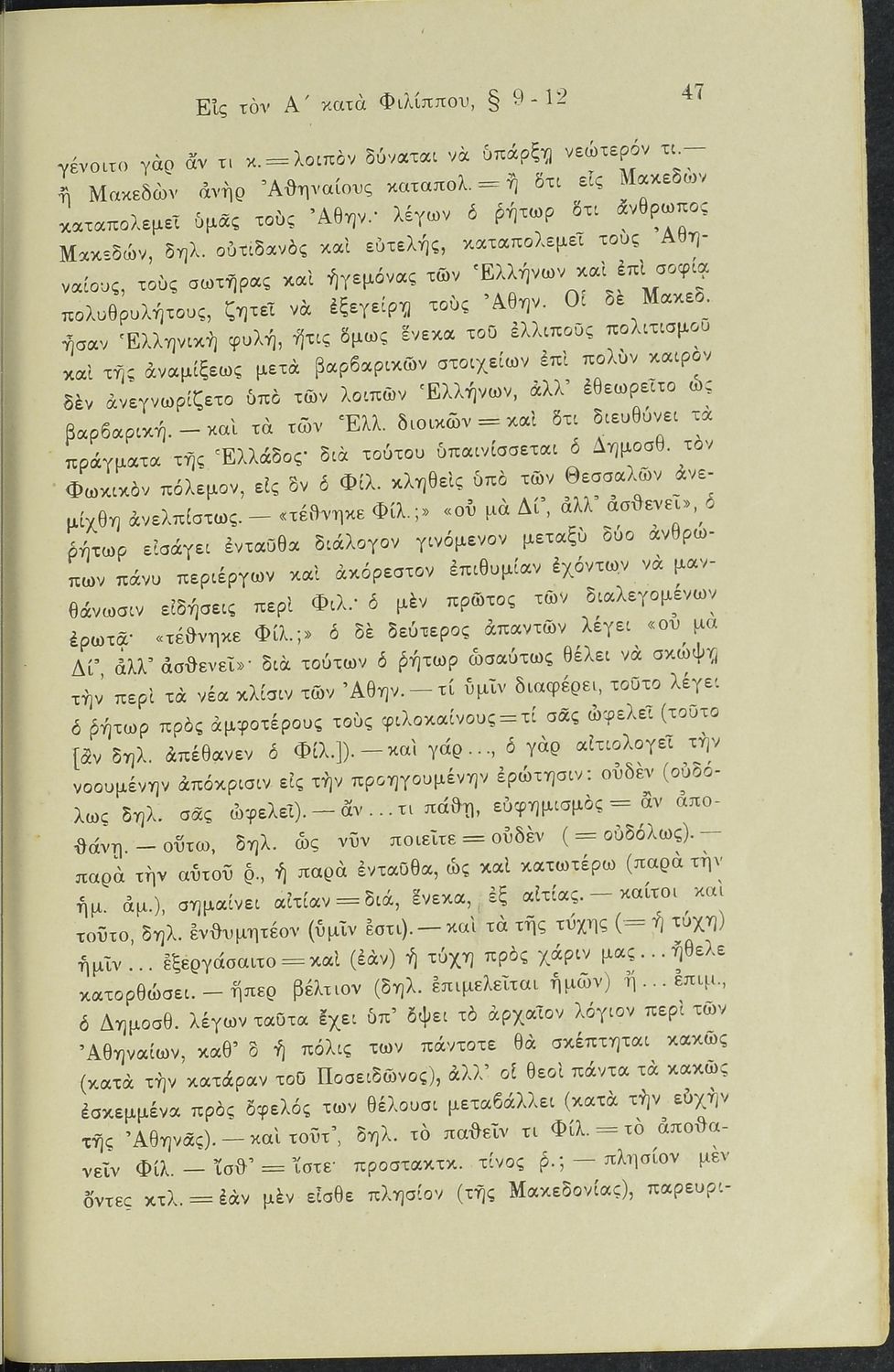 Σχολικό εγχειρίδιο Αρχαίων Ελληνικών Γυμνασίου που περιλαμβάνει το Λόγο του Δημοσθένη Α΄ κατά Φιλίππου, ερμηνευτικά σχόλια και χάρτη.