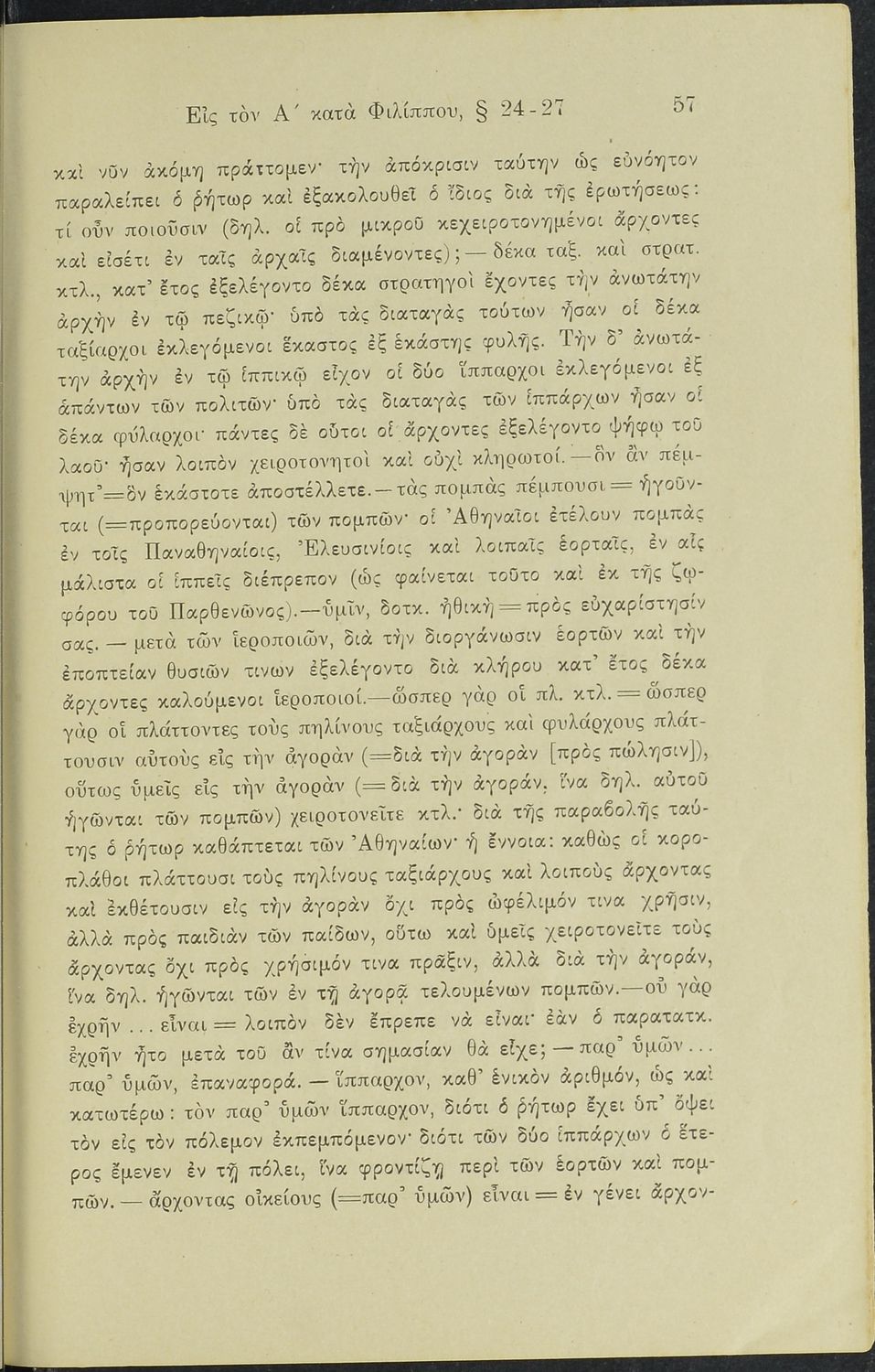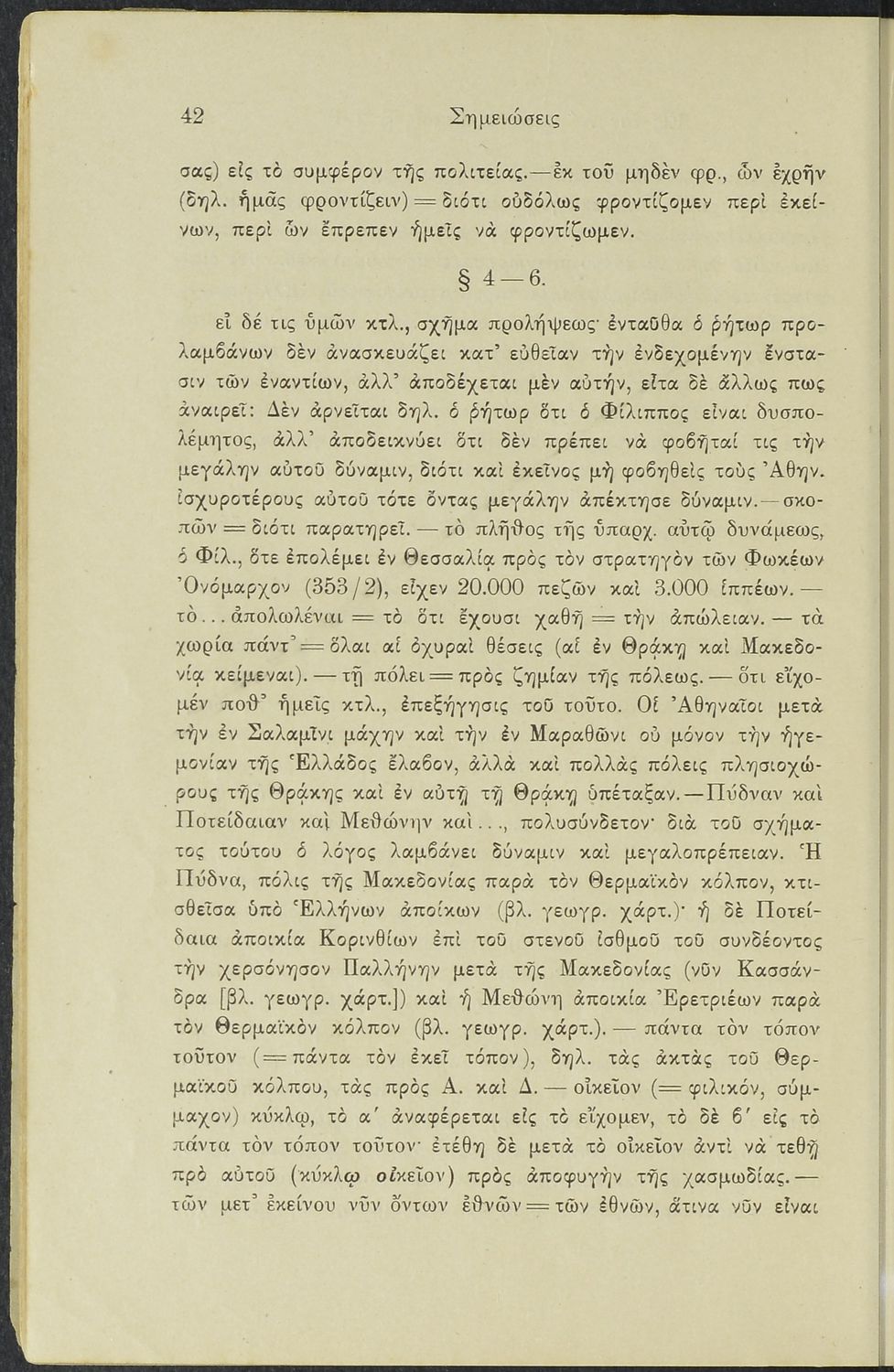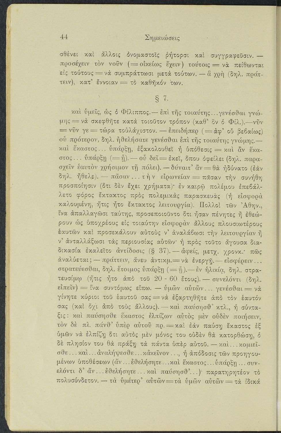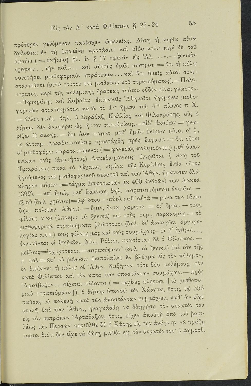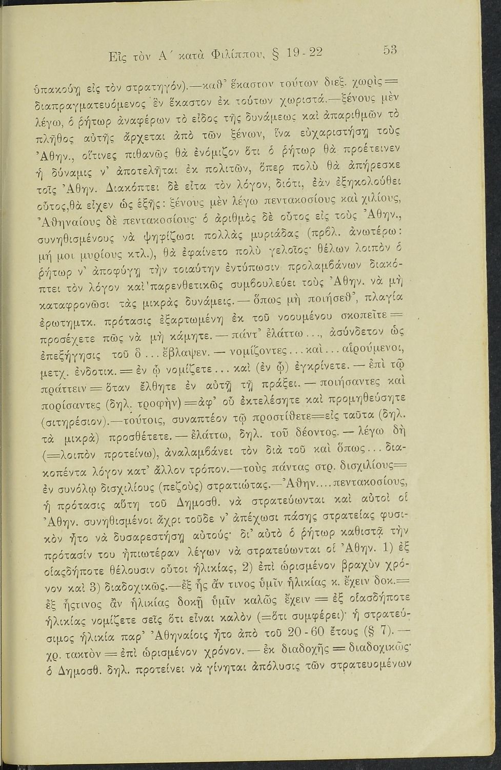 Σχολικό εγχειρίδιο Αρχαίων Ελληνικών Γυμνασίου που περιλαμβάνει το Λόγο του Δημοσθένη Α΄ κατά Φιλίππου, ερμηνευτικά σχόλια και χάρτη.