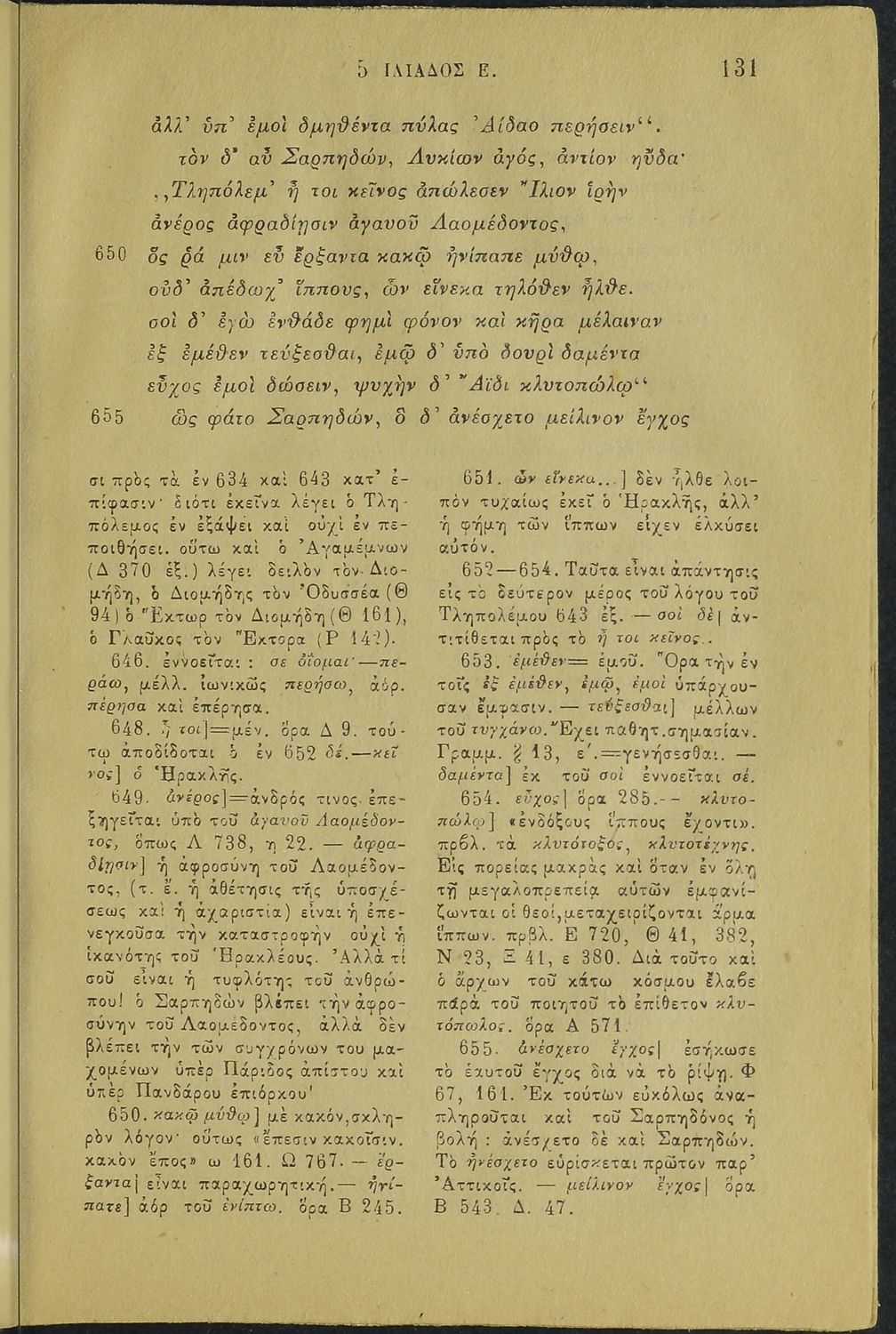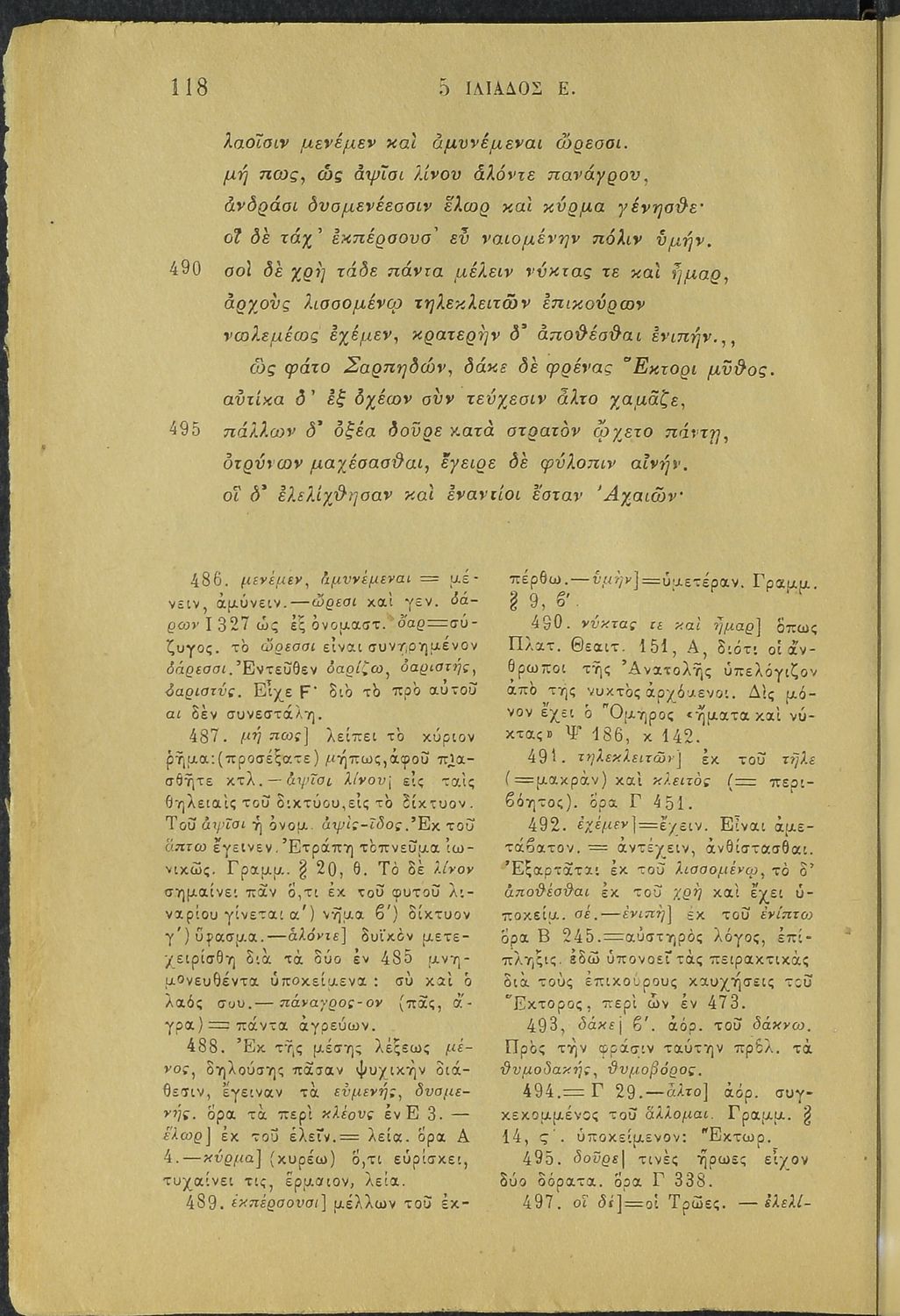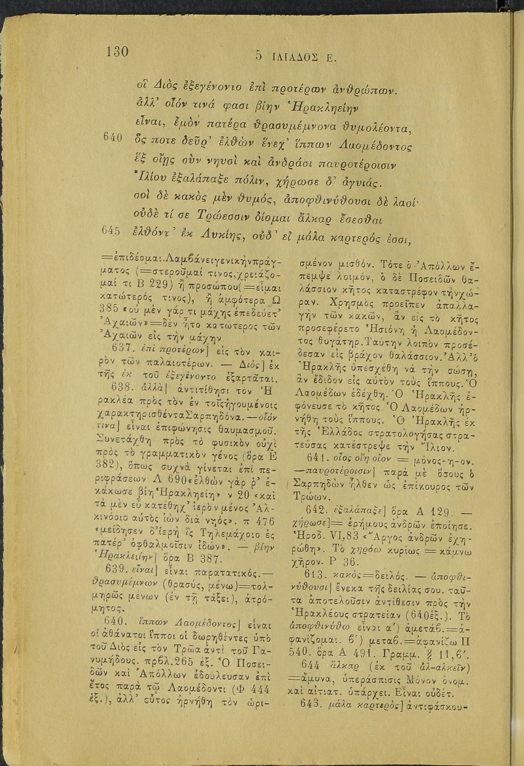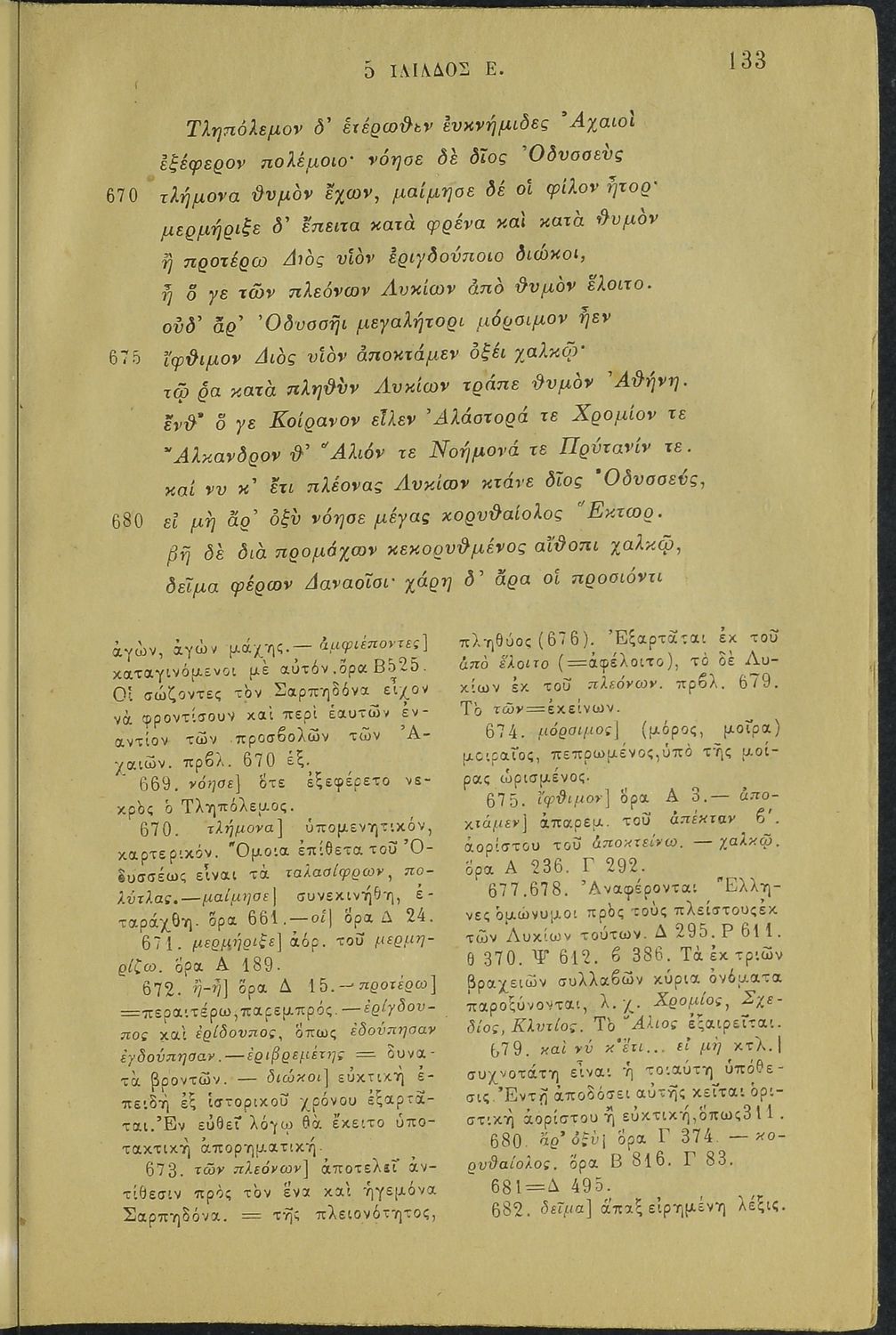 Μαθητικό βοήθημα για το μάθημα των Αρχαίων Ελληνικών στο Γυμνάσιο. Περιέχει τη ραψωδία Ε της Ιλιάδας καθώς και πραγματολογικά σχόλια του συγγραφέα. Ο συγγραφέας ήταν πρώην Γυμνασιάρχης.