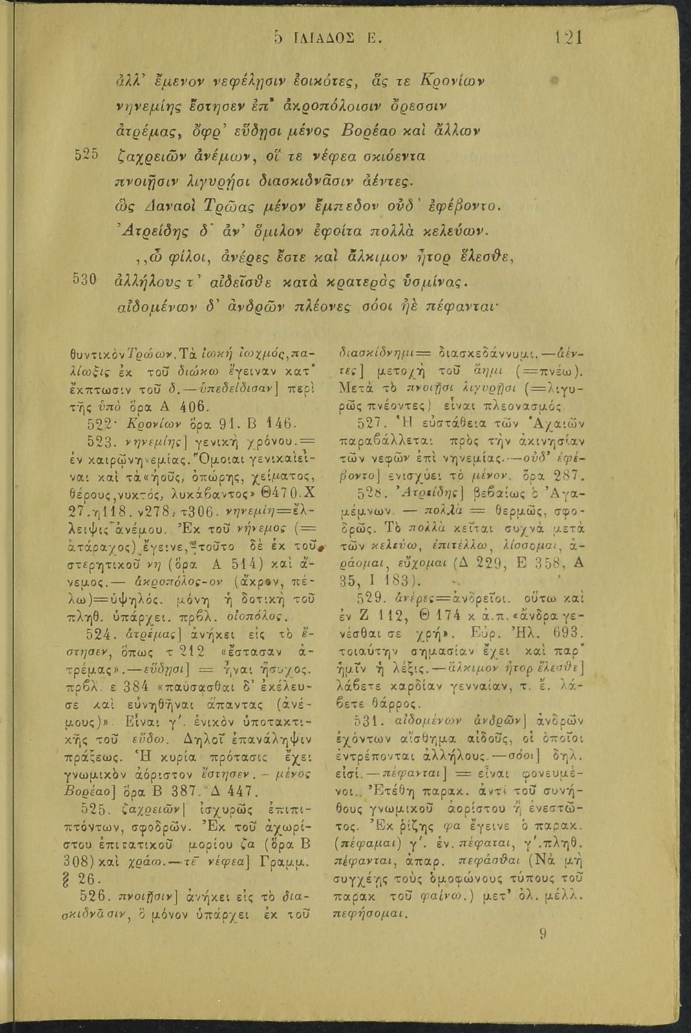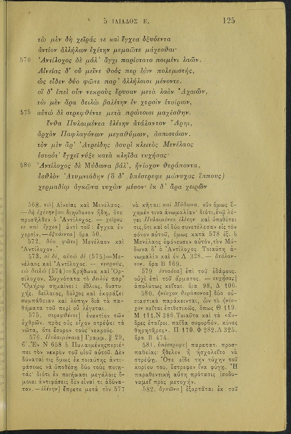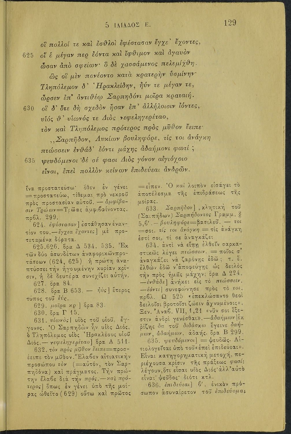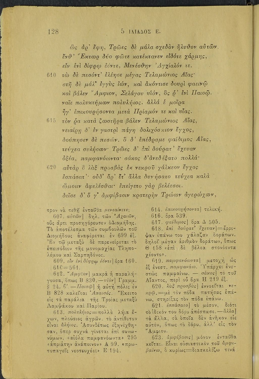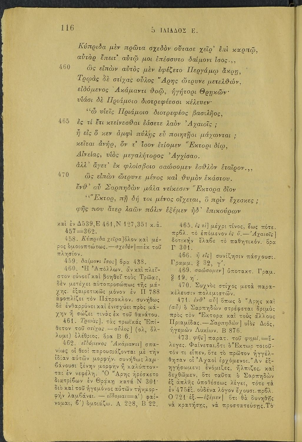 Μαθητικό βοήθημα για το μάθημα των Αρχαίων Ελληνικών στο Γυμνάσιο. Περιέχει τη ραψωδία Ε της Ιλιάδας καθώς και πραγματολογικά σχόλια του συγγραφέα. Ο συγγραφέας ήταν πρώην Γυμνασιάρχης.