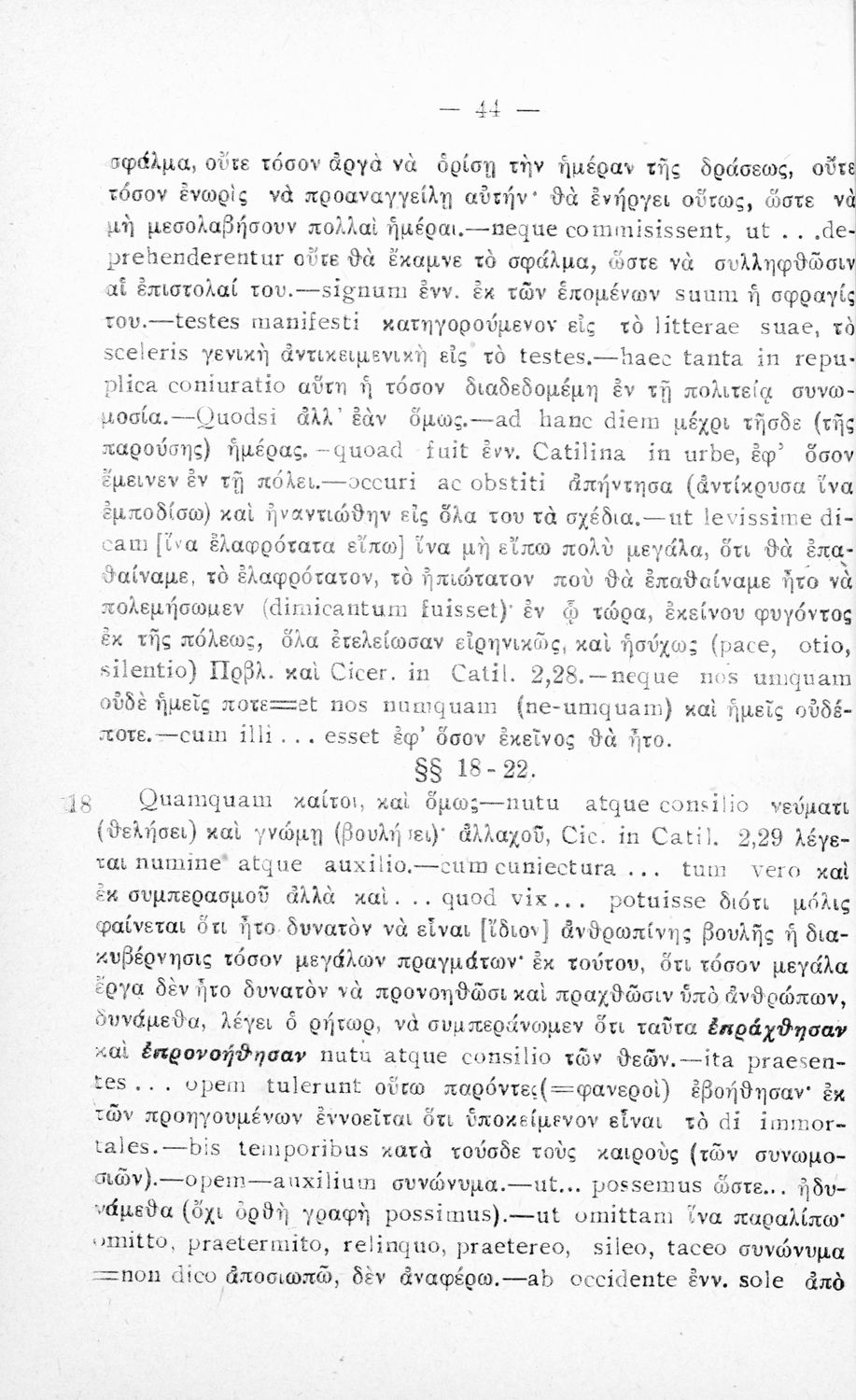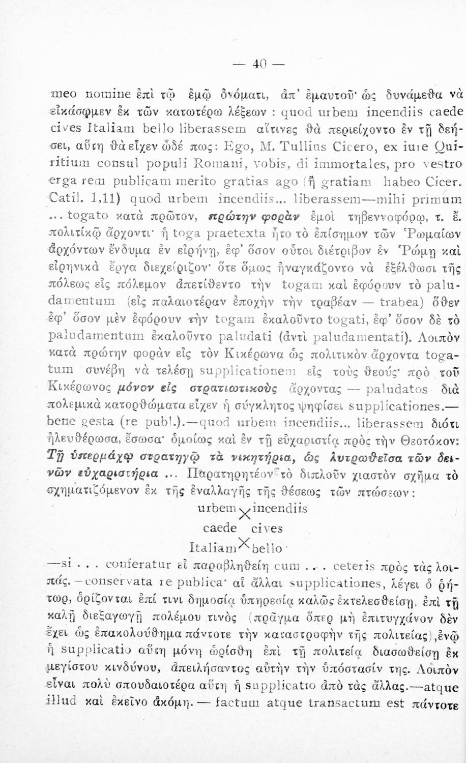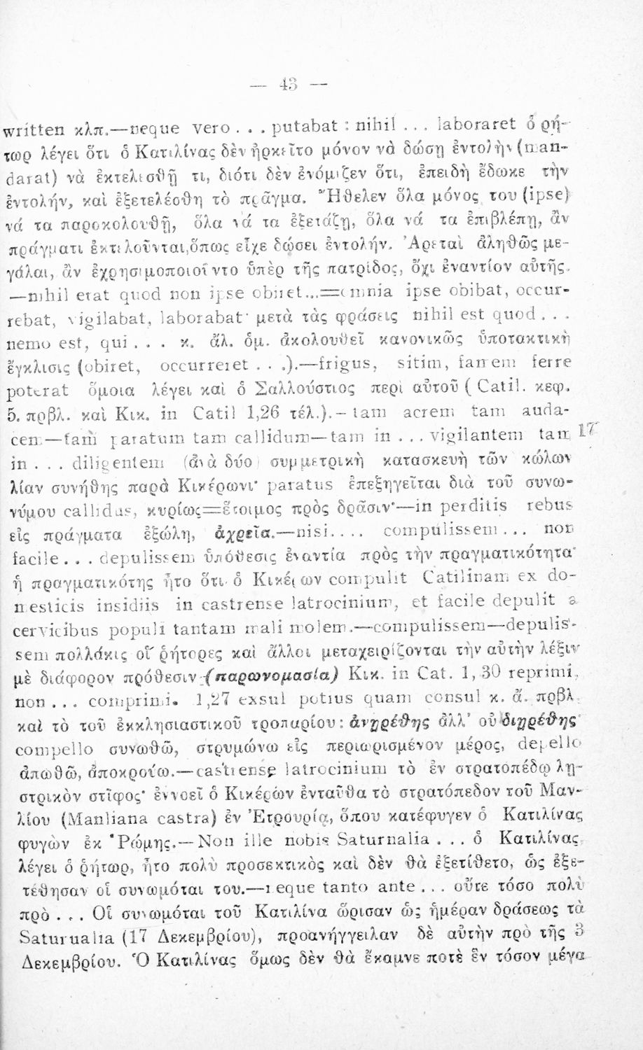 Σχολικό εγχειρίδιο Λατινικών Γ΄ Γυμνασίου που περιλαμβάνει την εισαγωγή στο έργο και τη ζωή του Κικέρωνα, το λατινικό κείμενο του Τρίτου Λόγου κατά Κατιλίνα και ερμηνευτικά, γραμματικά και πραγματολογικά σχόλια.