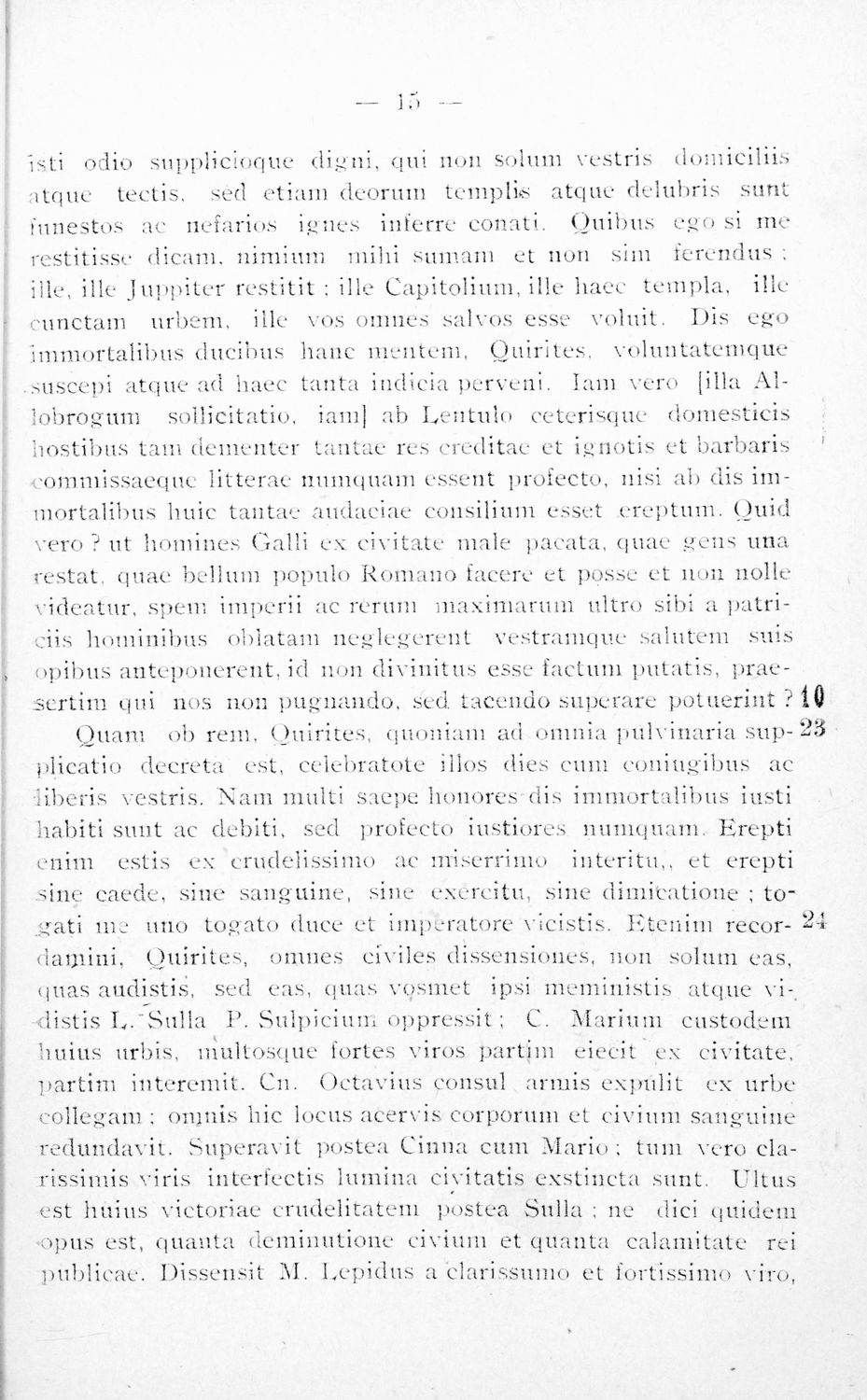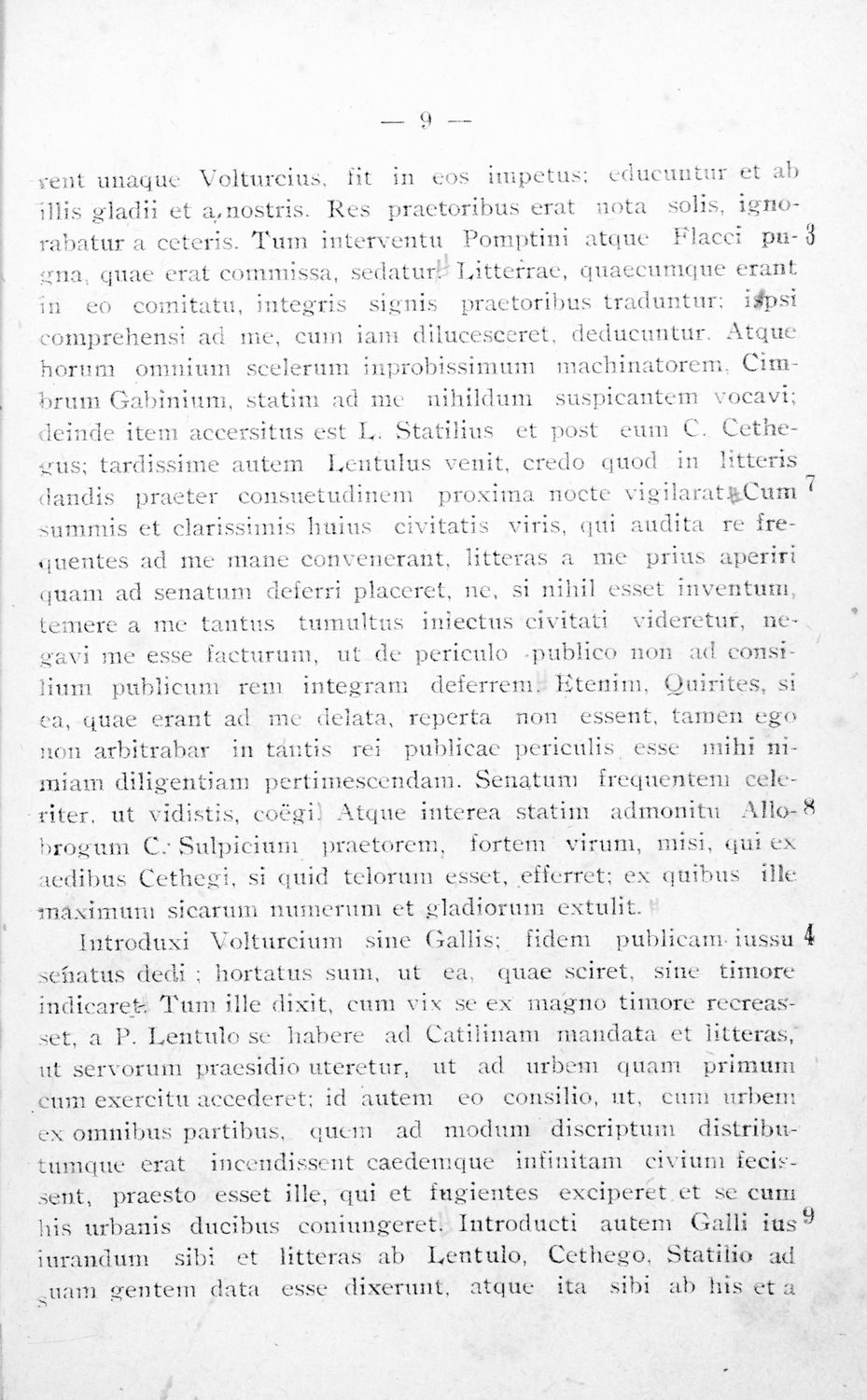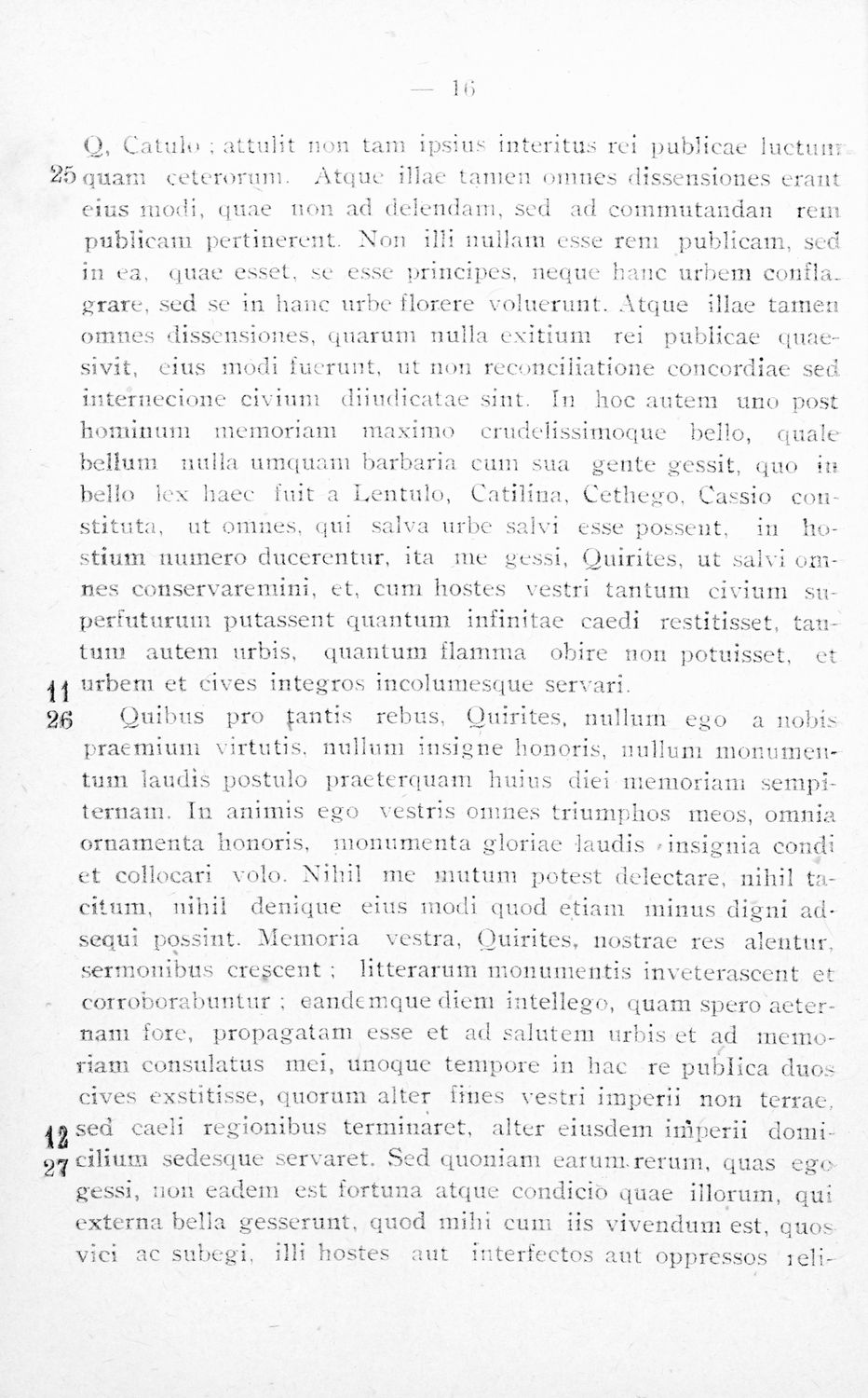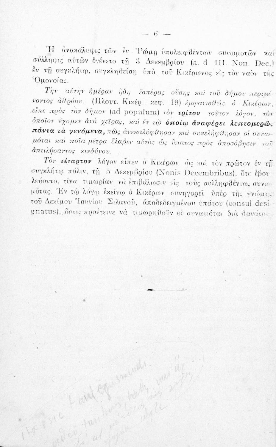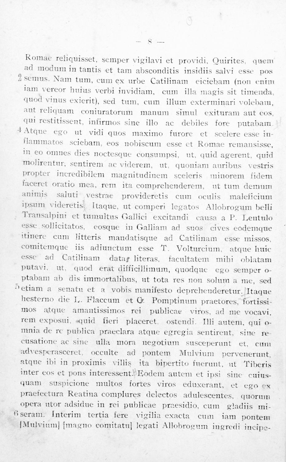 Σχολικό εγχειρίδιο Λατινικών Γ΄ Γυμνασίου που περιλαμβάνει την εισαγωγή στο έργο και τη ζωή του Κικέρωνα, το λατινικό κείμενο του Τρίτου Λόγου κατά Κατιλίνα και ερμηνευτικά, γραμματικά και πραγματολογικά σχόλια.