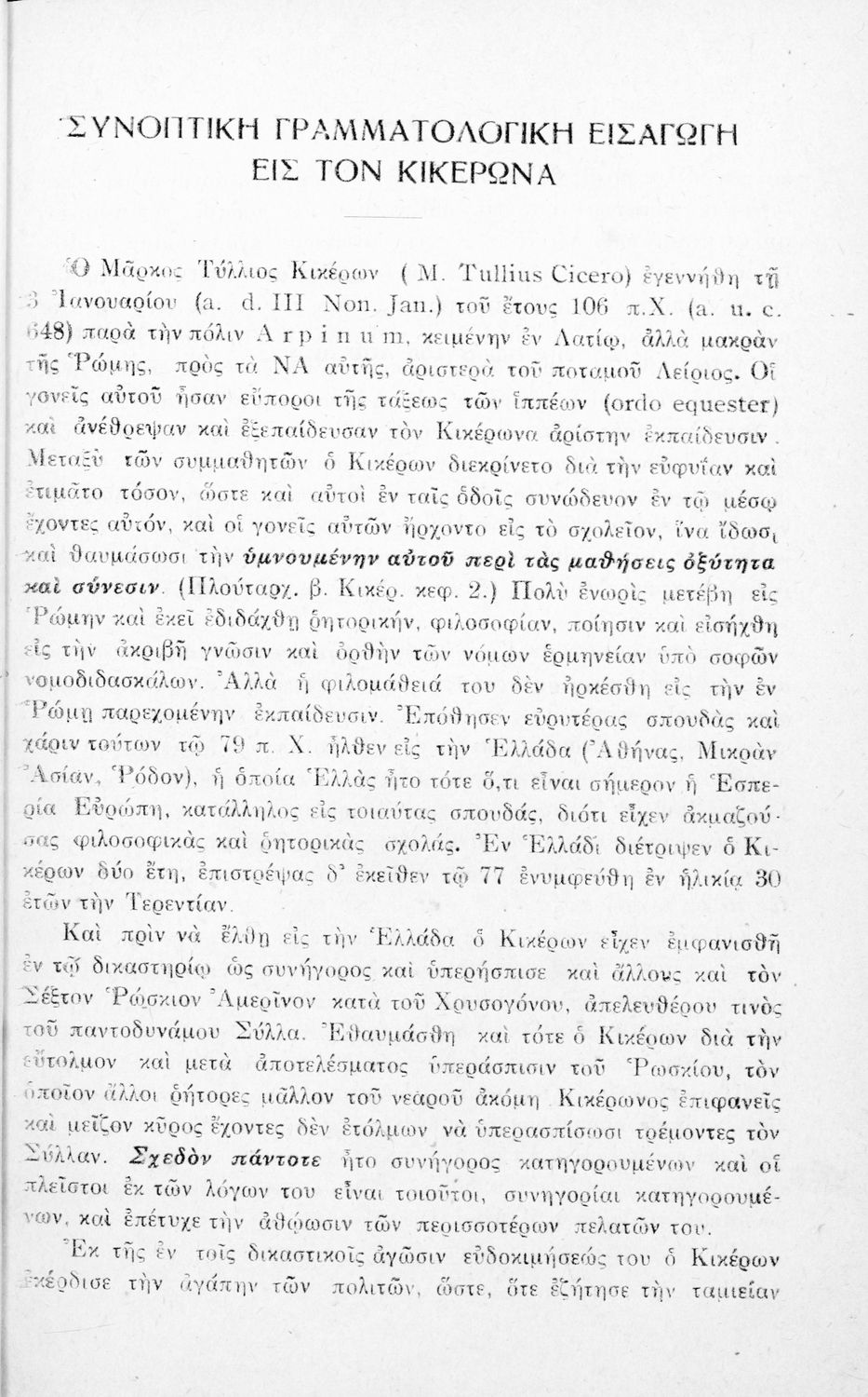 LDR 01457 2200217 4500 035 ## _a01-45150a 040 ## _aΙνστιτούτο Εκπαιδευτικής Πολιτικής 041 ## _ael 100 ## _aΜάρκος Τύλλιος Κικέρωνας (M. Tullius Cicero) _aΘεοφάνης Α. Κακριδής (σχόλια _aσημειώσεις) 110 ## _a45150a 245 0# _aΜάρκου Τυλλίου Κικέρωνος ο Τρίτος κατά Κατιλίνα Λόγος προς χρήσιν των μαθητών της Γ΄ τάξεως του Γυμνασίου 250 ## _a6η Έκδοση 260 ## _aΑθήνα _bΙωάννης Δ. Κολλάρος _c1928 300 ## _a56 _c22 520 ## _aΣχολικό εγχειρίδιο Λατινικών Γ΄ Γυμνασίου που περιλαμβάνει την εισαγωγή στο έργο και τη ζωή του Κικέρωνα, το λατινικό κείμενο του Τρίτου Λόγου κατά Κατιλίνα και ερμηνευτικά, γραμματικά και πραγματολογικά σχόλια. 521 ## _aΓ' Γυμνασίου 522 ## _aΕλλάδα 546 ## _aΚαθαρεύουσα 563 ## _aΣκληρό Εξώφυλλο 583 ## _a20986/11-7-1928 _c1928 650 #4 _aΓραμματική _aΕρμηνεία _aΚαίσαρας _aΚαπιτώλιο _aΚείμενα _aΚλίσεις _aΟυσιαστικά _aΡώμη _aΣυντακτικό