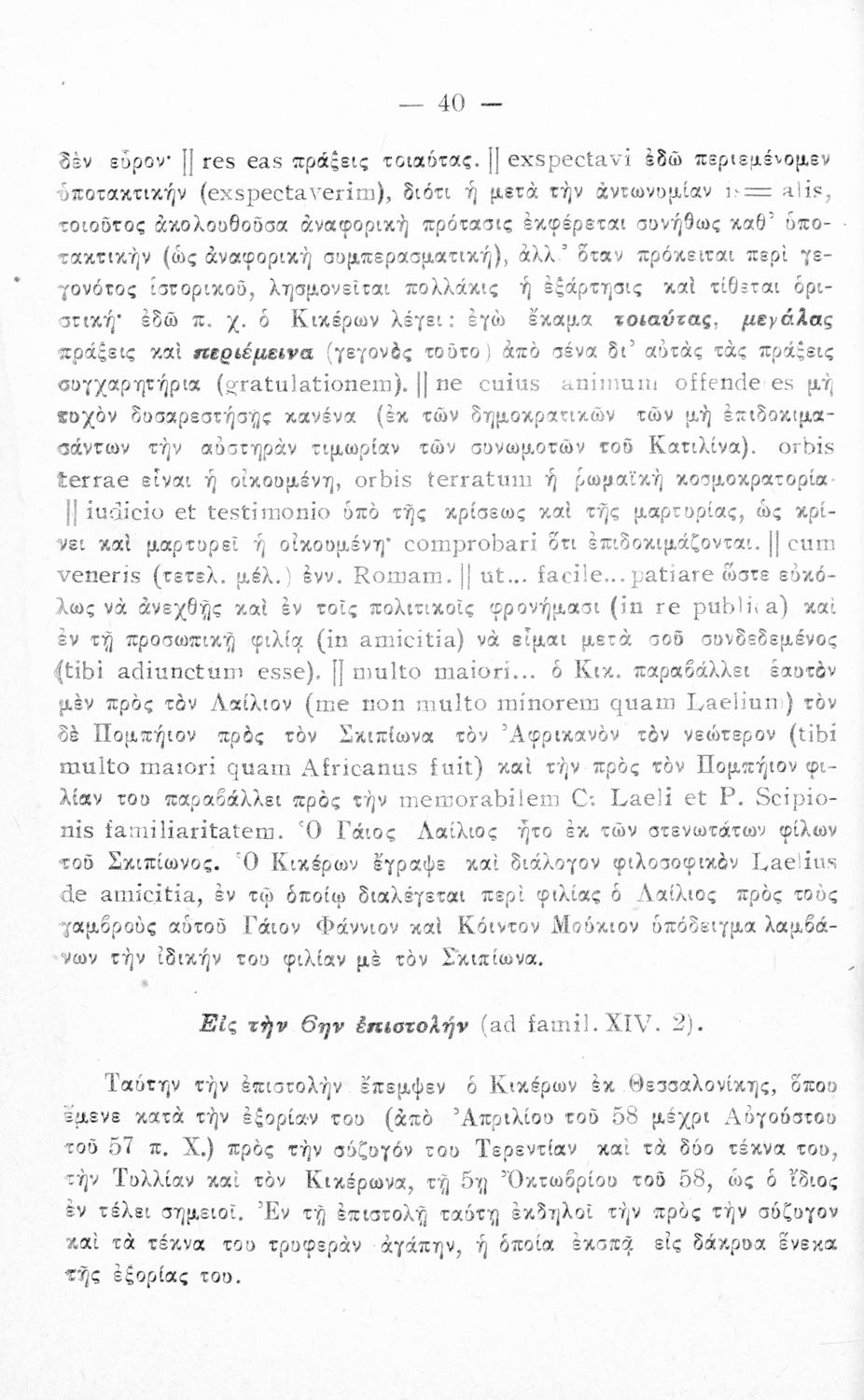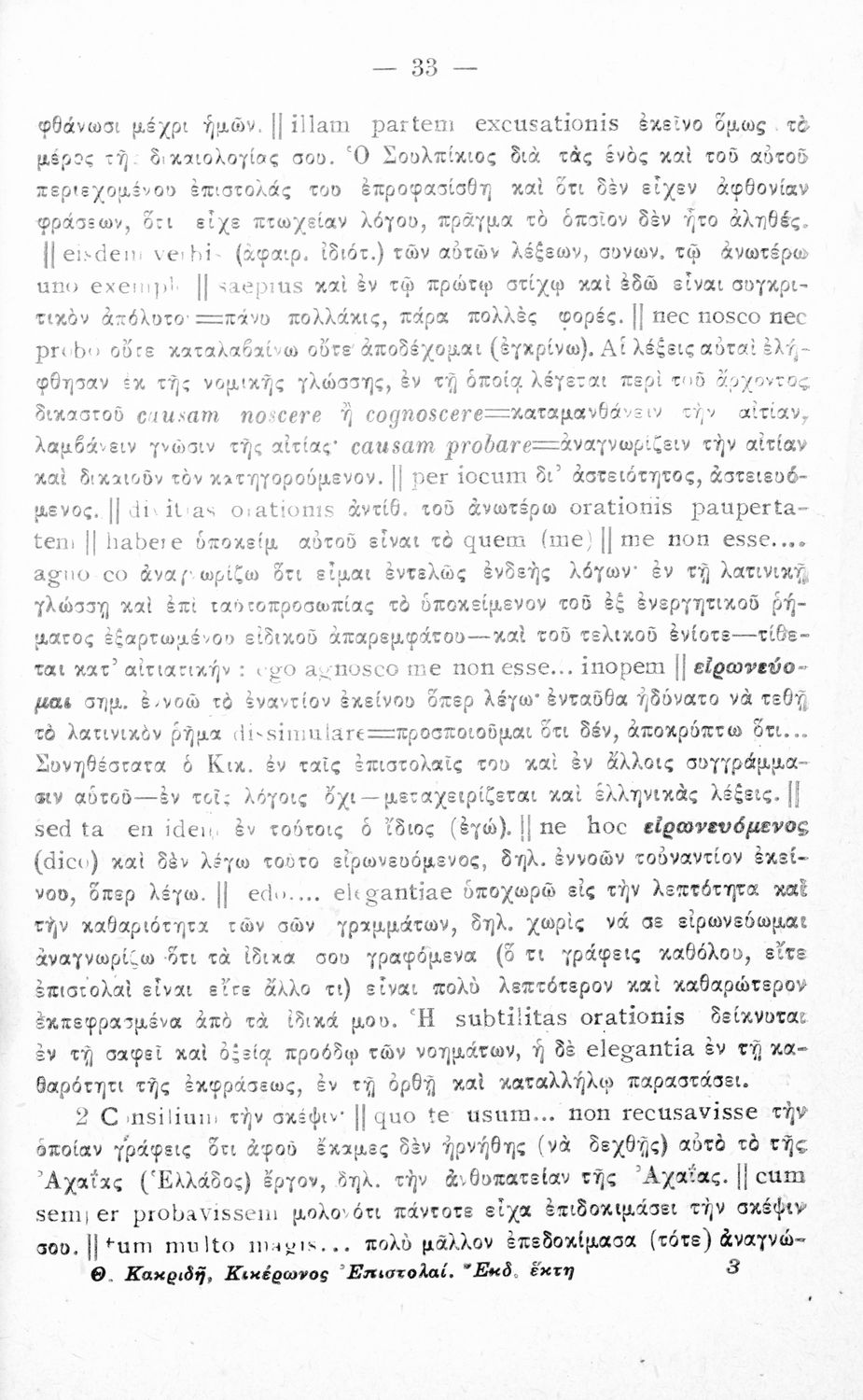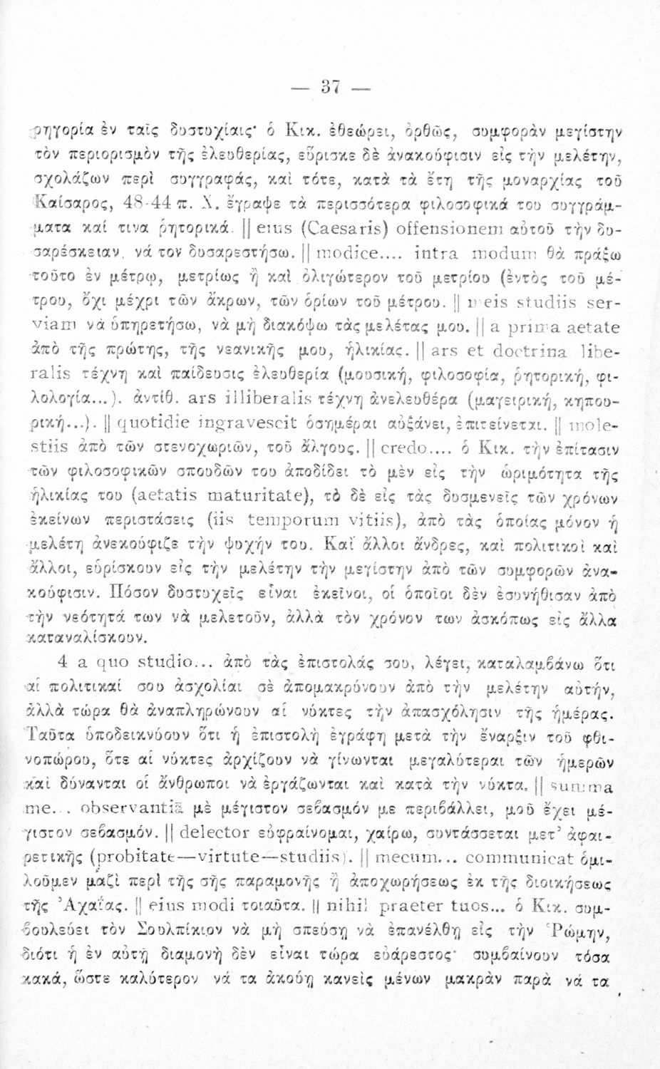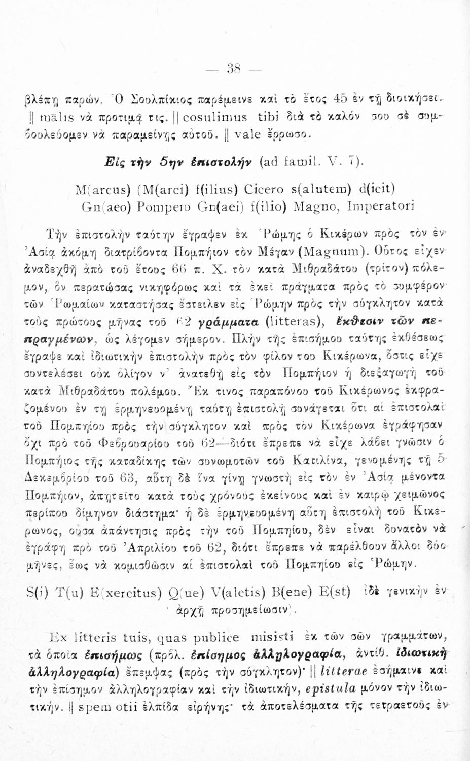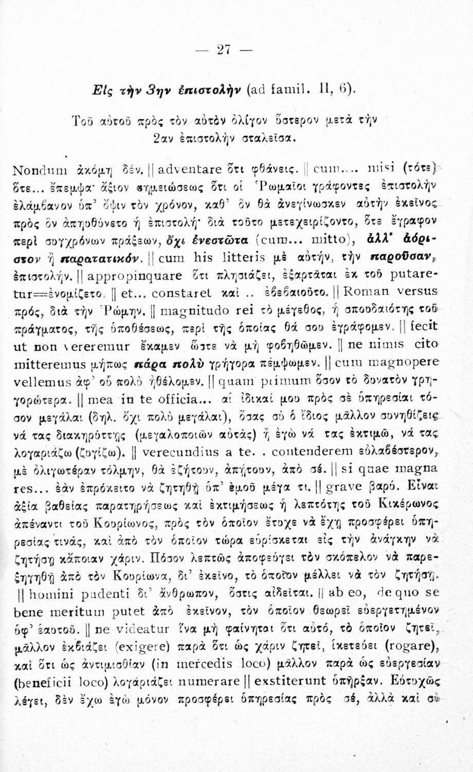 520 ## _aΣχολικό εγχειρίδιο Λατινικών για τη Γ΄ Γυμνασίου που περιέχει κείμενο, εισαγωγή στις επιστολές και σημειώσεις επί των επιστολών. Ο επιμελητής ήταν τακτικός καθηγητής της Λατινικής Φιλολογίας.