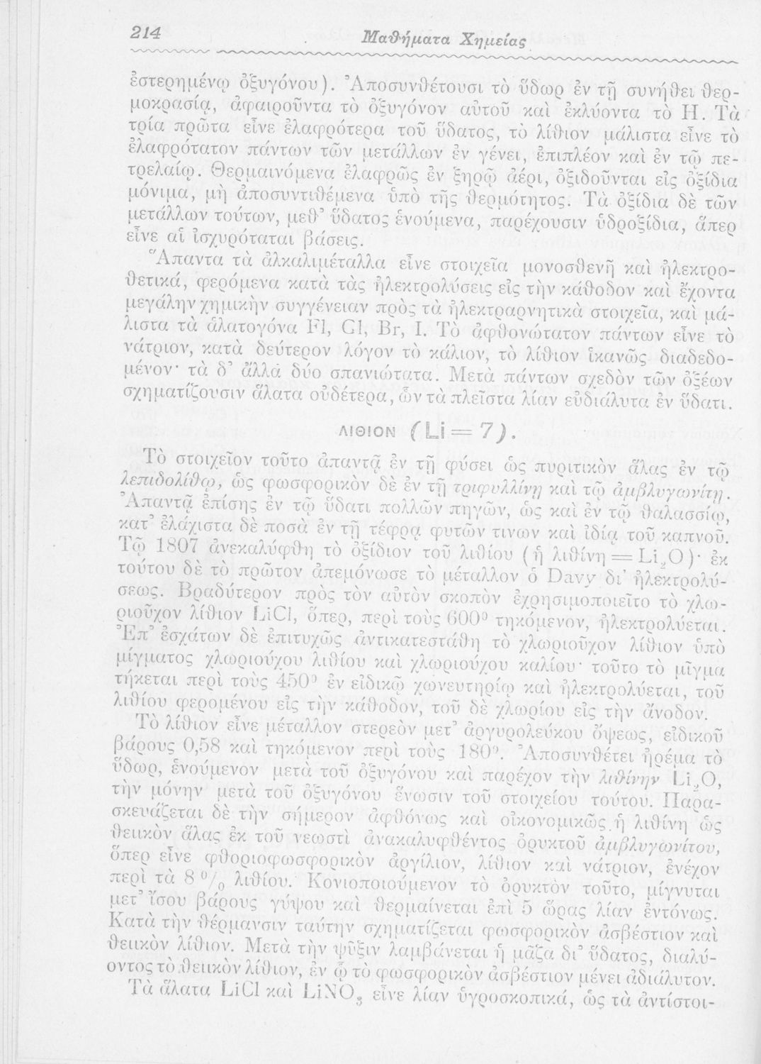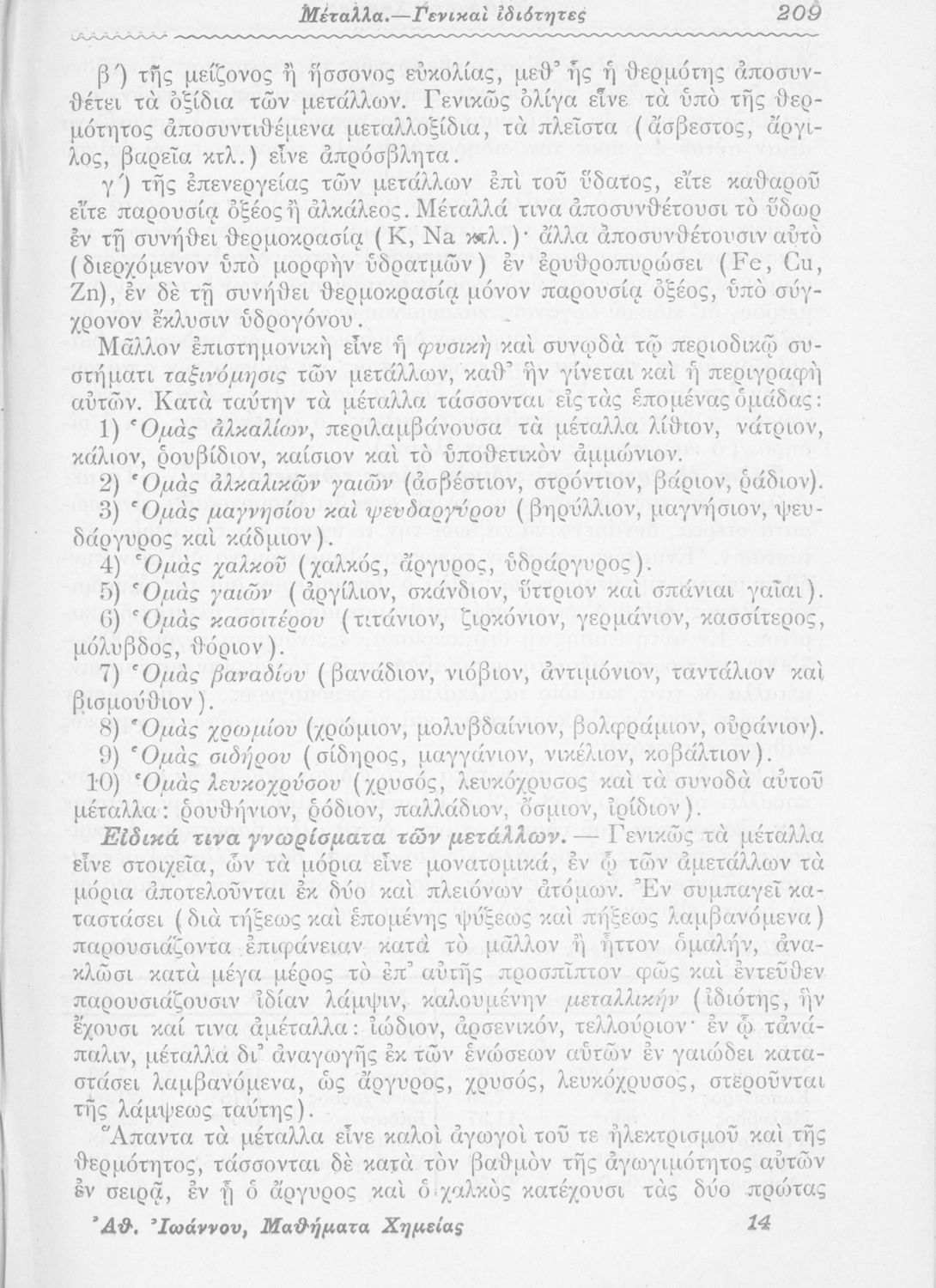 Μάθημα: Χημεία Γλώσσα: Καθαρεύουσα Παρουσίαση περιεχομένου: Παιδαγωγικό / Μαθητικό βοήθημα Χημείας που περιλαμβάνει στοιχεία Ανόργανης (μεταλλοειδή, μέταλλα) και Οργανικής Χημεία (ενώσεις άνθρακα, υδατάνθρακες κλπ.) |