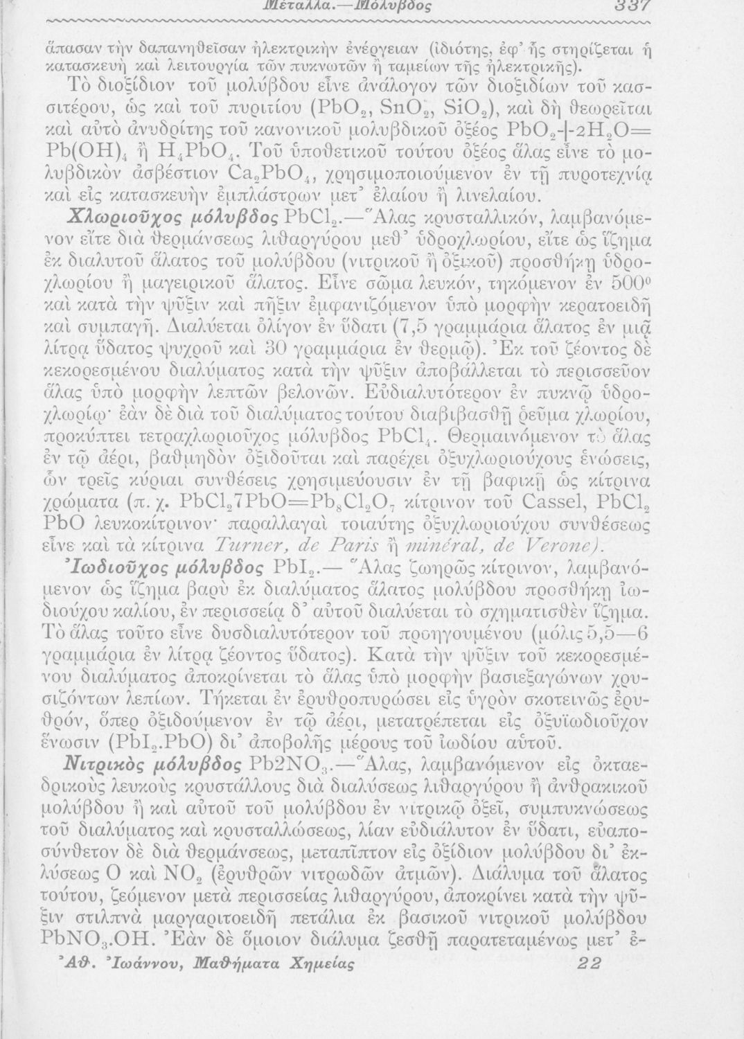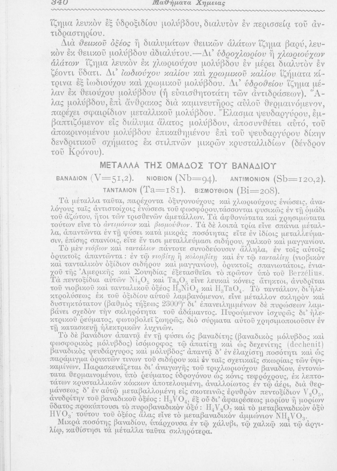 Μάθημα: Χημεία Γλώσσα: Καθαρεύουσα Παρουσίαση περιεχομένου: Παιδαγωγικό / Μαθητικό βοήθημα Χημείας που περιλαμβάνει στοιχεία Ανόργανης (μεταλλοειδή, μέταλλα) και Οργανικής Χημεία (ενώσεις άνθρακα, υδατάνθρακες κλπ.) |