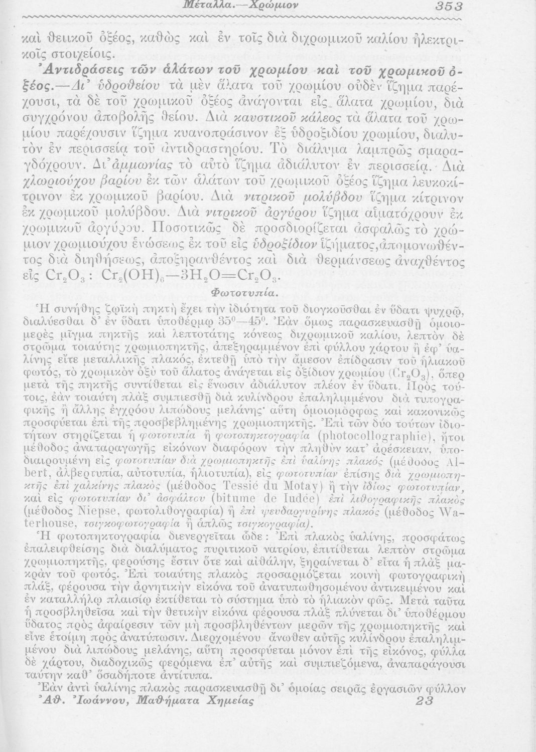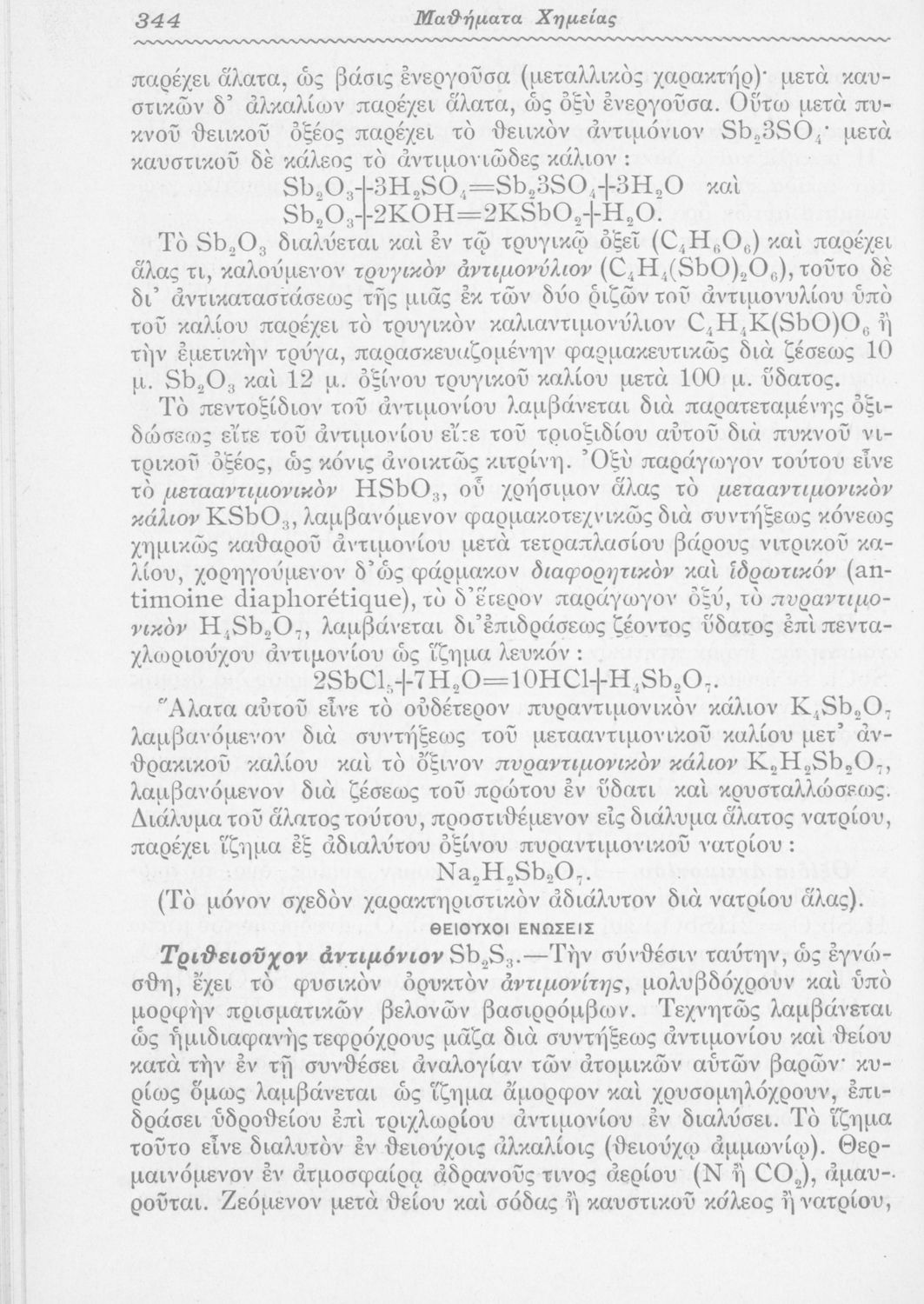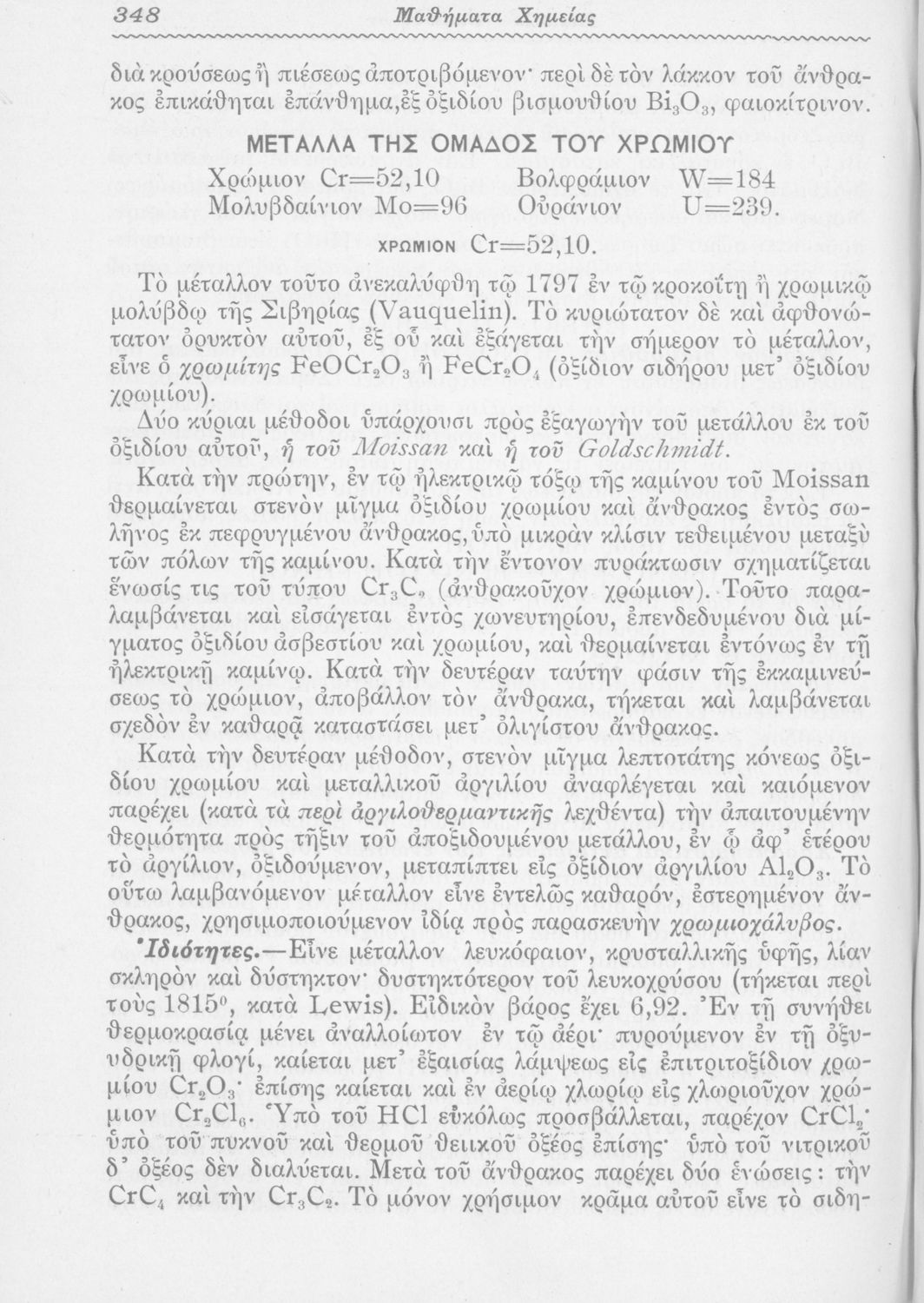 Μάθημα: Χημεία Γλώσσα: Καθαρεύουσα Παρουσίαση περιεχομένου: Παιδαγωγικό / Μαθητικό βοήθημα Χημείας που περιλαμβάνει στοιχεία Ανόργανης (μεταλλοειδή, μέταλλα) και Οργανικής Χημεία (ενώσεις άνθρακα, υδατάνθρακες κλπ.) |
